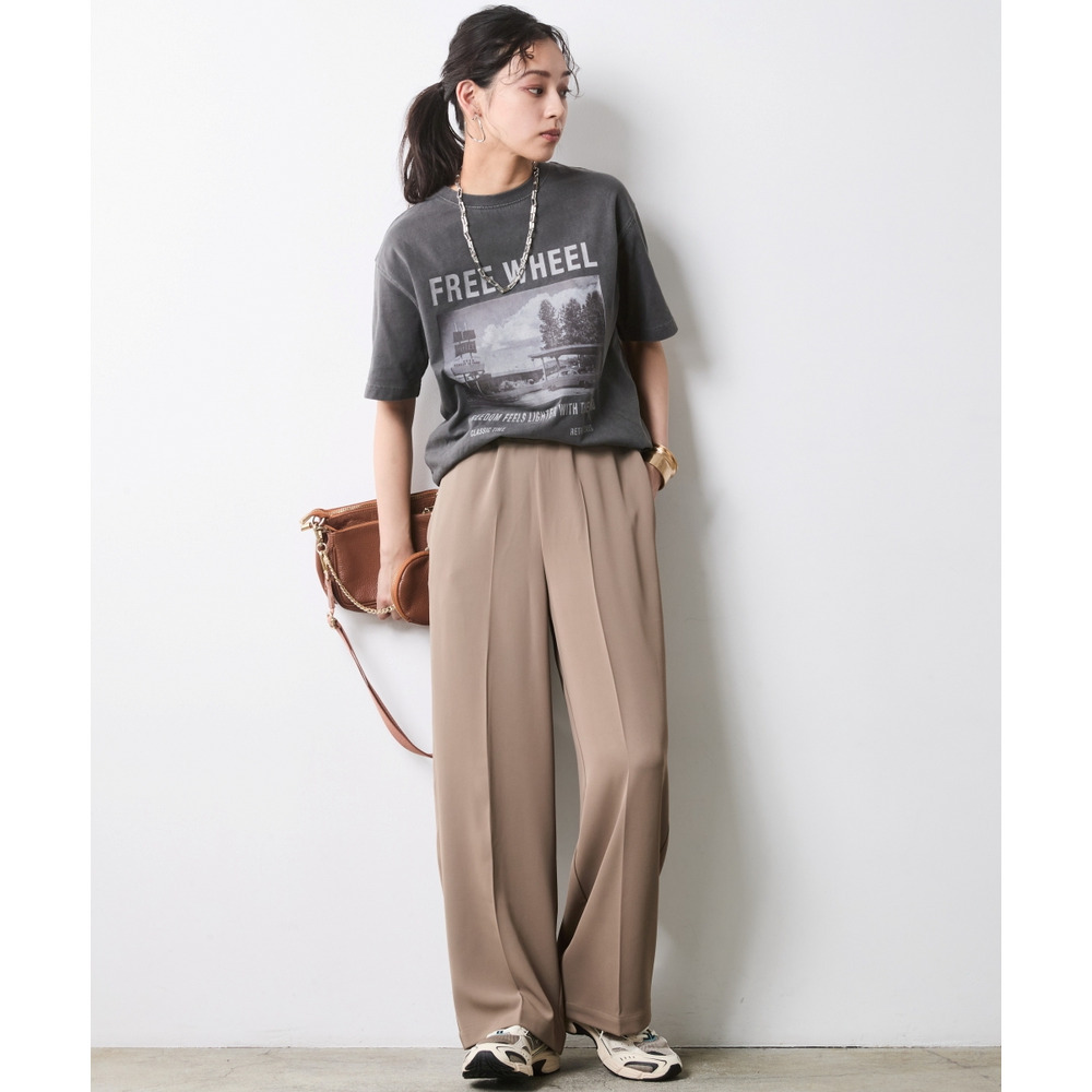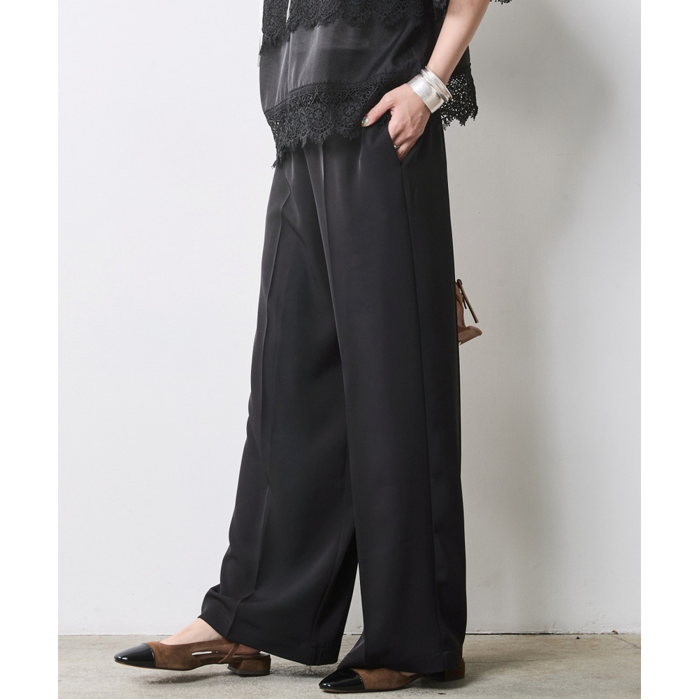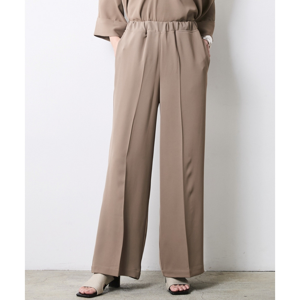 脚のラインを完全にカバーしながら、都会的で知的なシルエットを描き出す、大人のリラックスモードを象徴する一着。