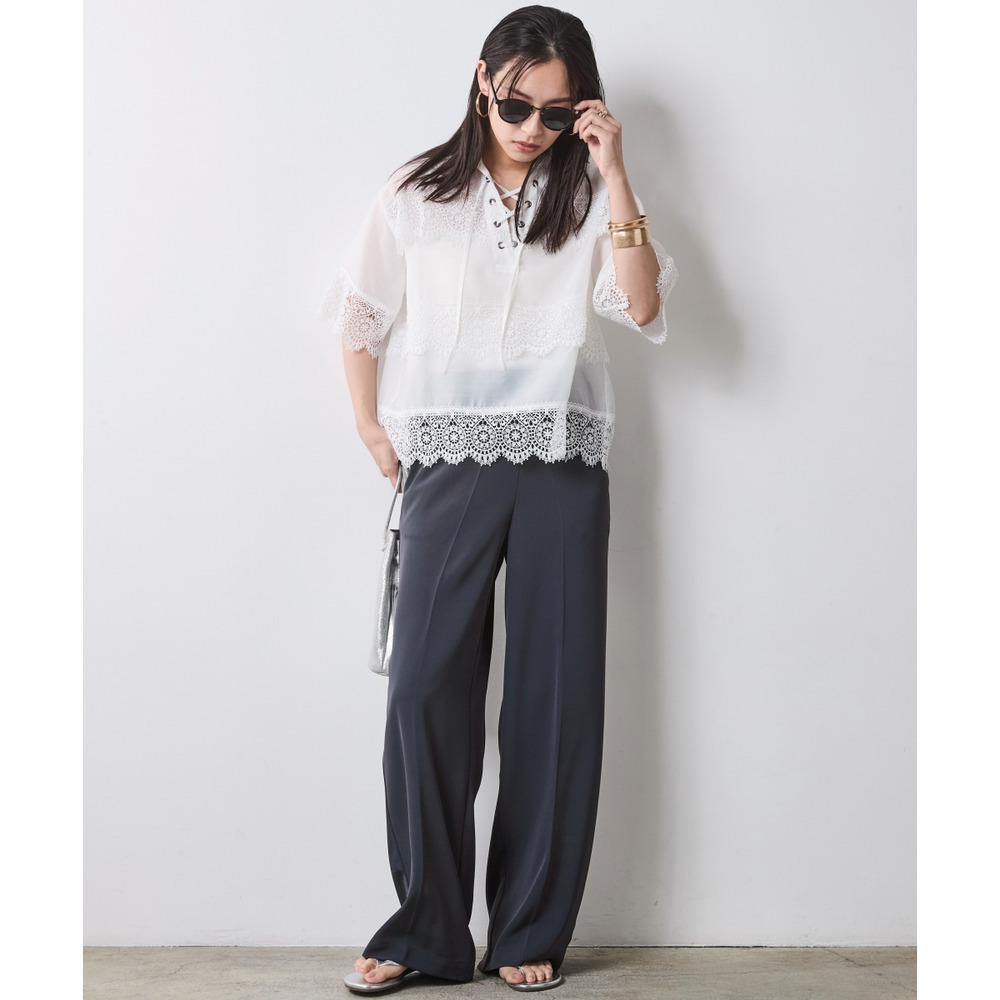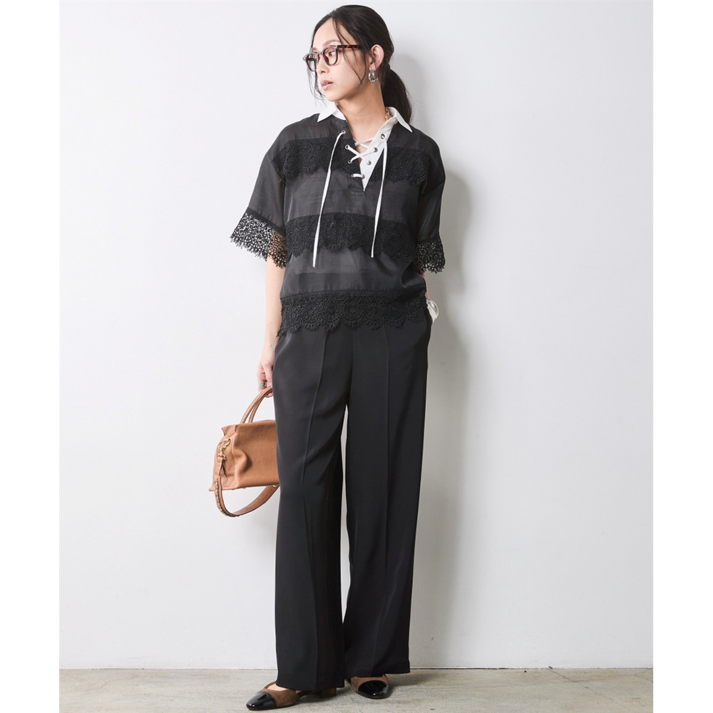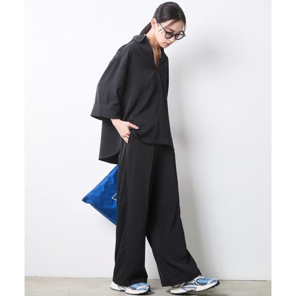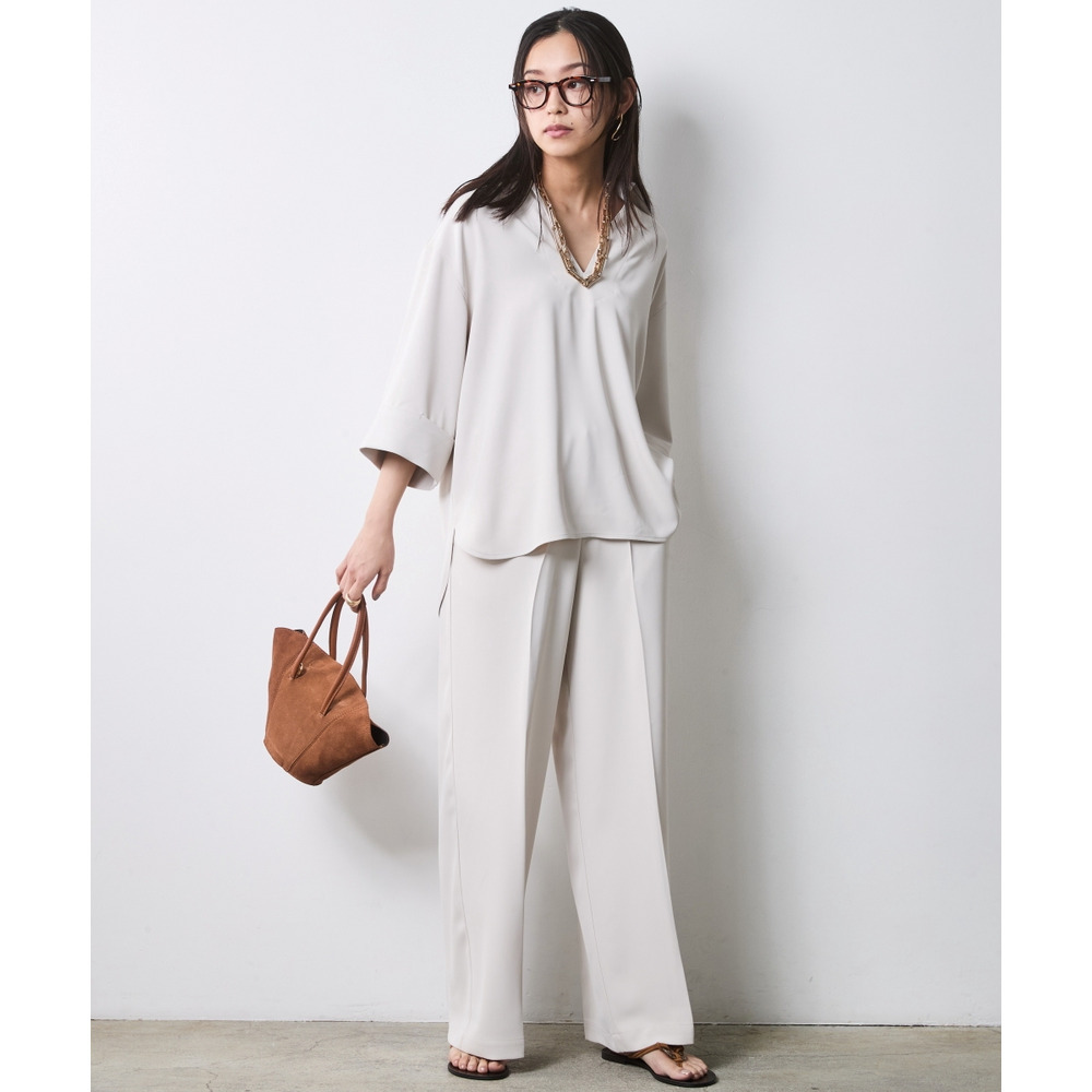 Sophisticated Set-up:別売り同素材のスキッパーブラウスを合わせた、知的なセットアップ。