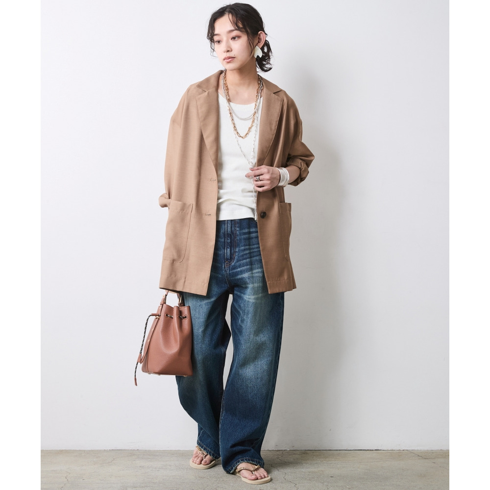ラフな着こなしにジャケットの「襟」が加わることで、だらしなく見えない、計算された大人カジュアルに昇華されます。