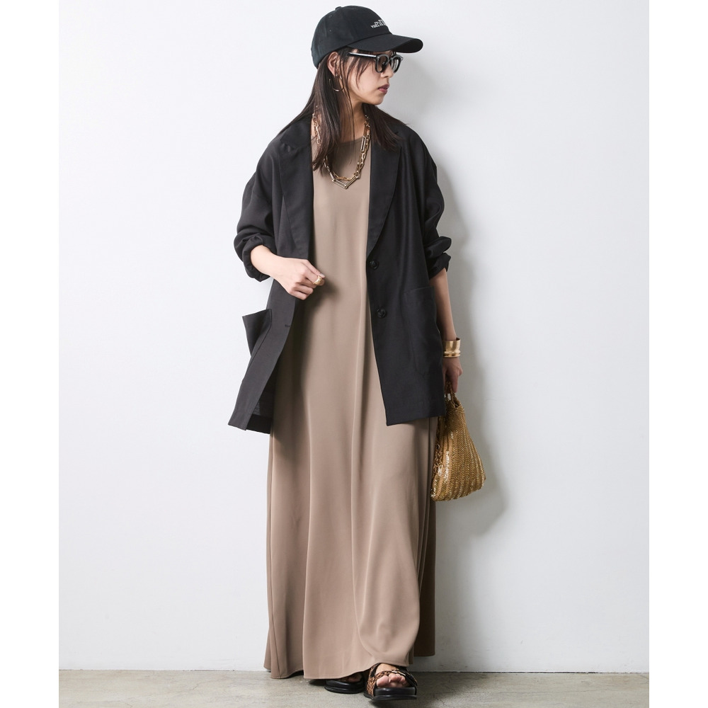 同系色でまとめることで、シアー素材の透け感が際立ち、洗練された大人のワントーンコーデが完成します。