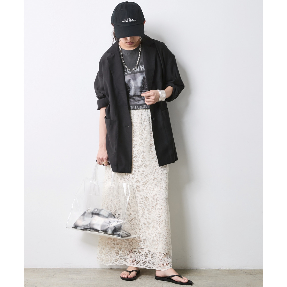 ベストの無骨な質感がレースの繊細さを引き立て、都会的なムード漂う最旬のコーディネートに仕上がります。