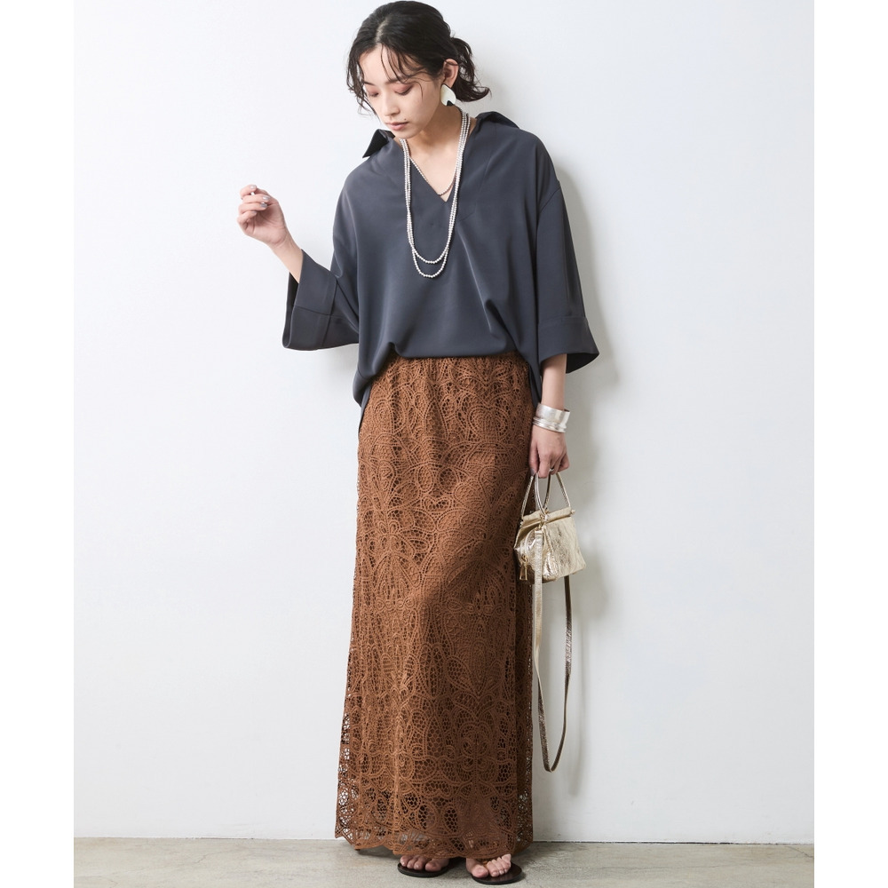 • レースストレートロングスカート 大きいサイズ シックスタイル23
