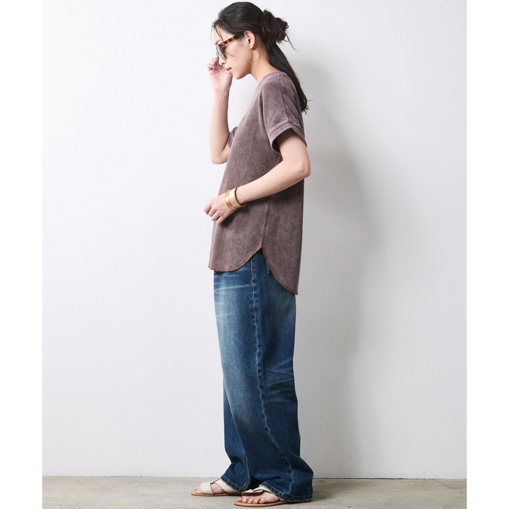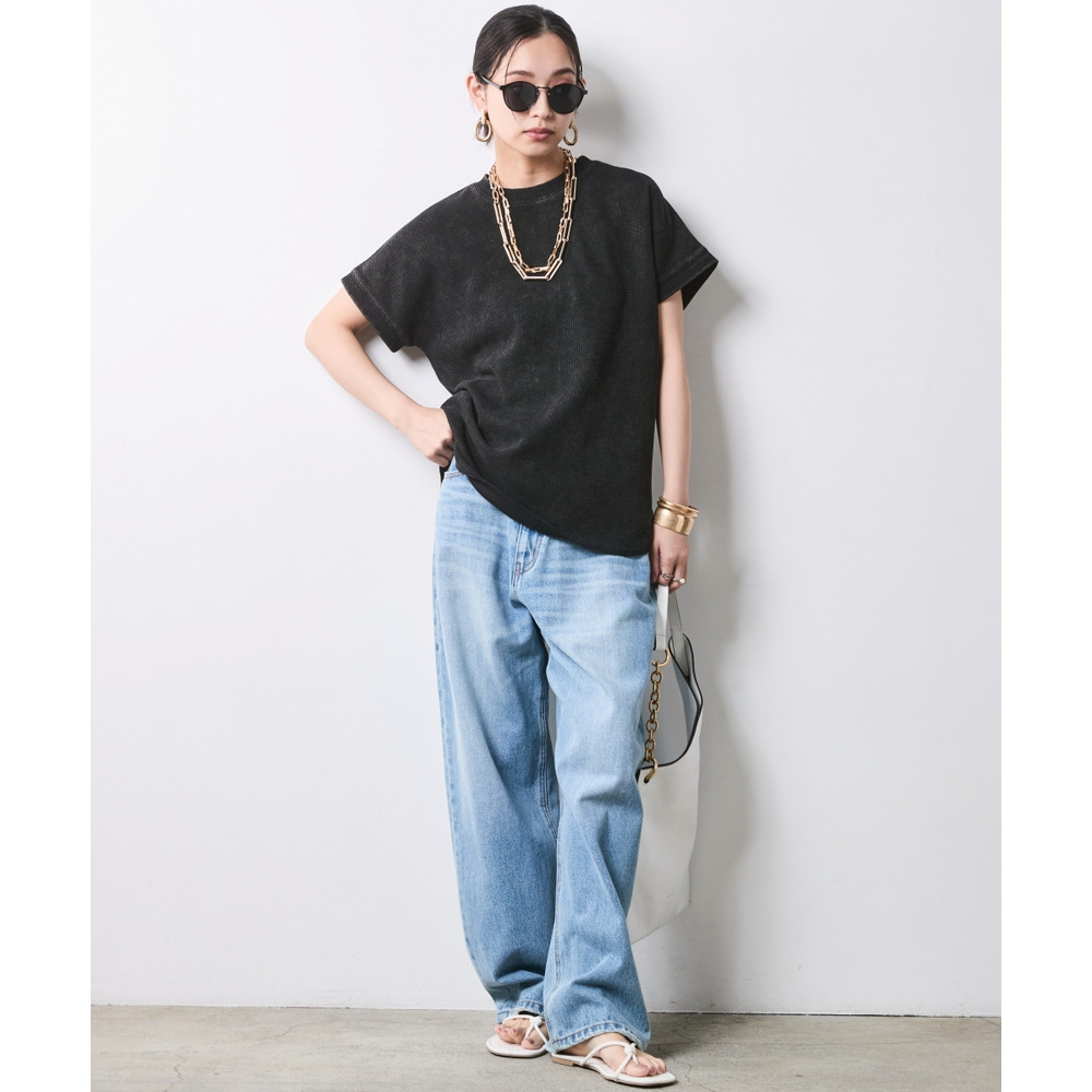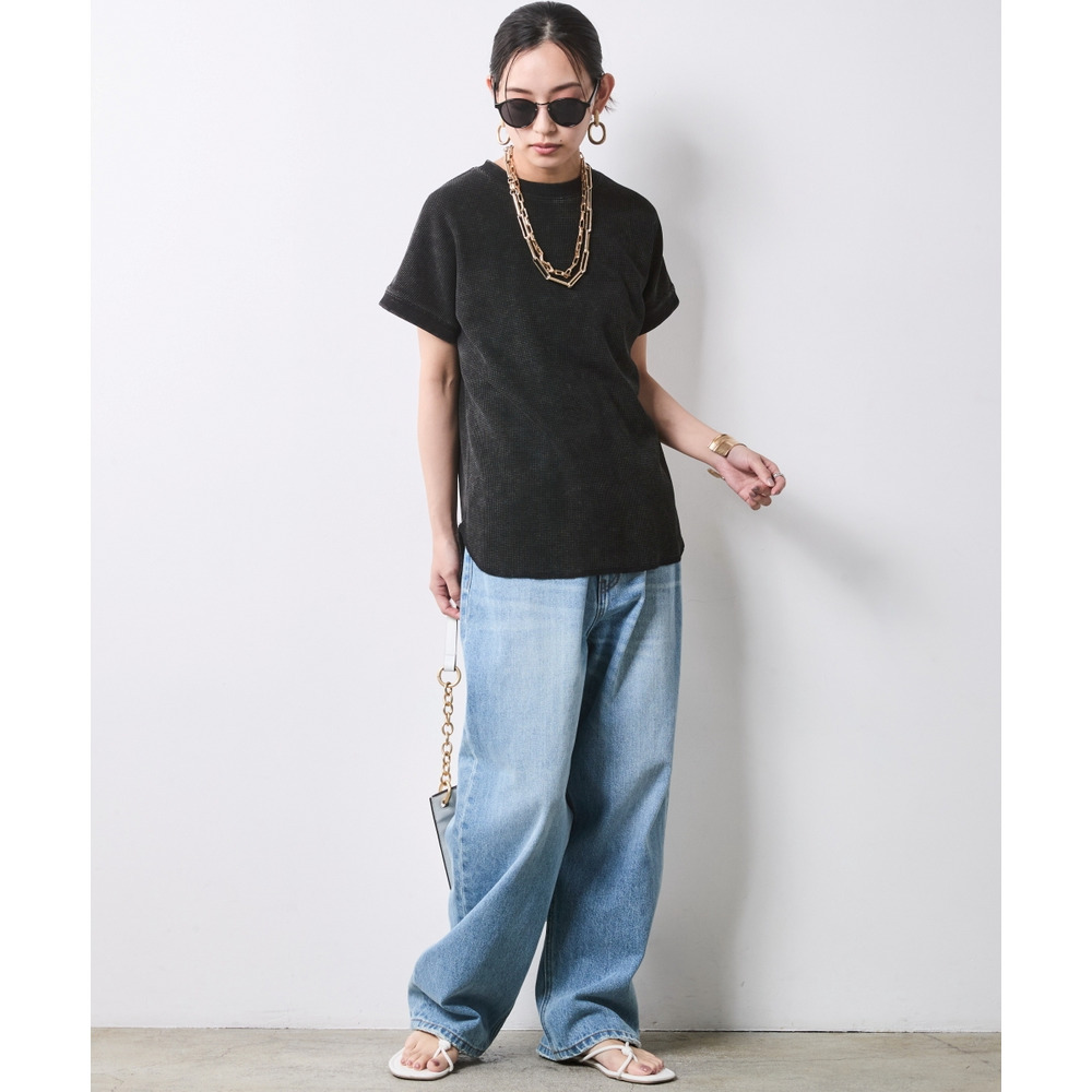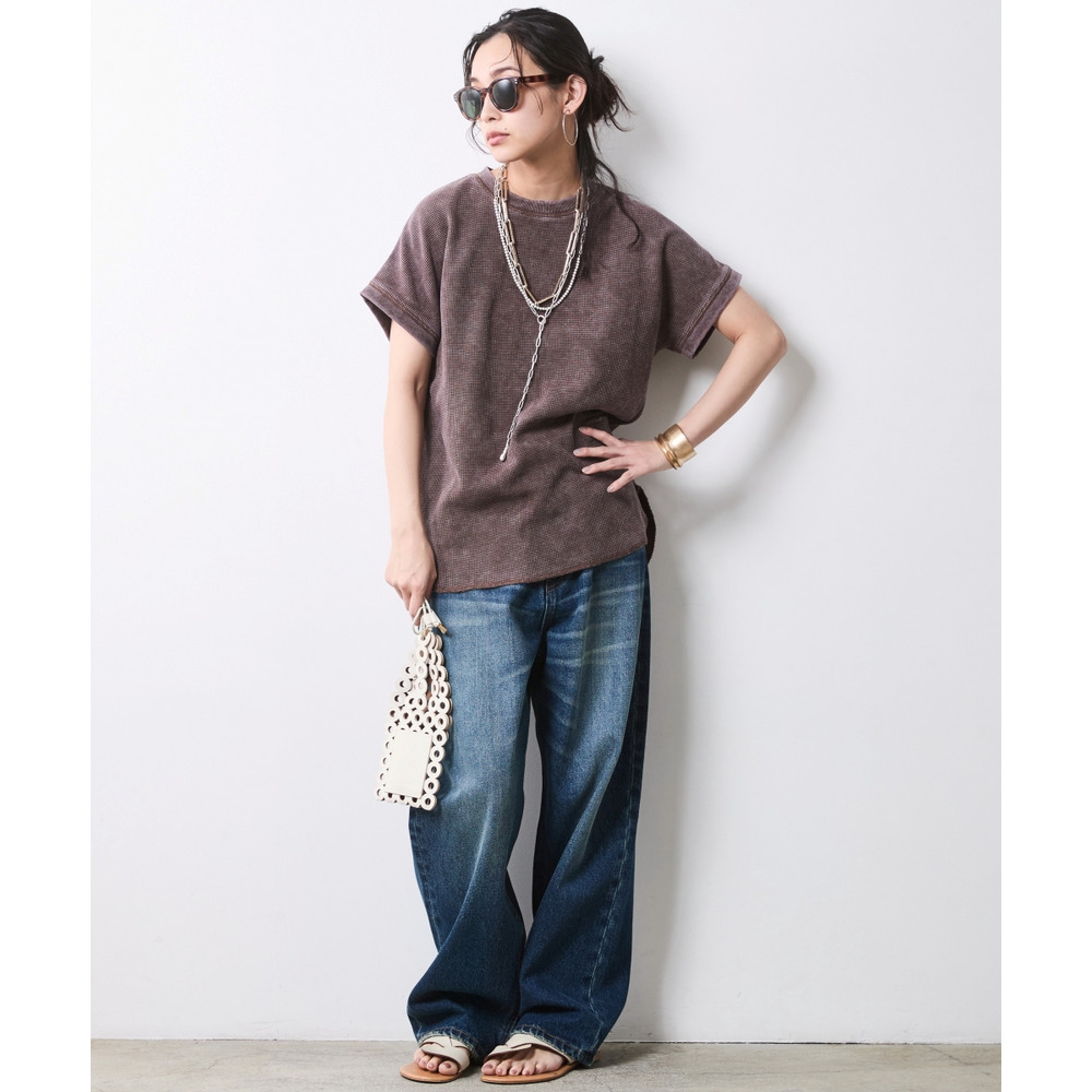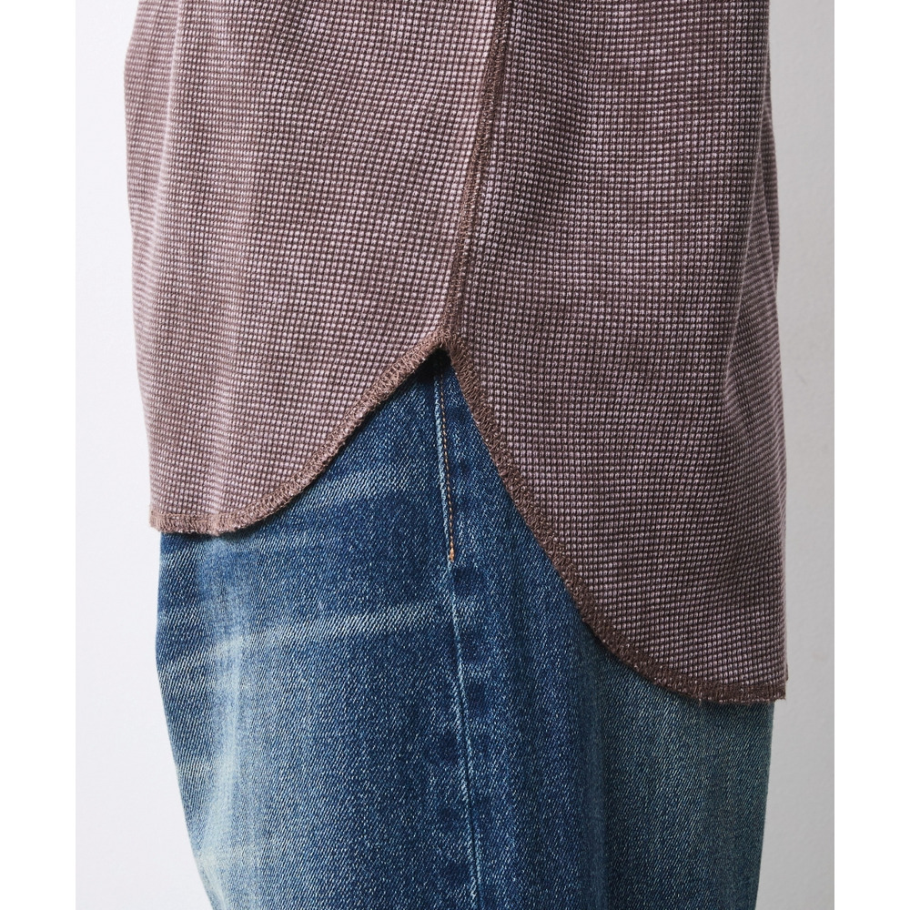 シアーな素材感やデニムのラフさと、サーマルの表面感が合わさることで、コーディネートに奥行きが生まれます。