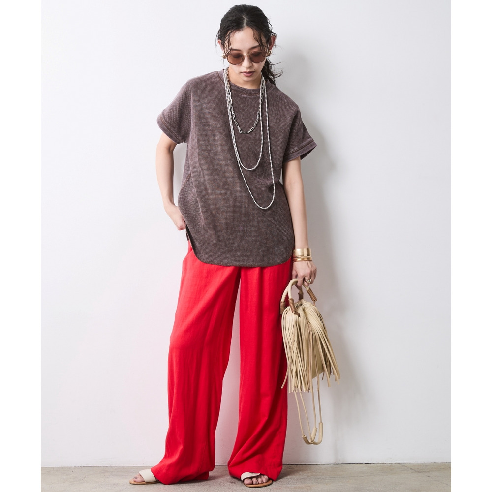 | 素材 | 品質:綿65%・ポリエステル35% ※製品洗いの為、色の出方・仕上がりサイズが多少異なる場合があります。 透け感:なし 伸縮性:ややあり 生地の厚み:普通 光沢感:なし 季節:夏向き シルエット:ゆったり |