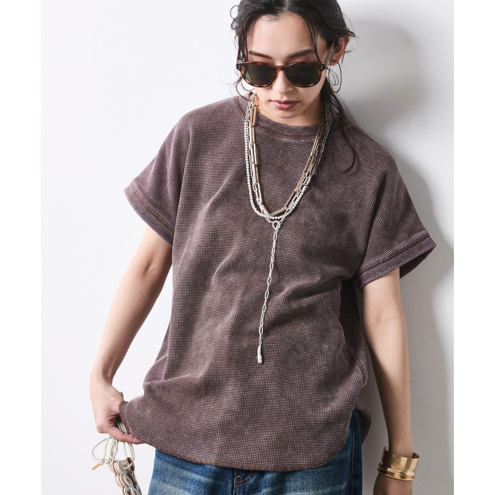 ヴィンテージ加工サーマルフレンチスリーブカットソー 大きいサイズ シックスタイル