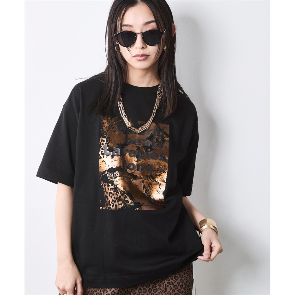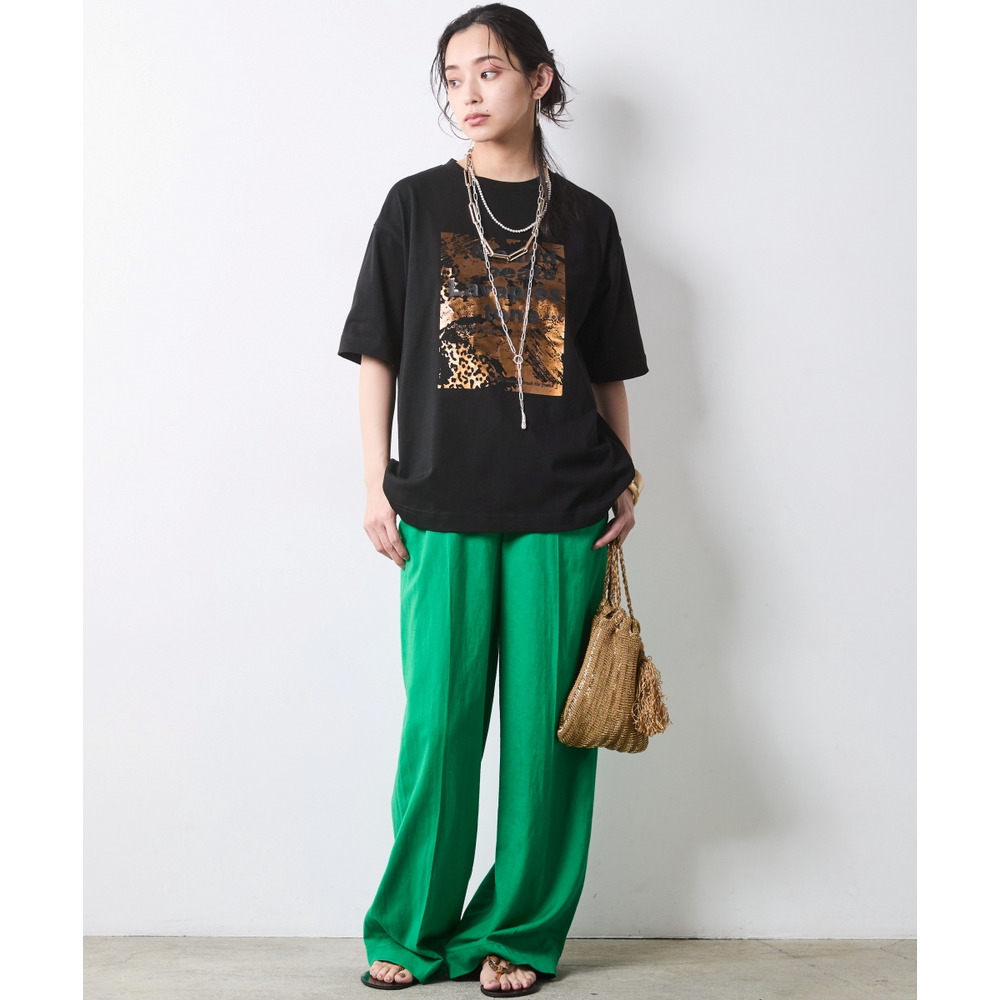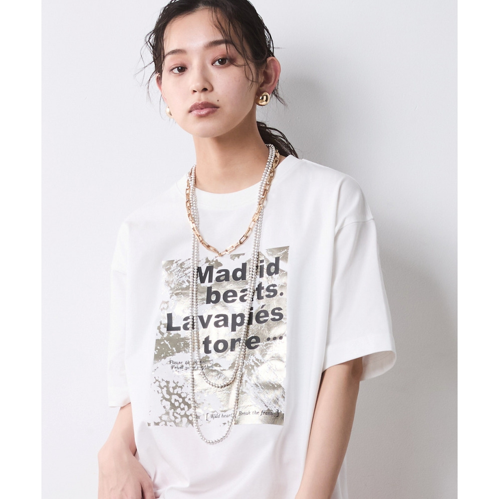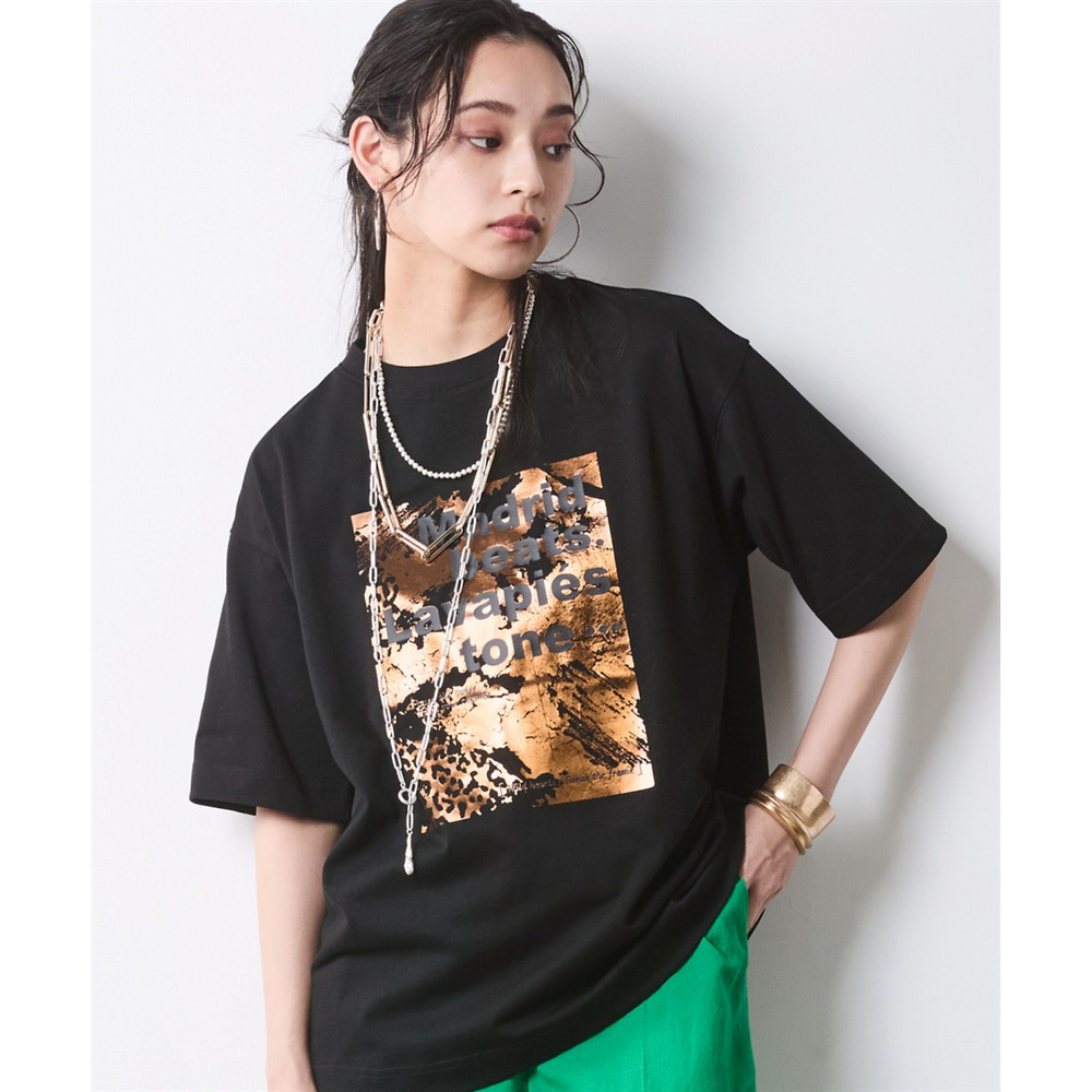 箔プリントのモダンな煌めきが、ラフな着こなしを瞬時に洗練されたストリート・シックへと昇華させます。