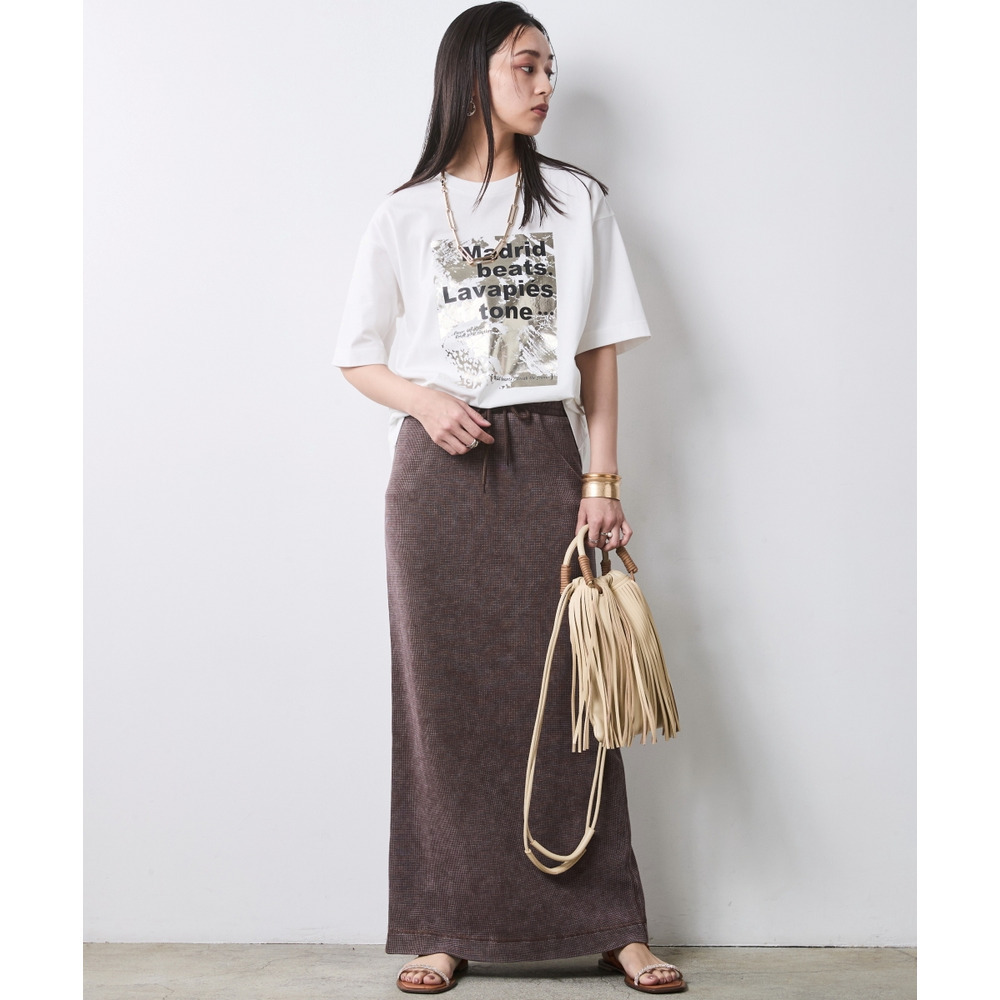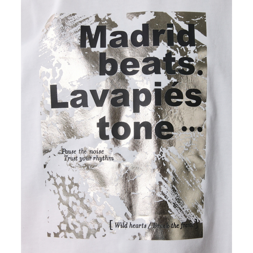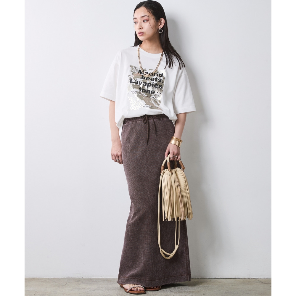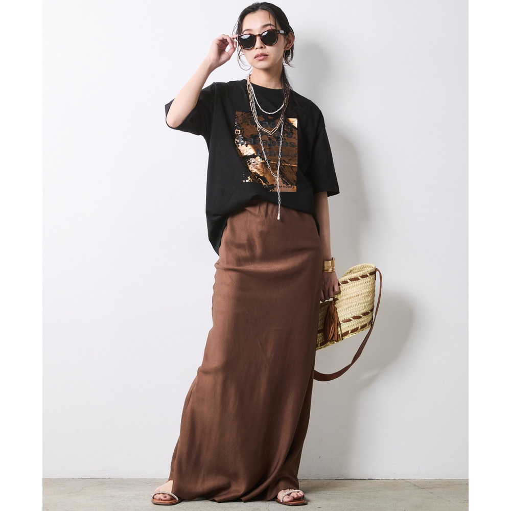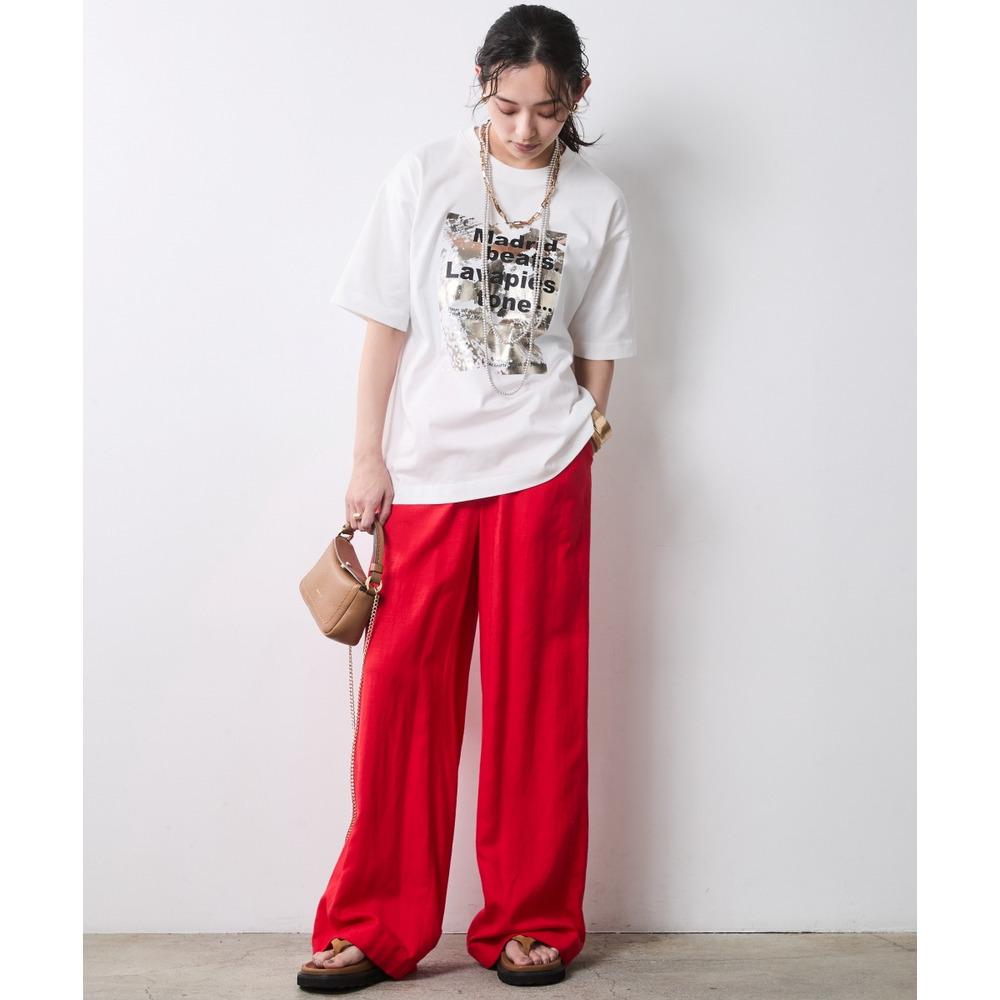 箔プリントのモダンな煌めきが、ラフな着こなしを瞬時に洗練されたストリート・シックへと昇華させます。