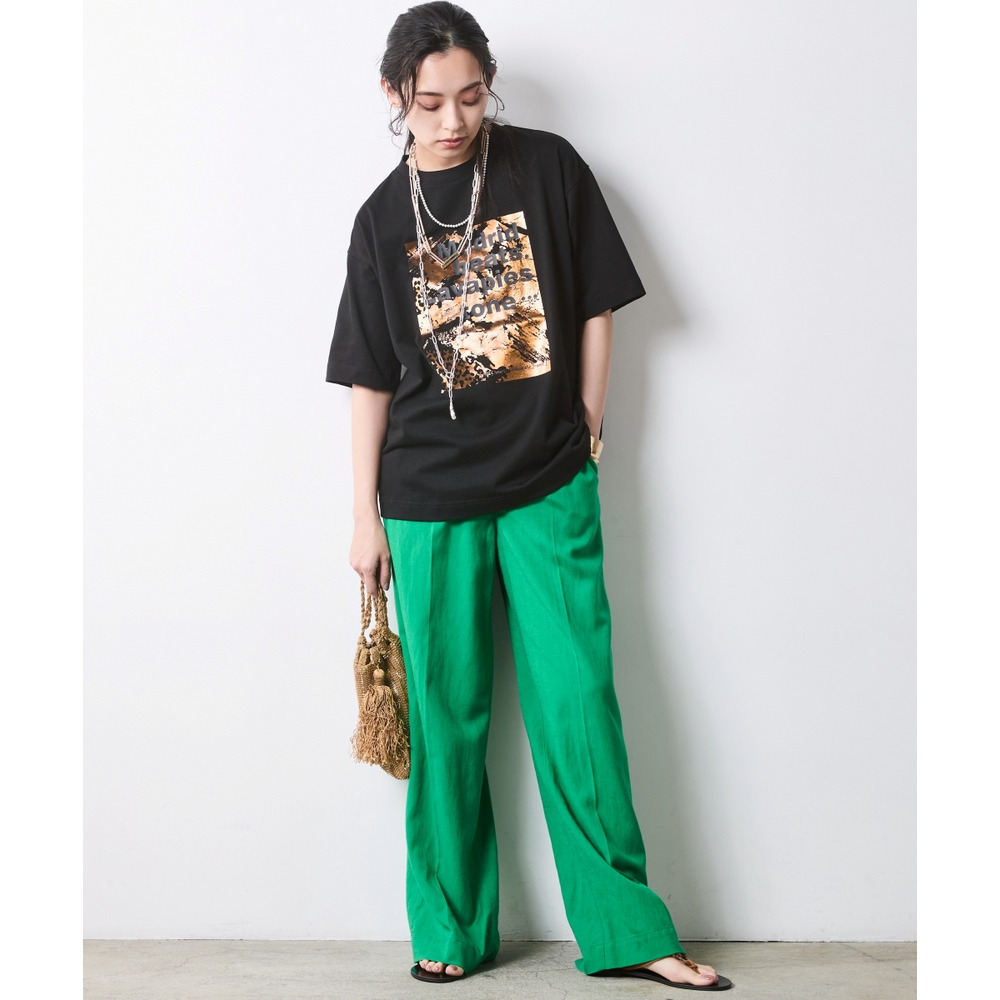 素材 品質:綿100%(リブ部除く) ※柄の出方が多少異なる場合があります。 透け感:なし 伸縮性:ややあり 生地の厚み:普通 光沢感:あり(プリント部) 季節:夏向き シルエット:ゆったり