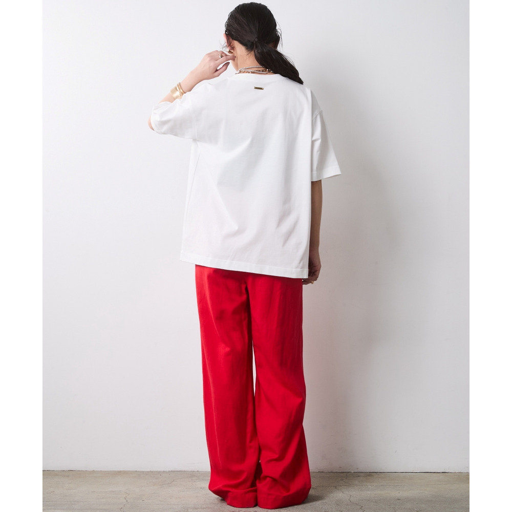 肩を落としたドロップショルダーと、程よく、ゆとりのある身幅が「今」っぽい抜け感を作ります。