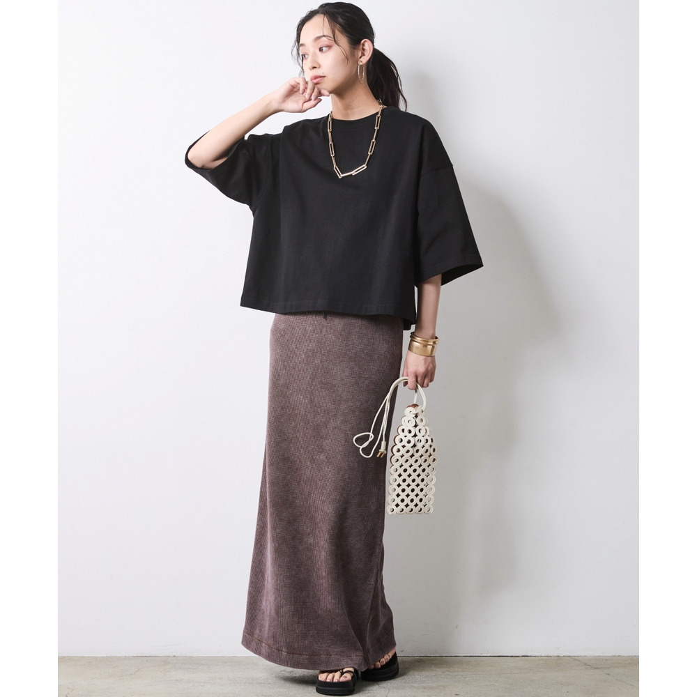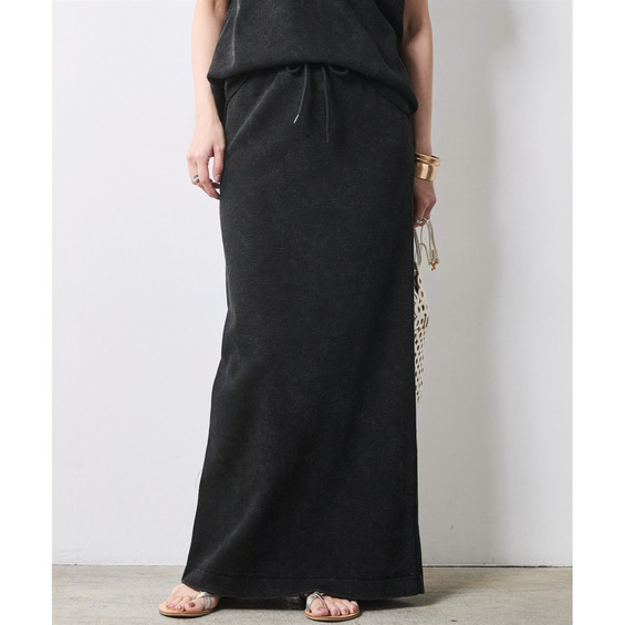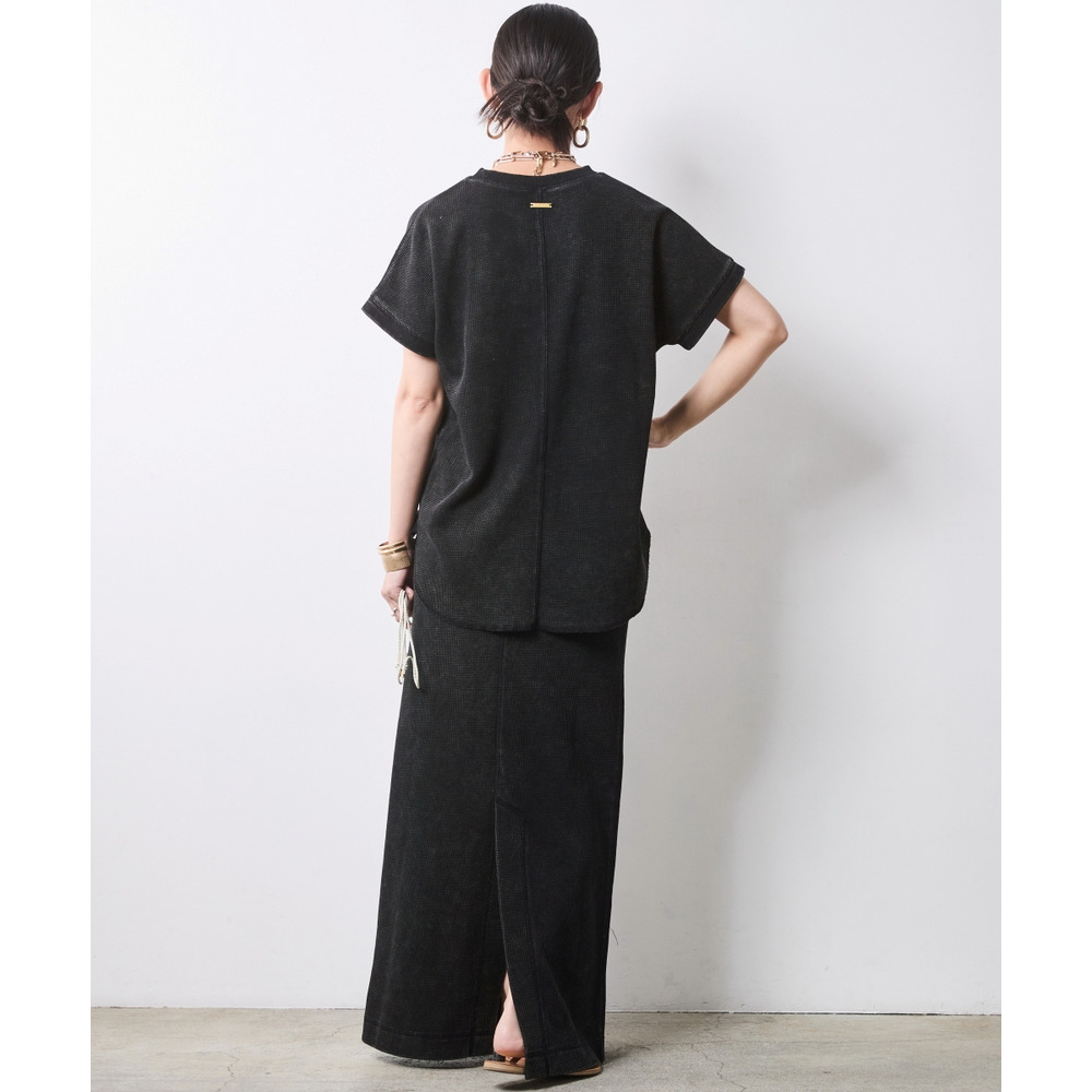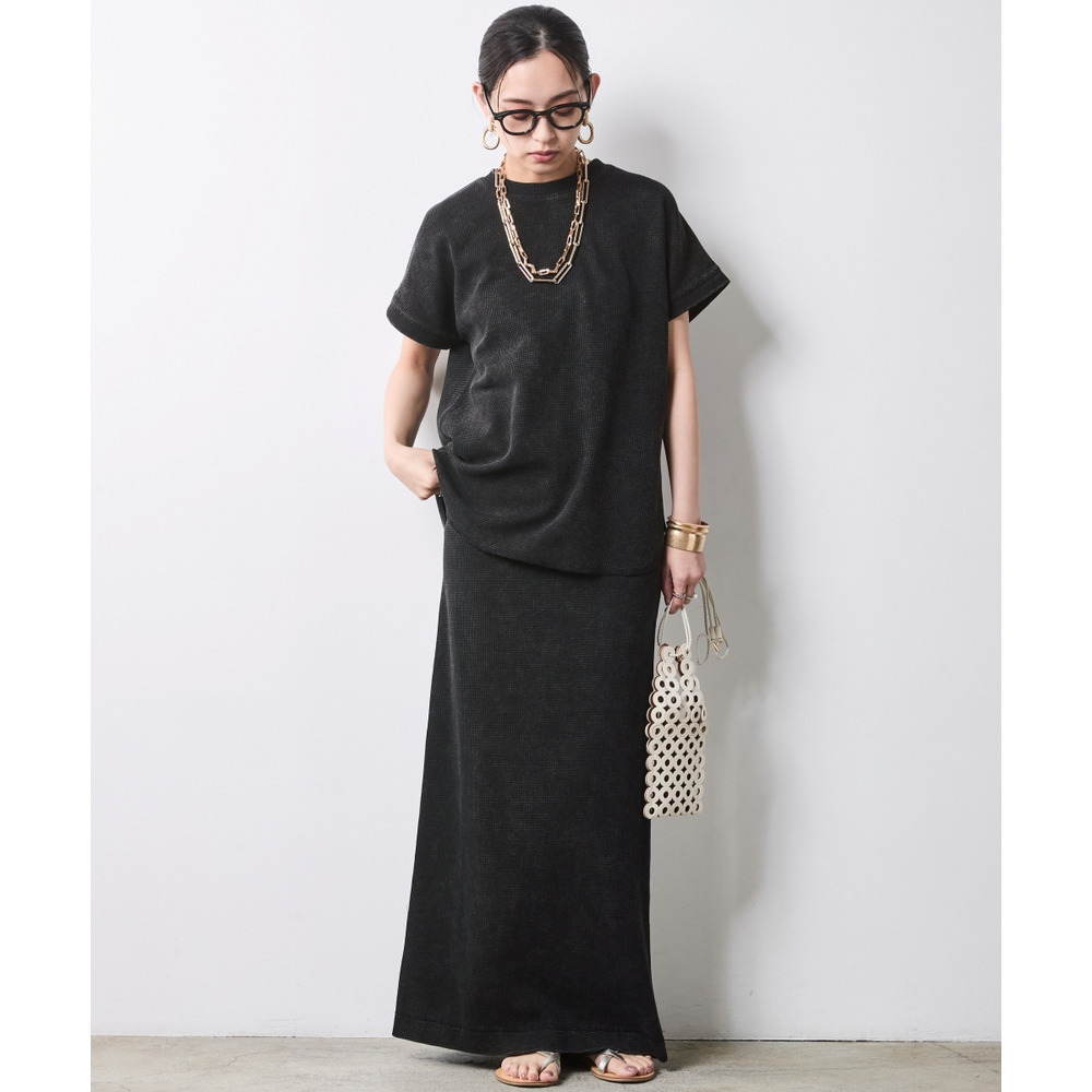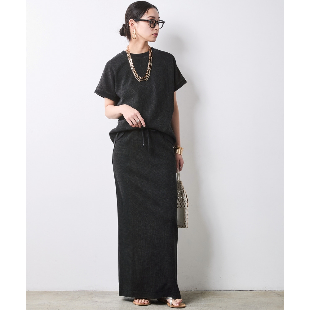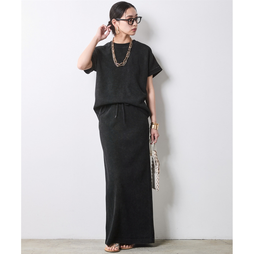 Urban Waffle Set-up:ブラックのスカートに別売り同素材のトップスを合わせた、潔いワントーンスタイル。