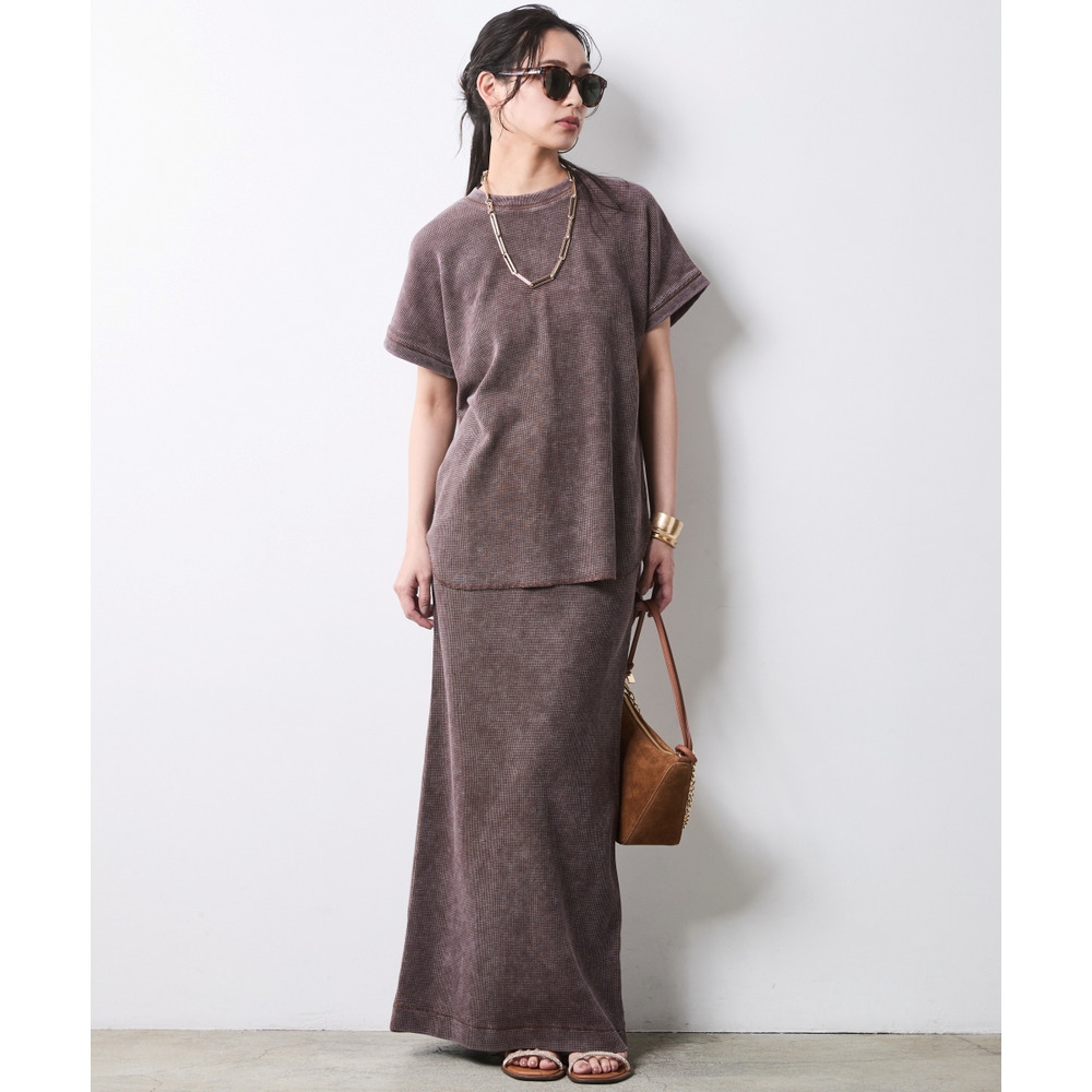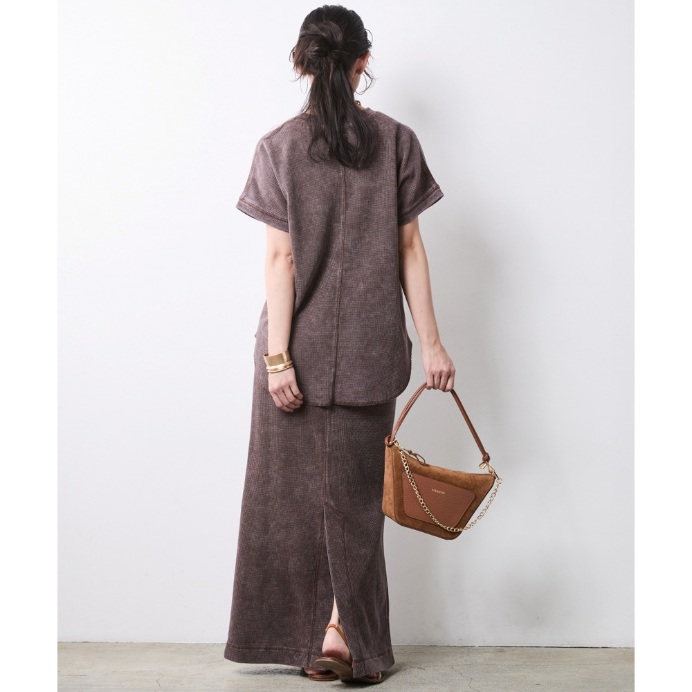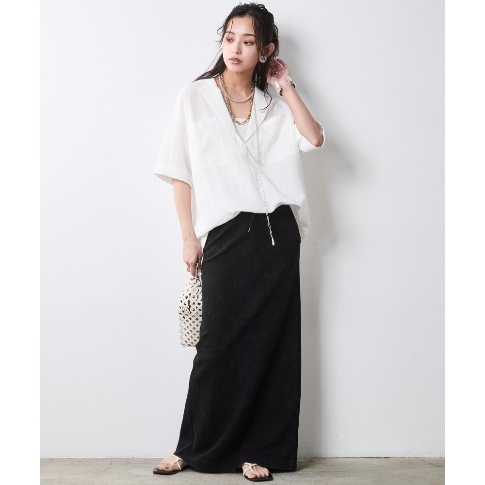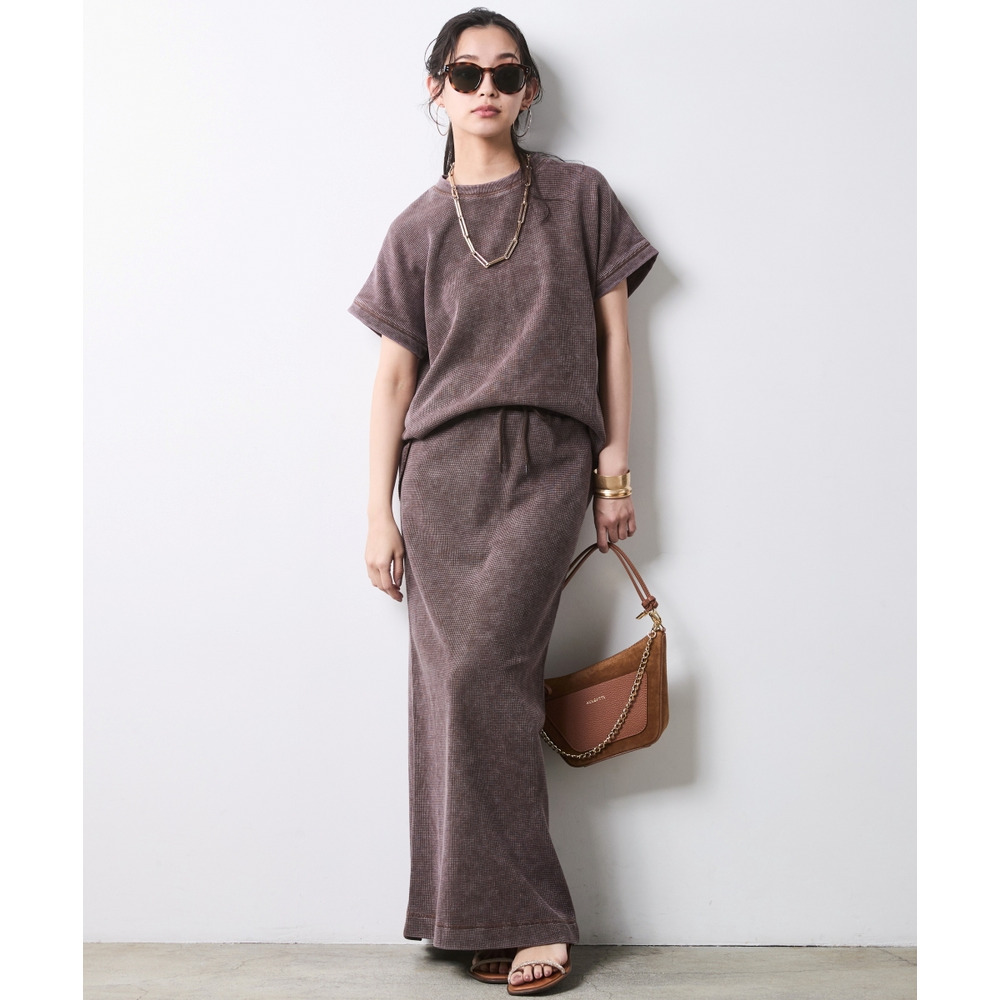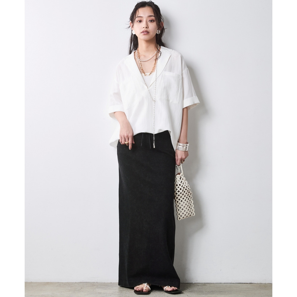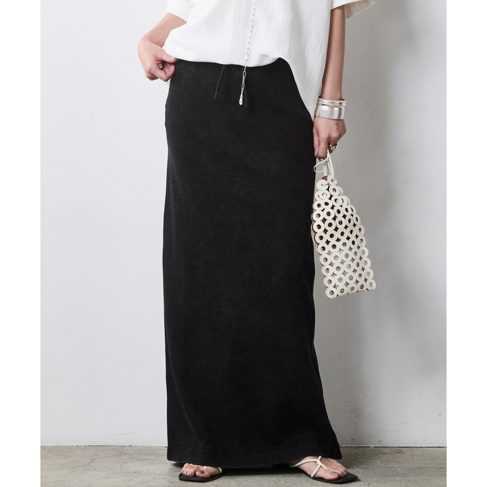 Urban Waffle Set-up:ブラックのスカートに別売り同素材のトップスを合わせた、潔いワントーンスタイル。