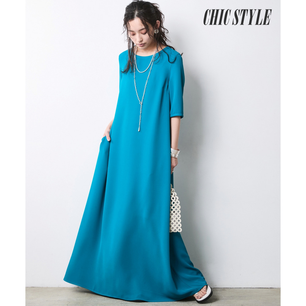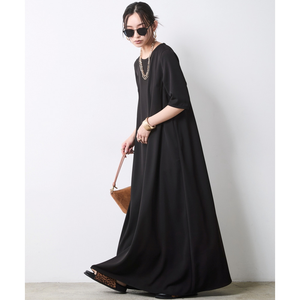 Aライン5分袖マキシワンピース 大きいサイズ シックスタイル