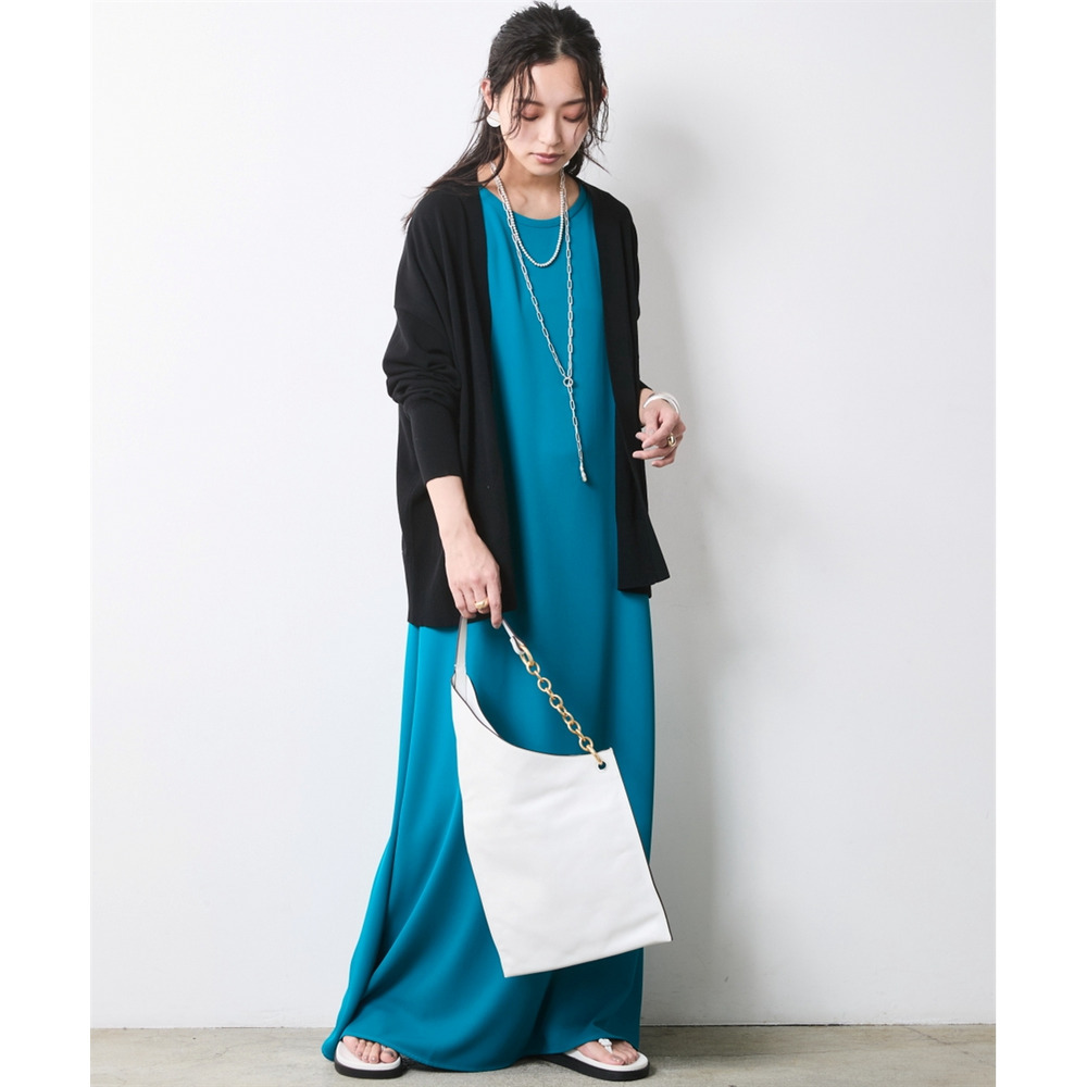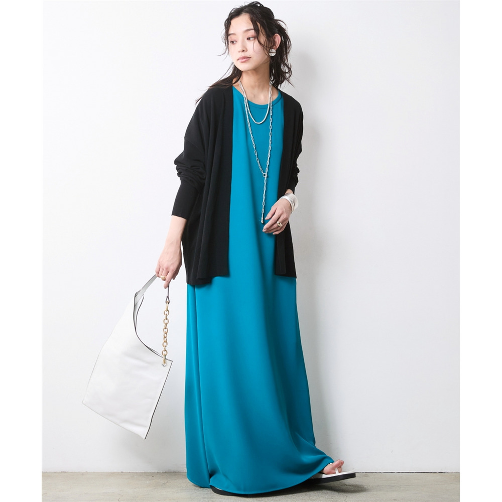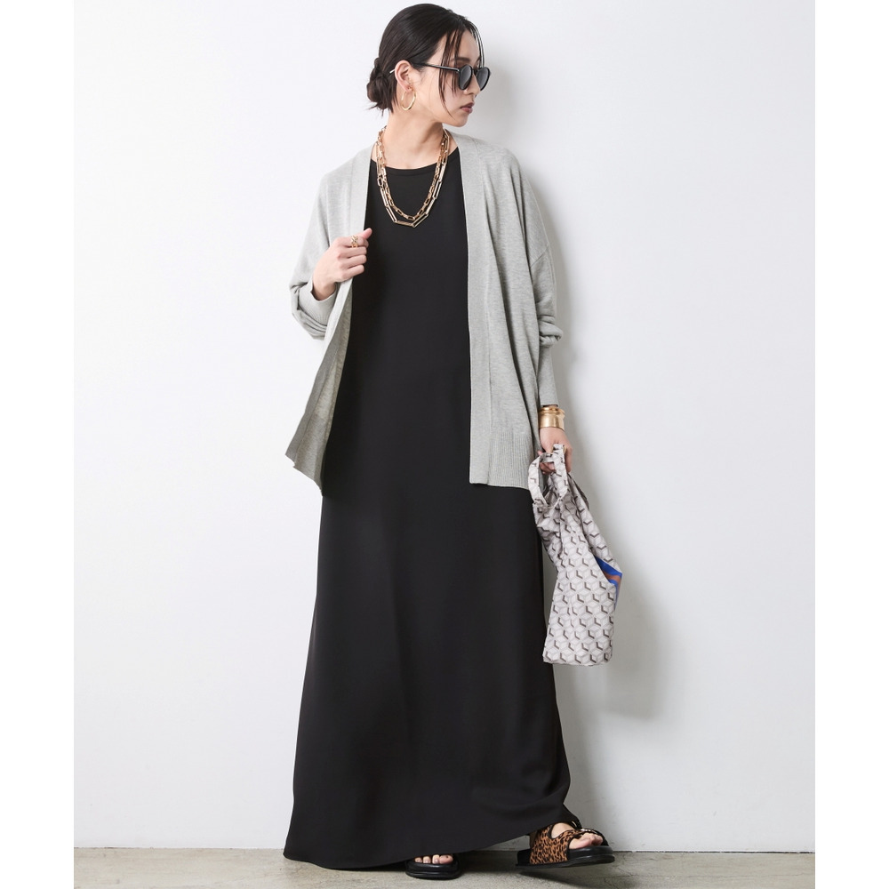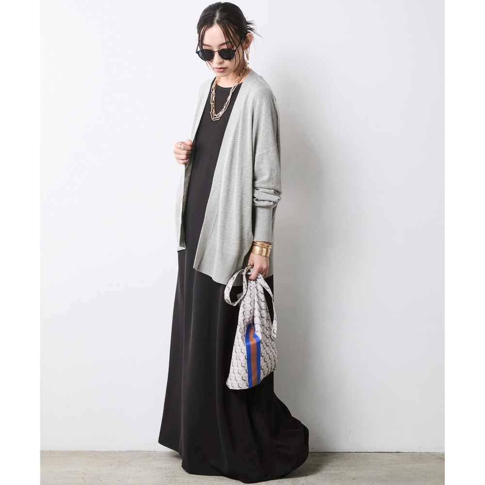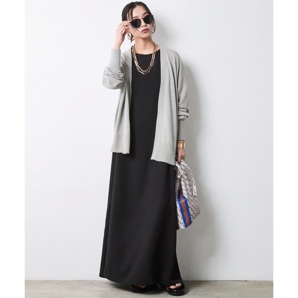 Urban Cardigan Layering:ワンピースに薄手のカーディガンをさらりと羽織る、大人のリラックススタイル。