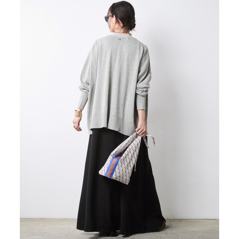 肘まで届く絶妙な袖丈が、二の腕をカバーしつつ、手首の細さを強調。
