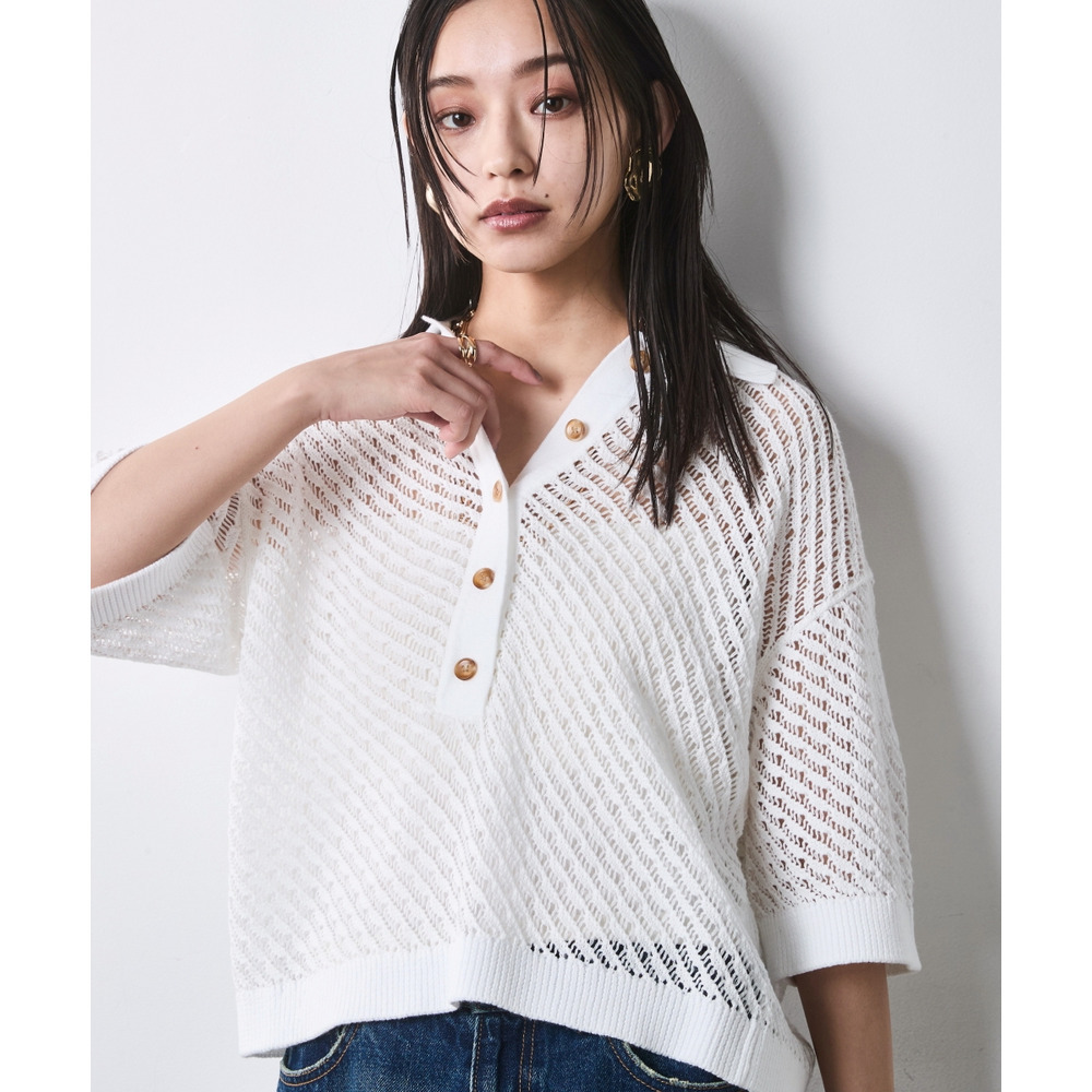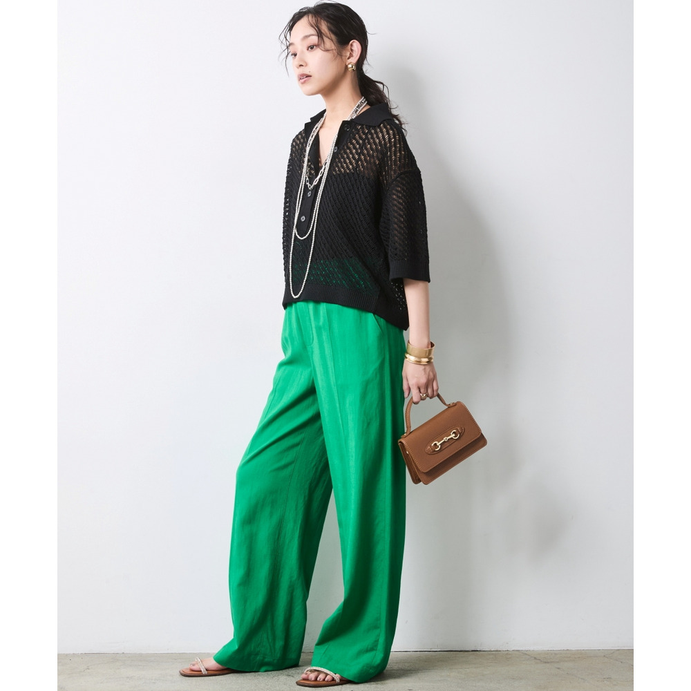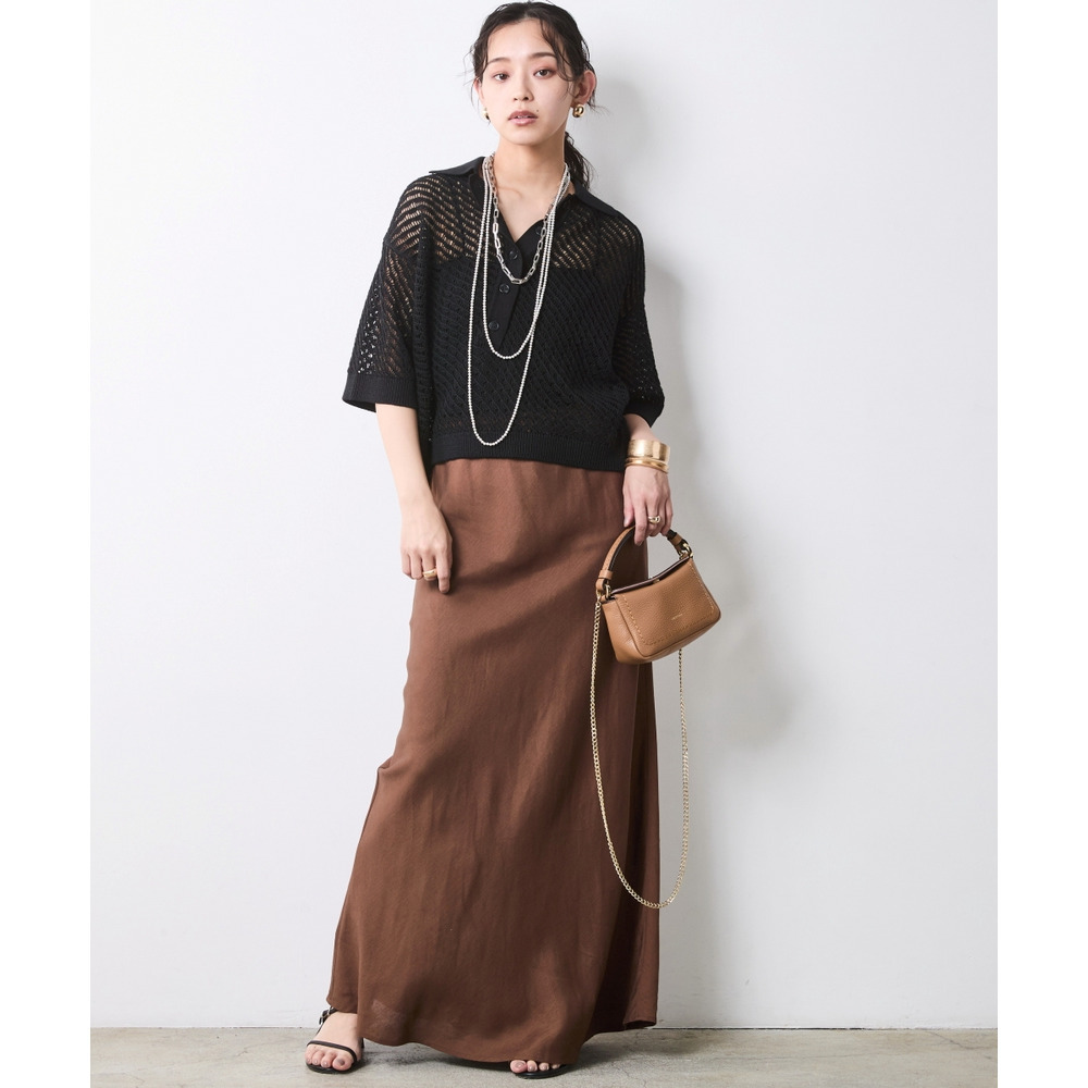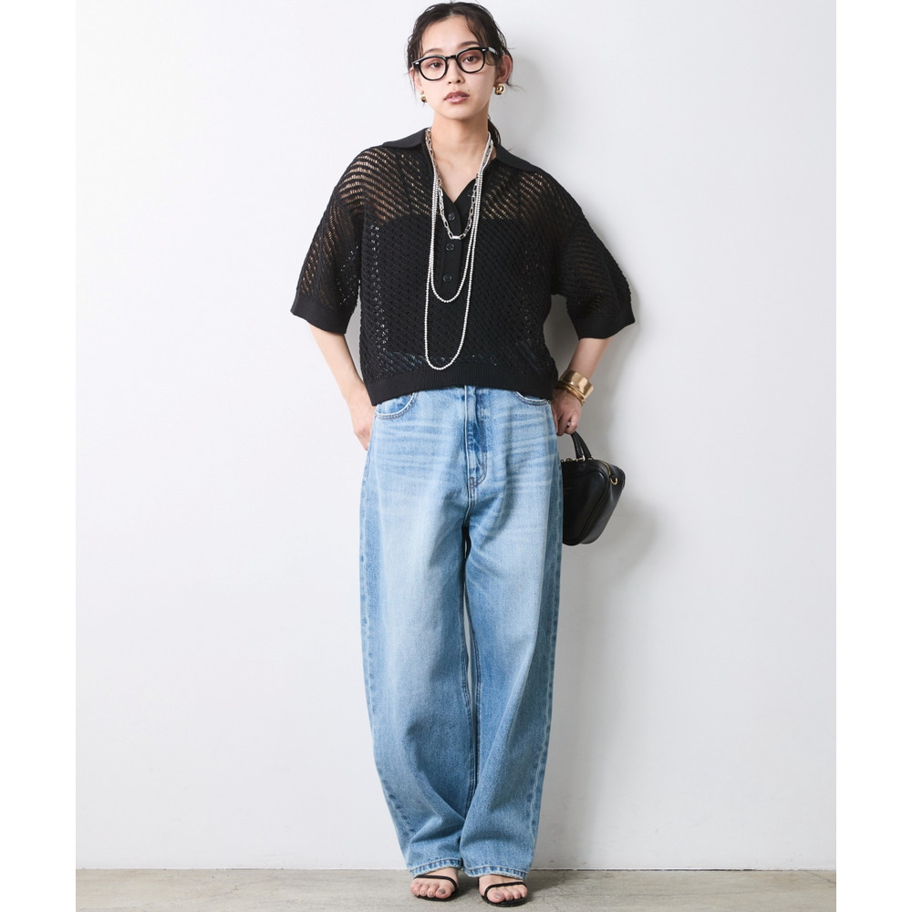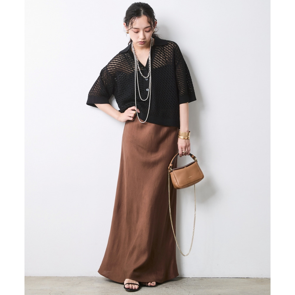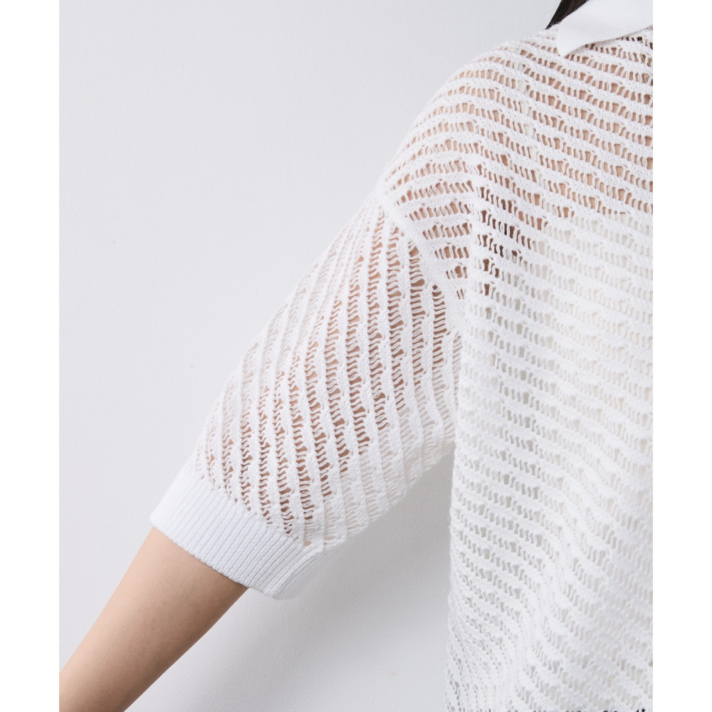 肌がほのかに透けることで、ニット特有の重さを感じさせず、涼やかでモードな印象を与えます。