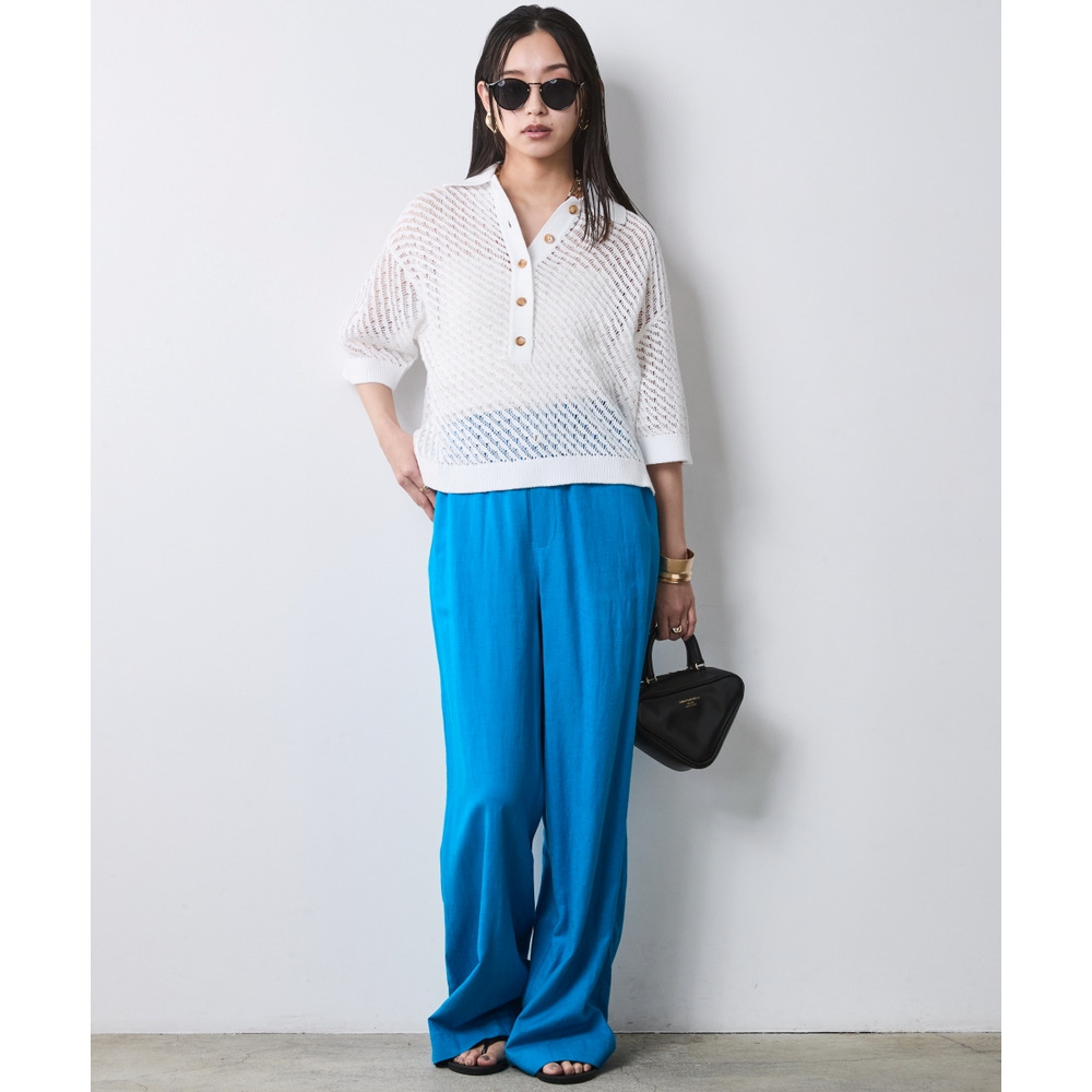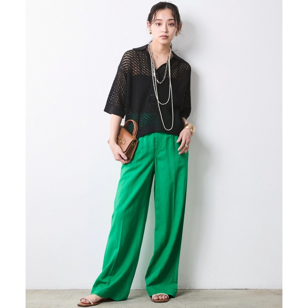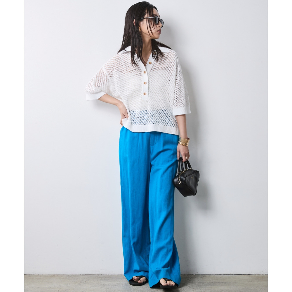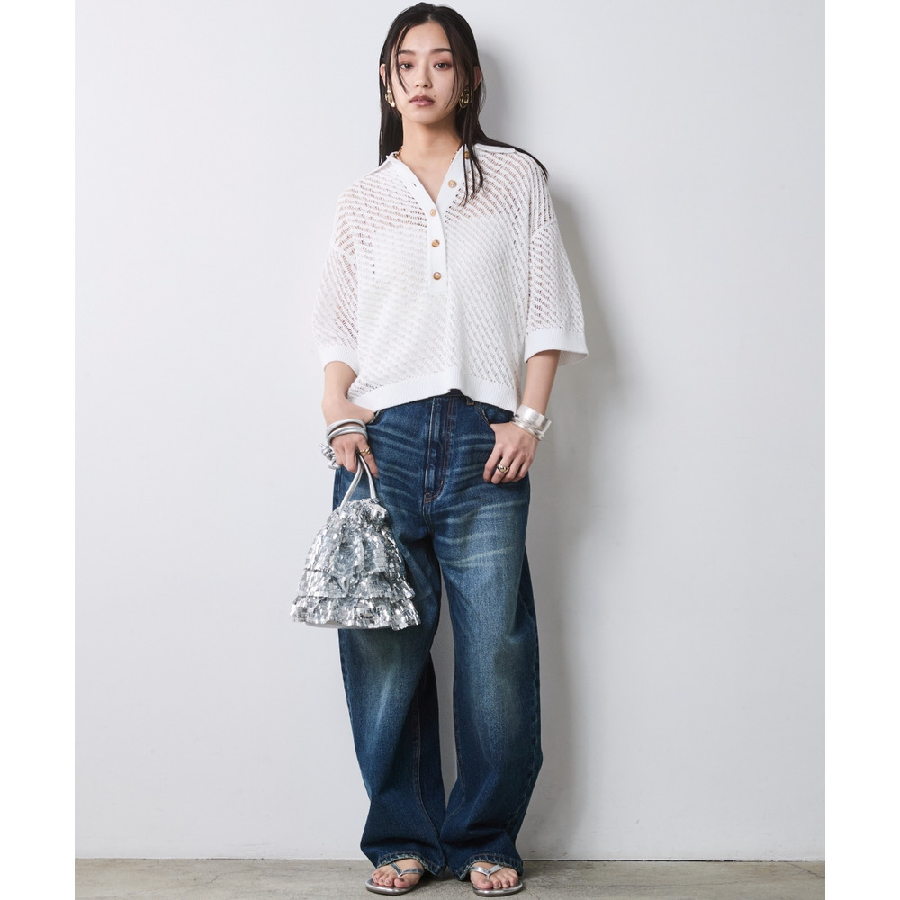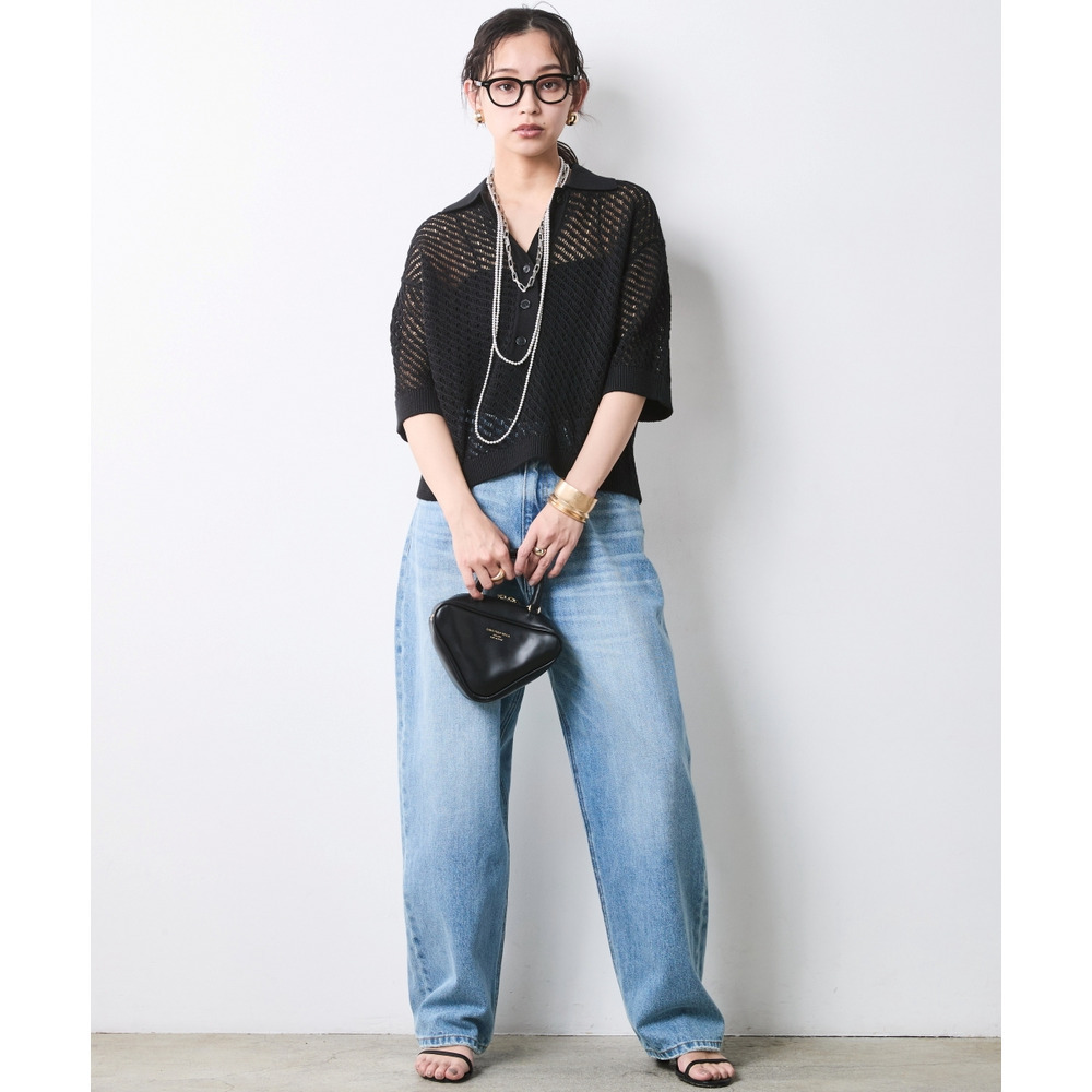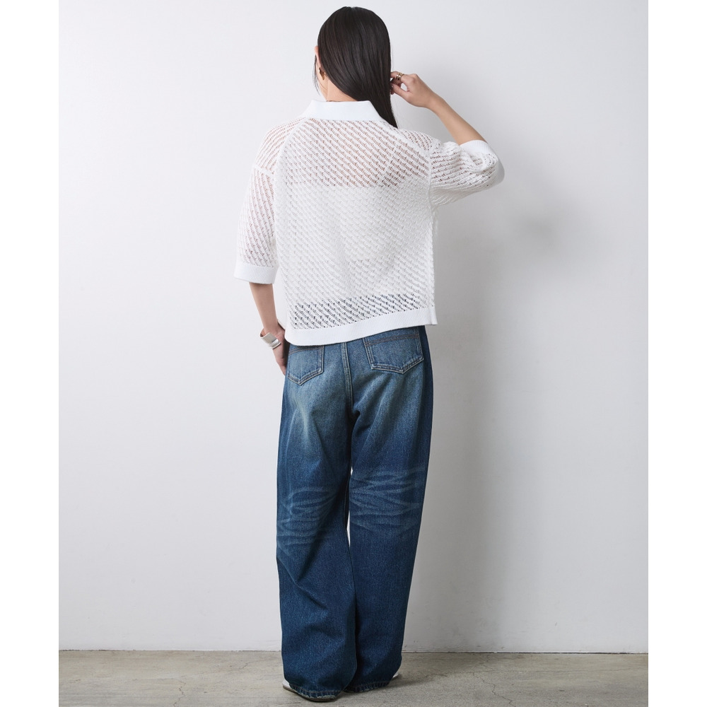 肌がほのかに透けることで、ニット特有の重さを感じさせず、涼やかでモードな印象を与えます。