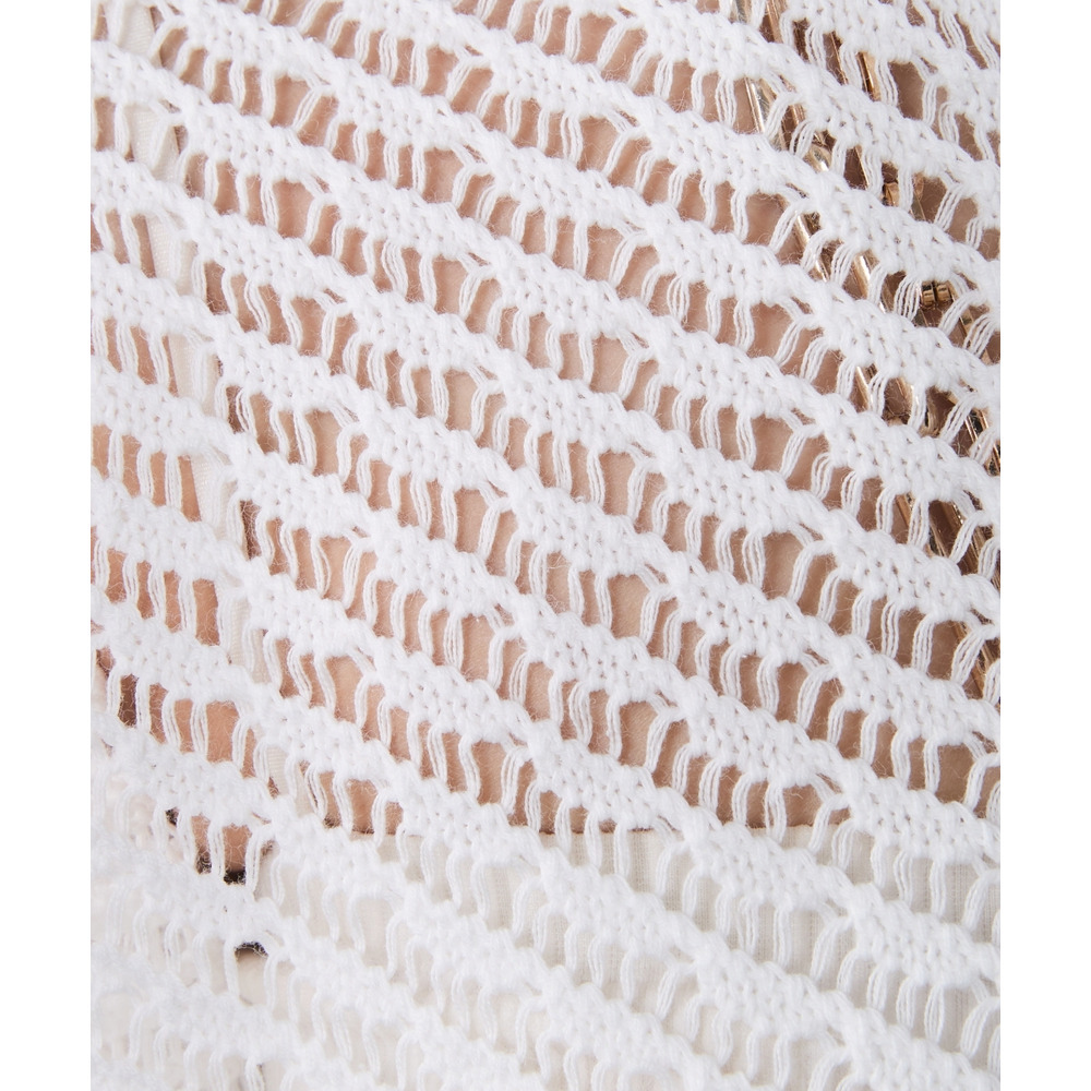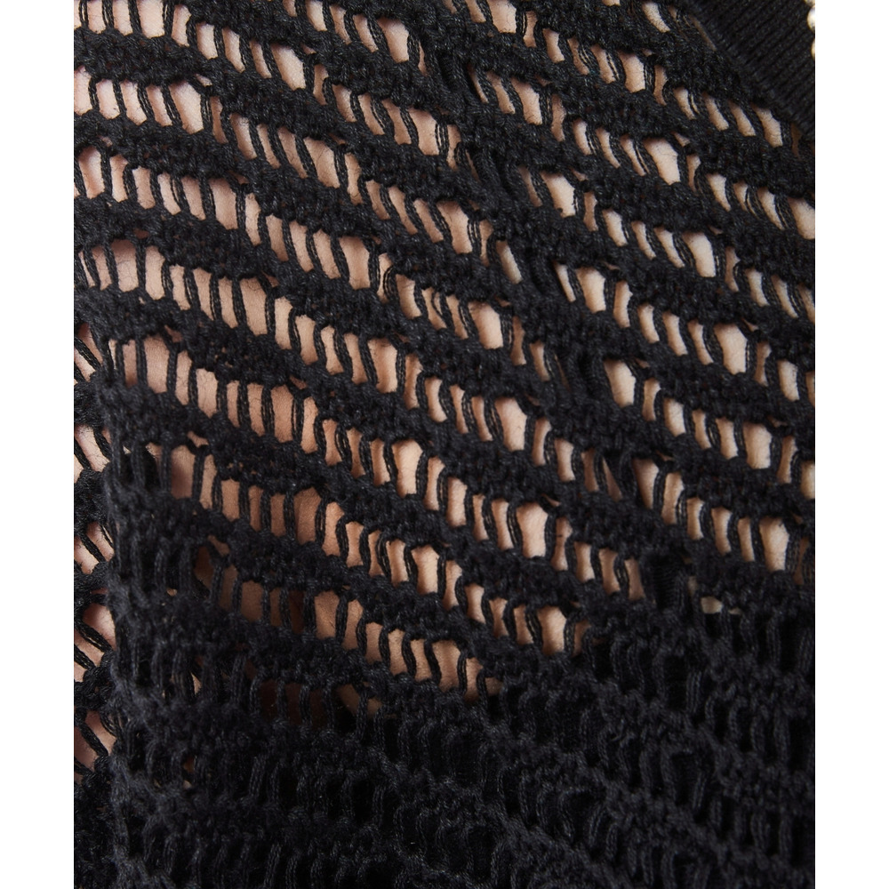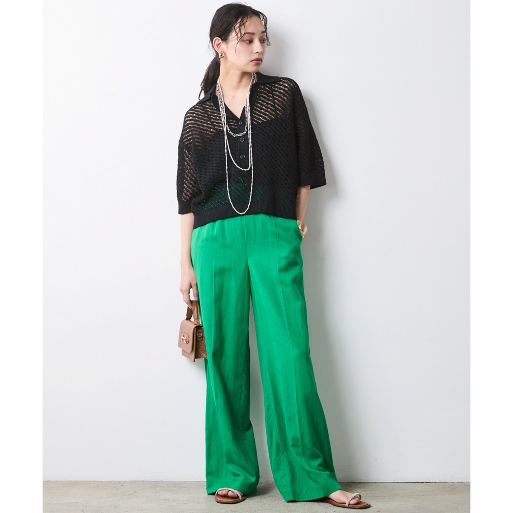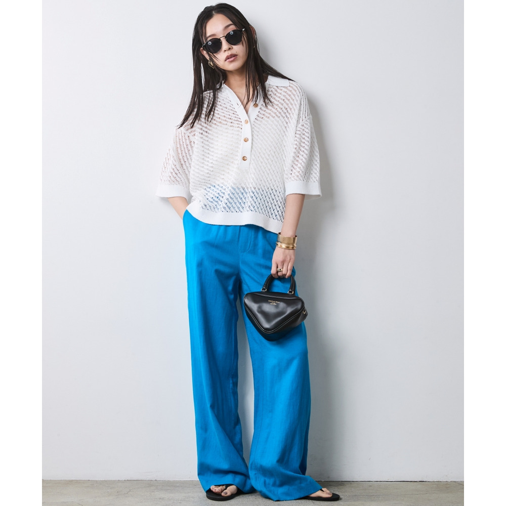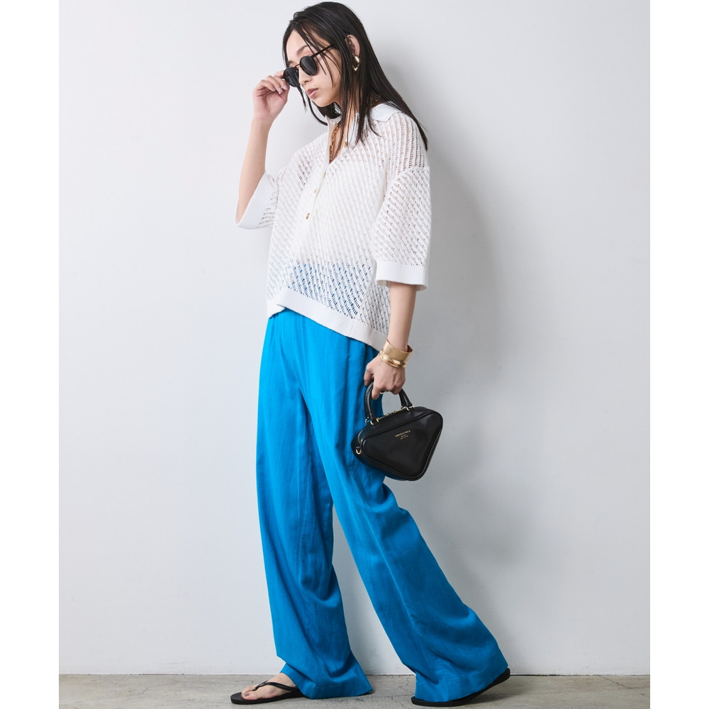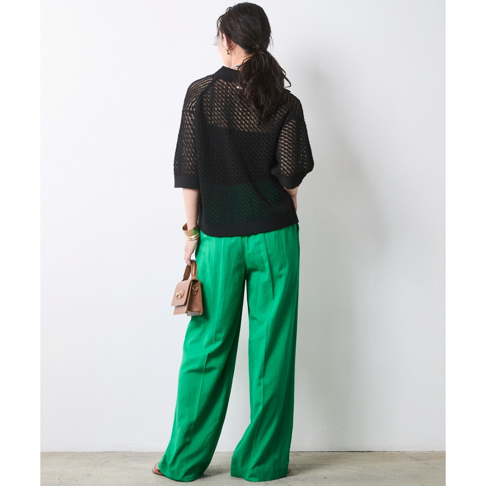 肌がほのかに透けることで、ニット特有の重さを感じさせず、涼やかでモードな印象を与えます。