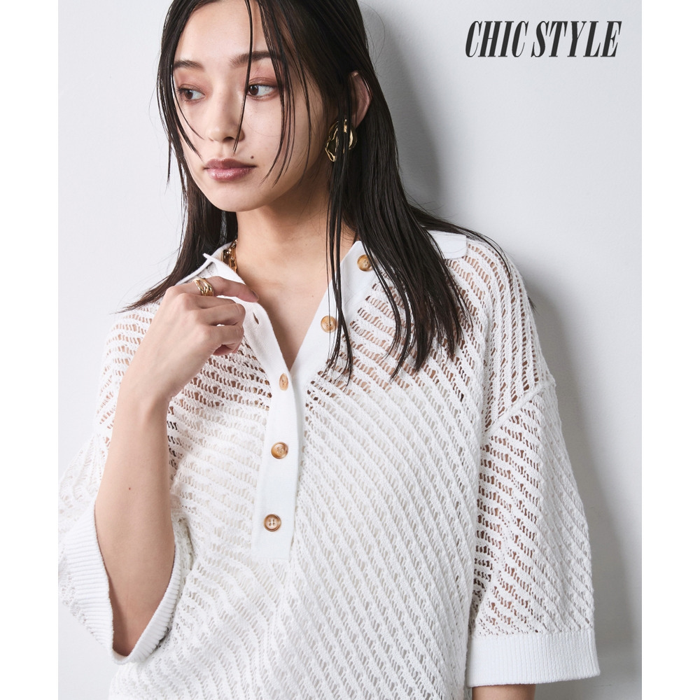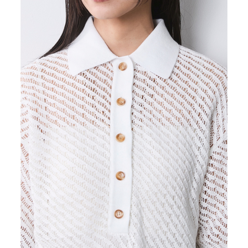 綿麻透かし編ポロニット 大きいサイズ シックスタイル
