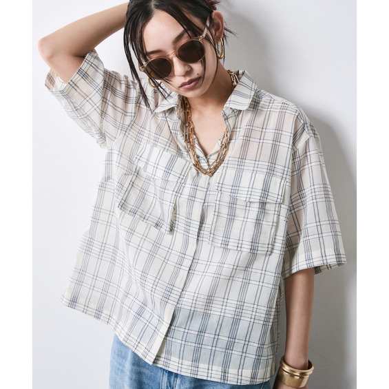 繊細な透け感と、程よいハリ感のあるシアーチェック素材を使用しています。