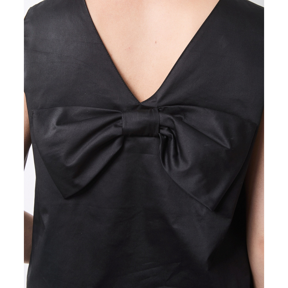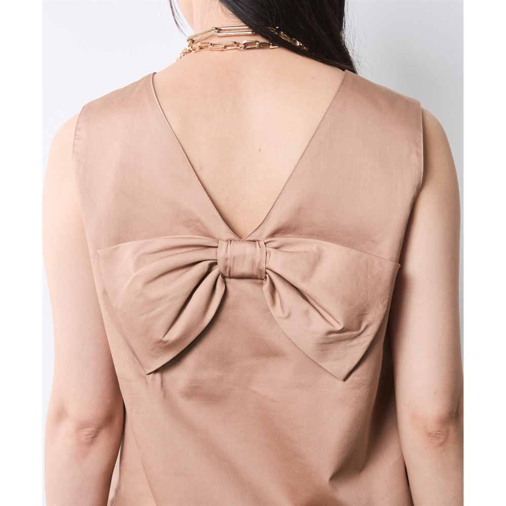 最大の特徴は、背面の深いVカットにあしらわれた大きなボウリボン。