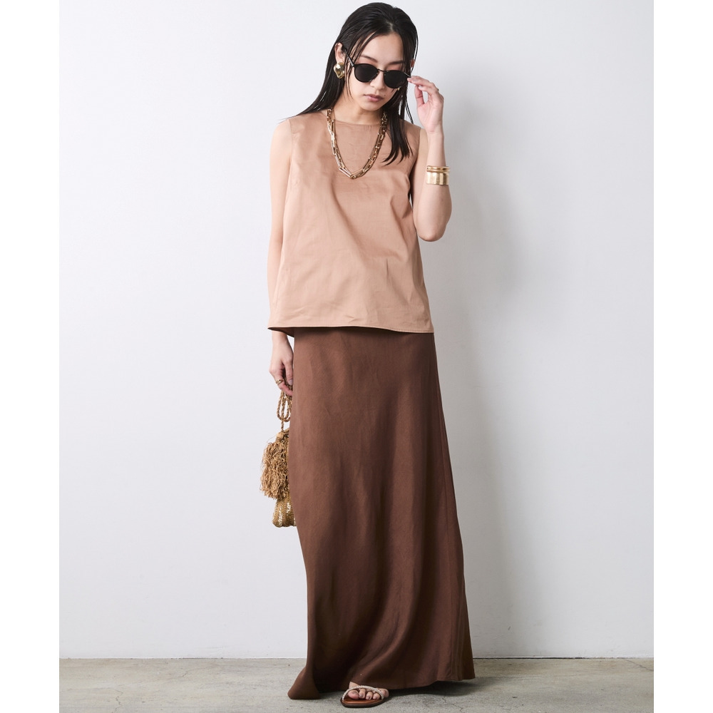 体のラインを拾いすぎない程よいAラインシルエットが、リラックス感とスタイルアップを両立します。