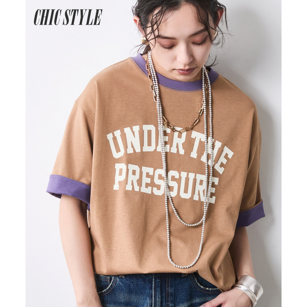綿100%バイカラーロゴプリントTシャツ 大きいサイズ シックスタイル