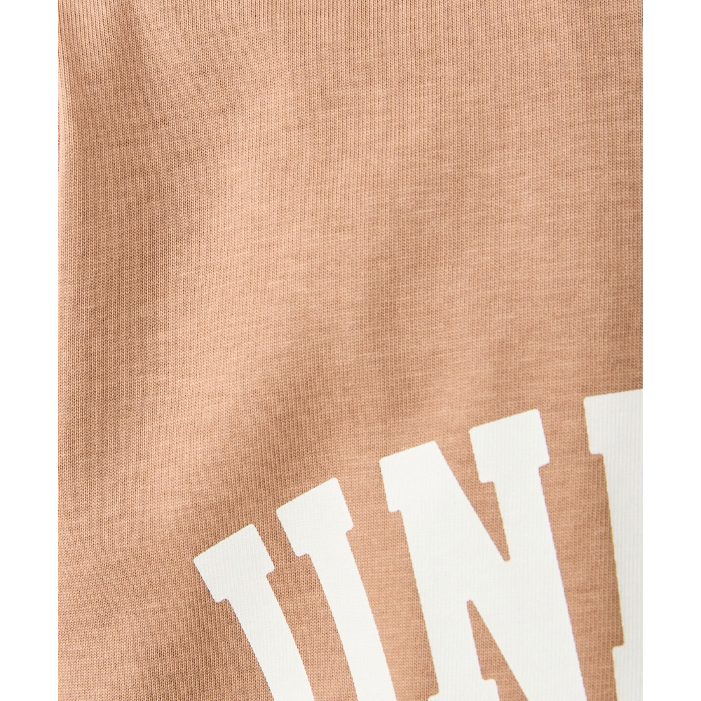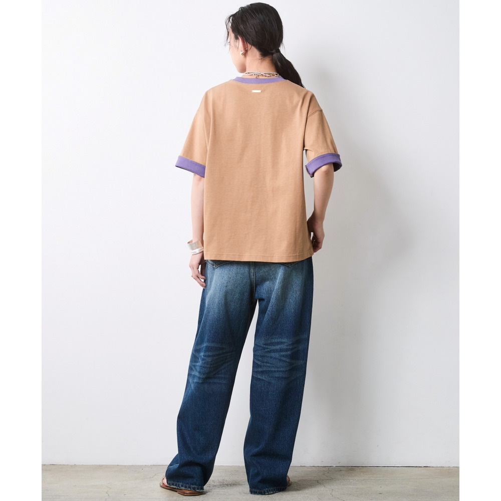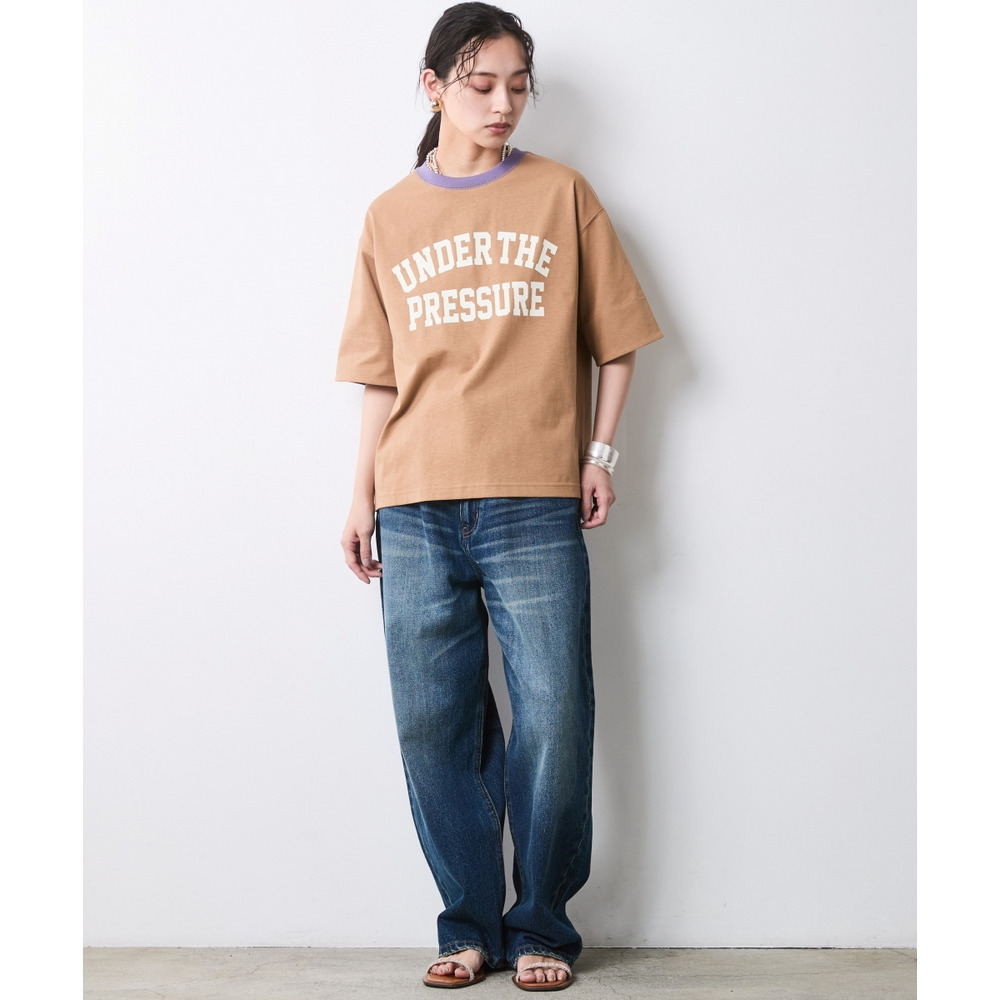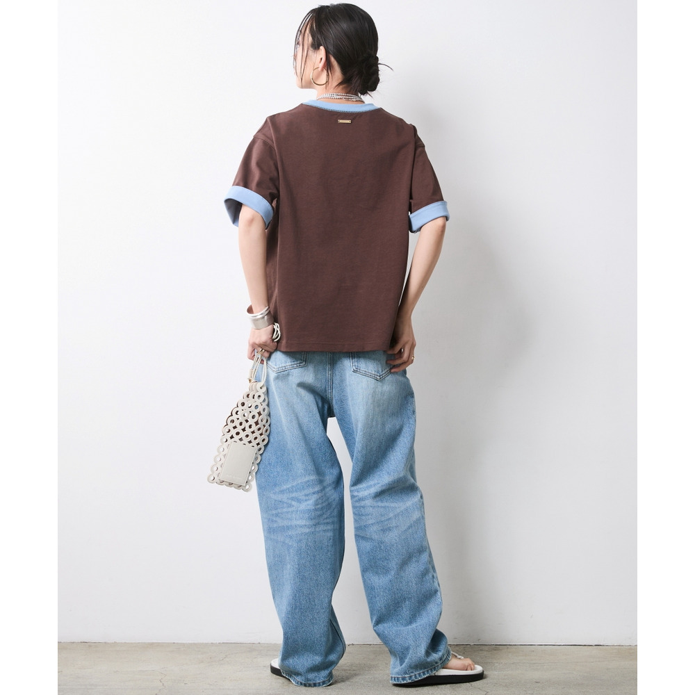 モカのTシャツに、あえてルーズなワイドデニムを合わせた王道カジュアル。