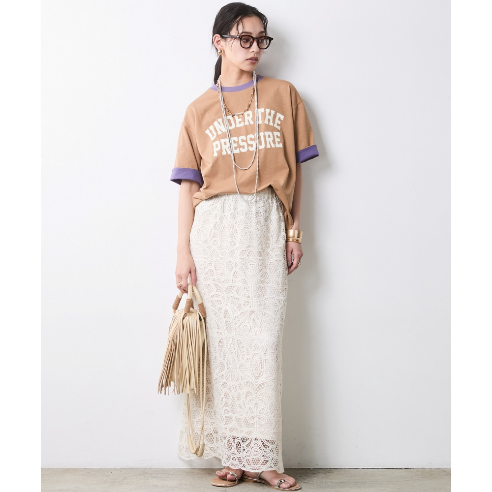 スポーティなリンガーTとレディなレースの相反するバランスが、上級者なこなれ感を演出します。
