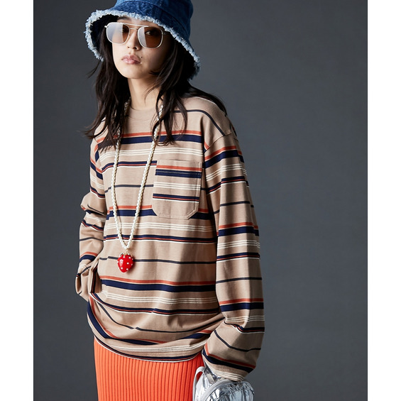 肌寒い季節には、ジャケットやカーディガン、ベストのインナーとしても活躍し、ボーダー柄がコーディネートのアクセントになります。