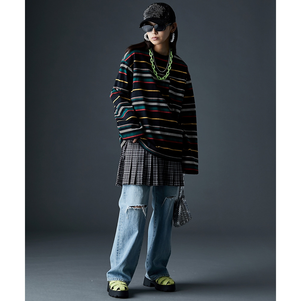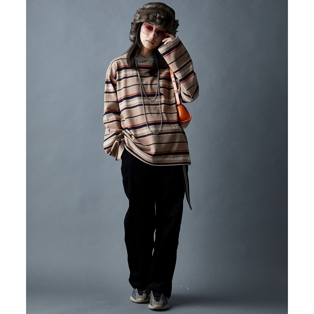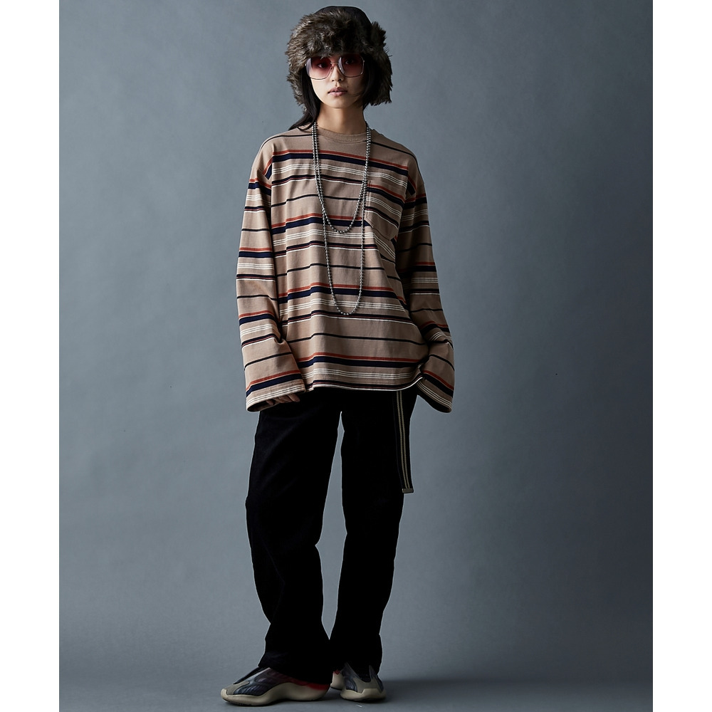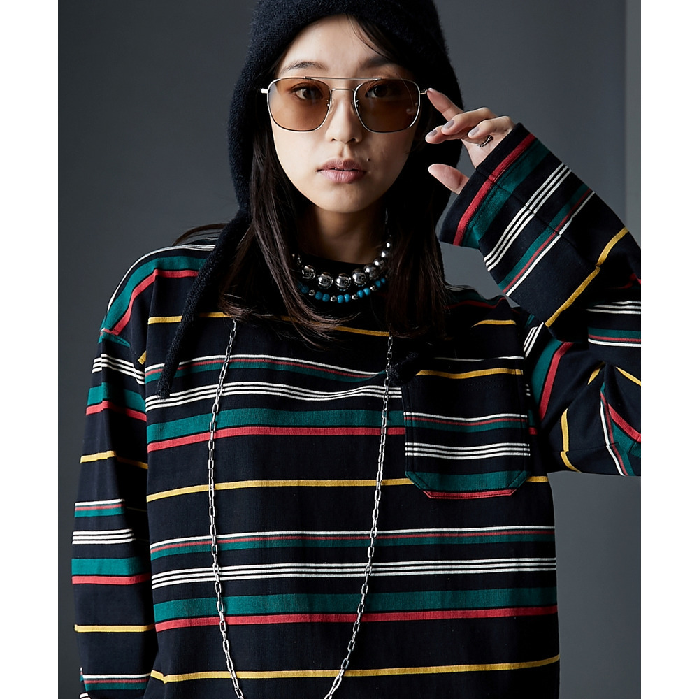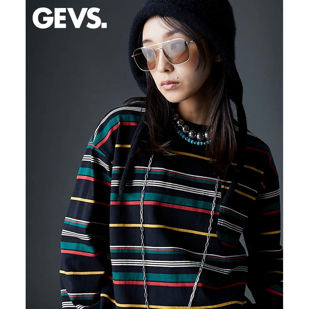 綿100%マルチボーダーロングスリーブTシャツ 大きいサイズ GEVS.