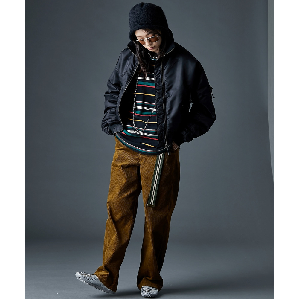 きれいめなスラックスやワイドパンツと合わせれば、上品なカジュアルスタイルが完成します。