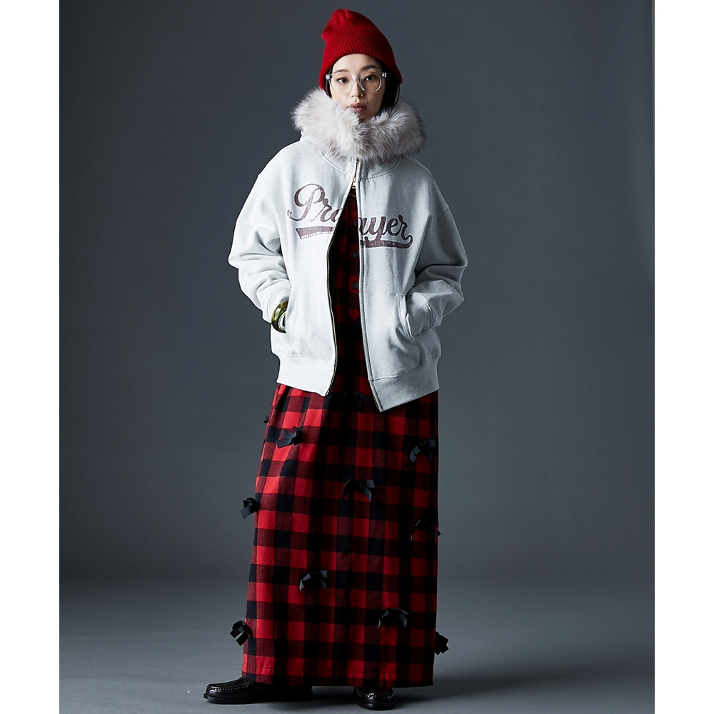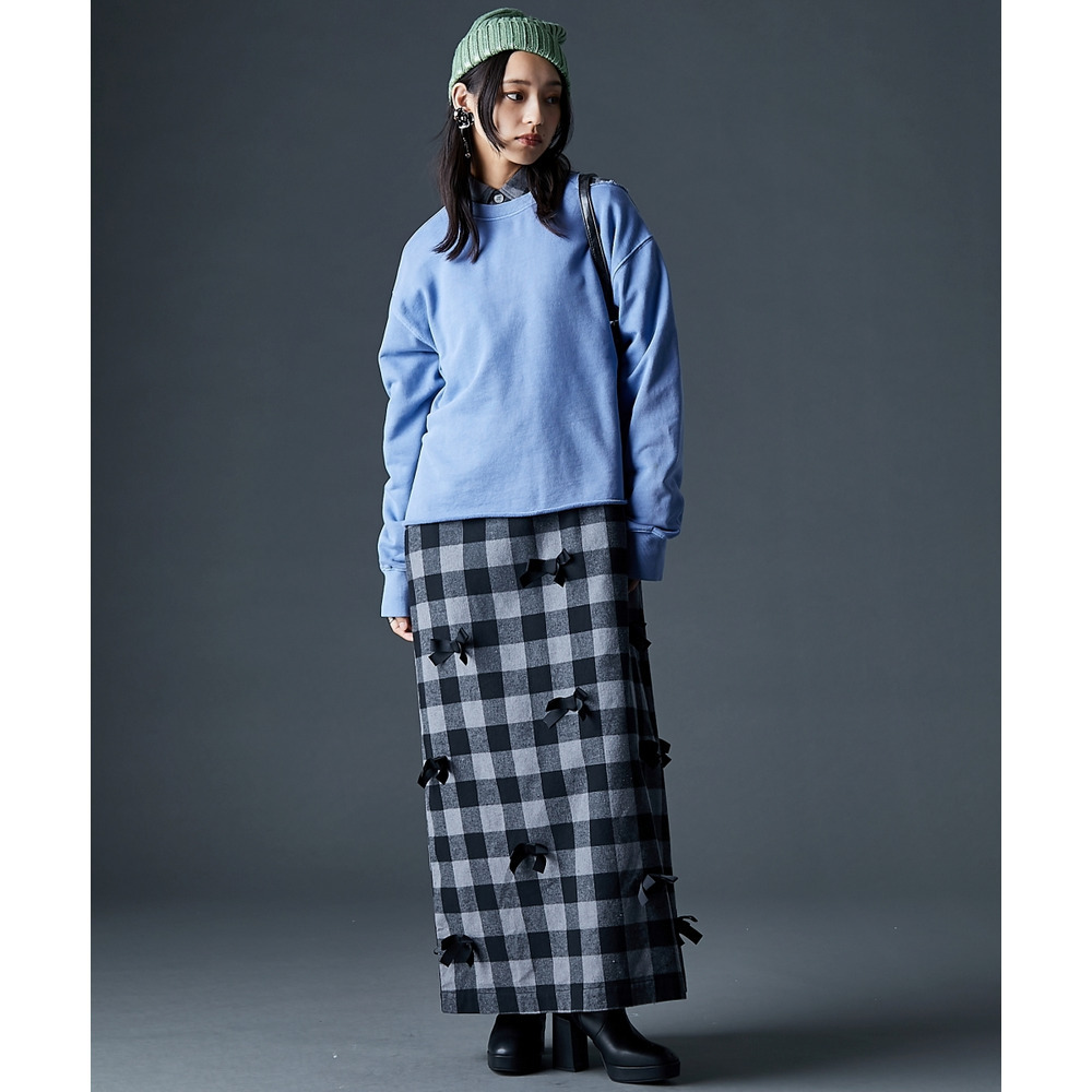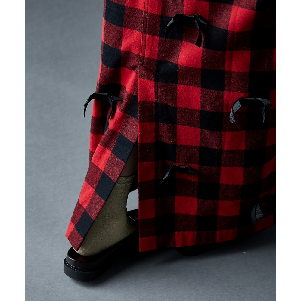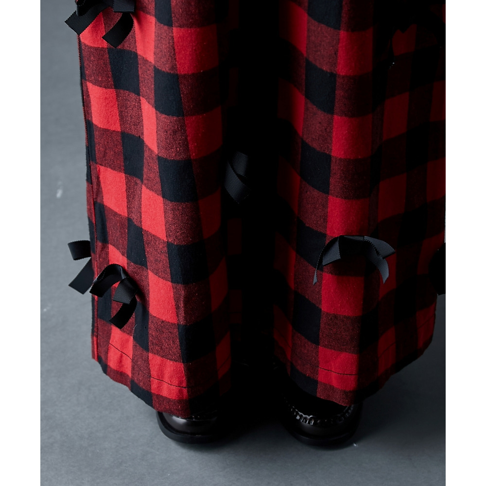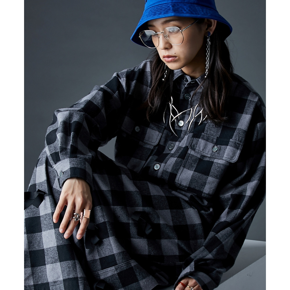 リボン付ブロックチェックシャツマキシワンピース 大きいサイズ GEVS.