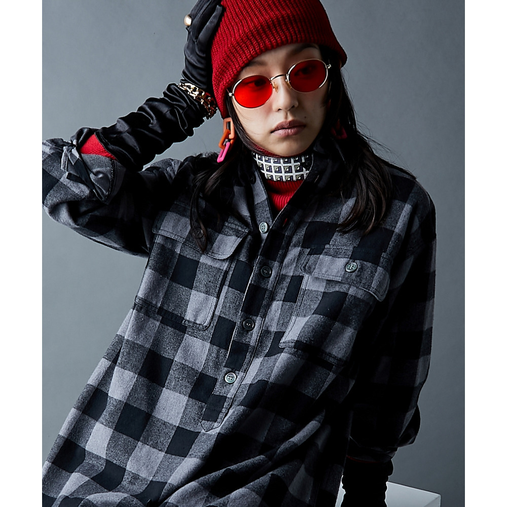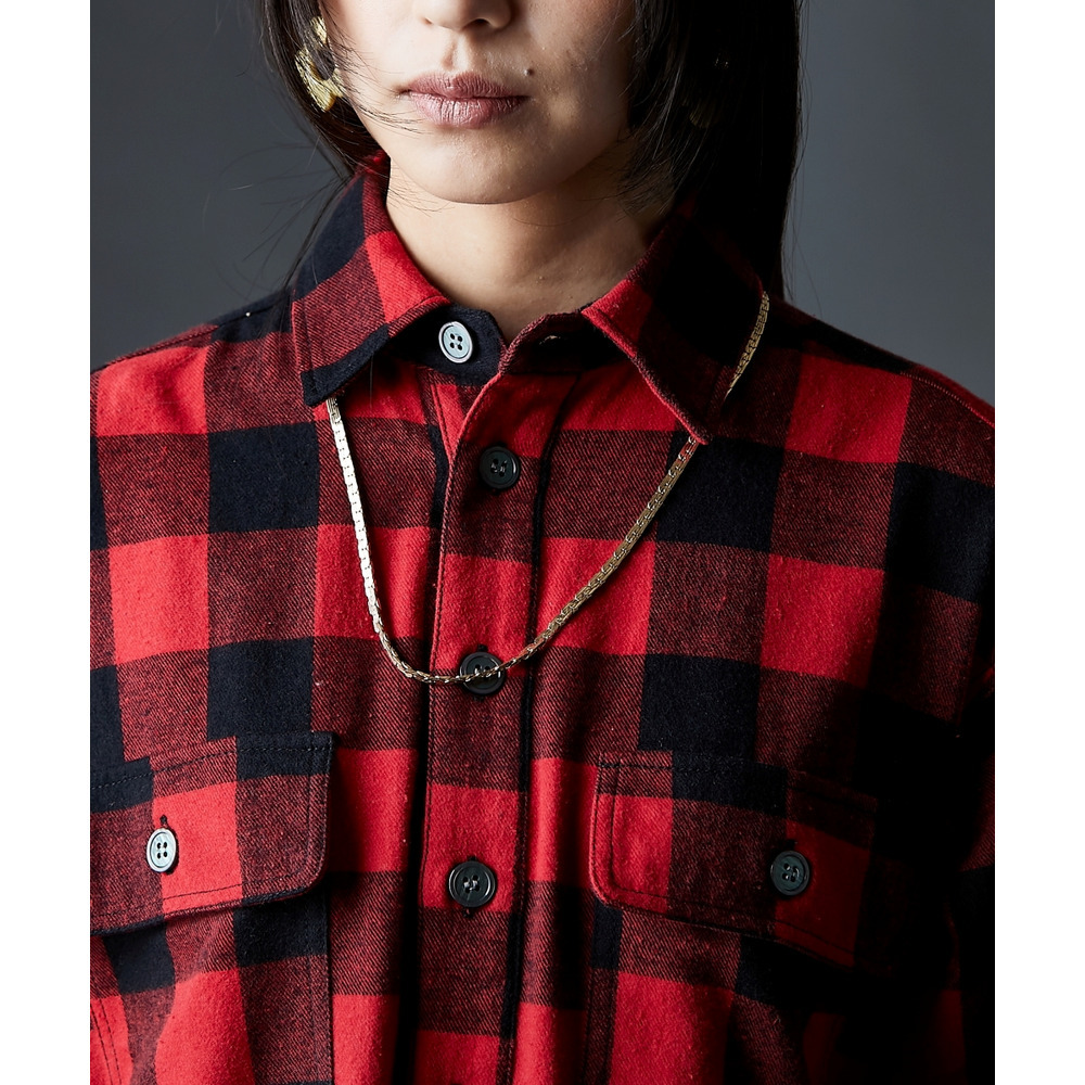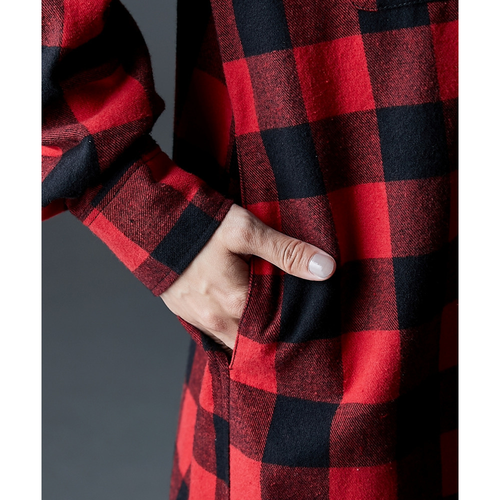 秋冬トレンドのブロックチェックを使ったシャツワンピース。