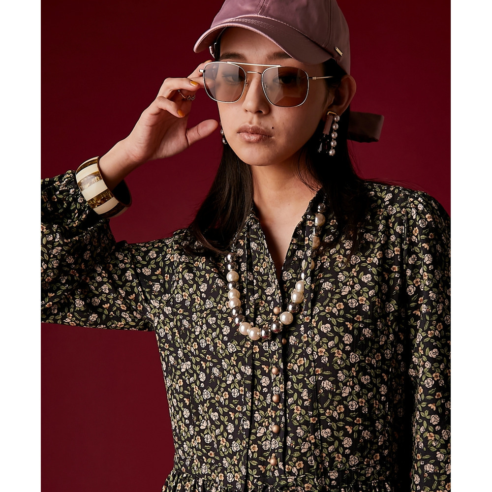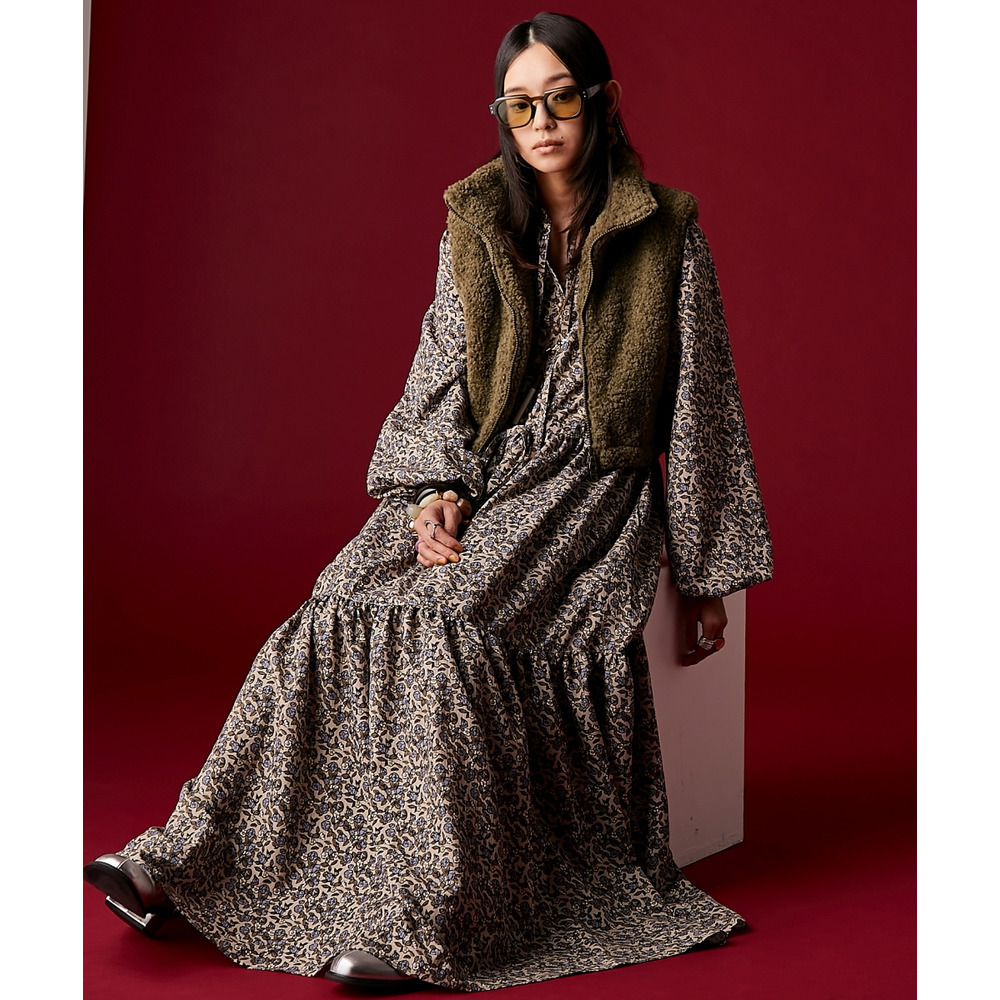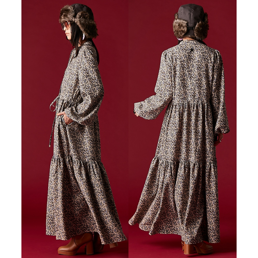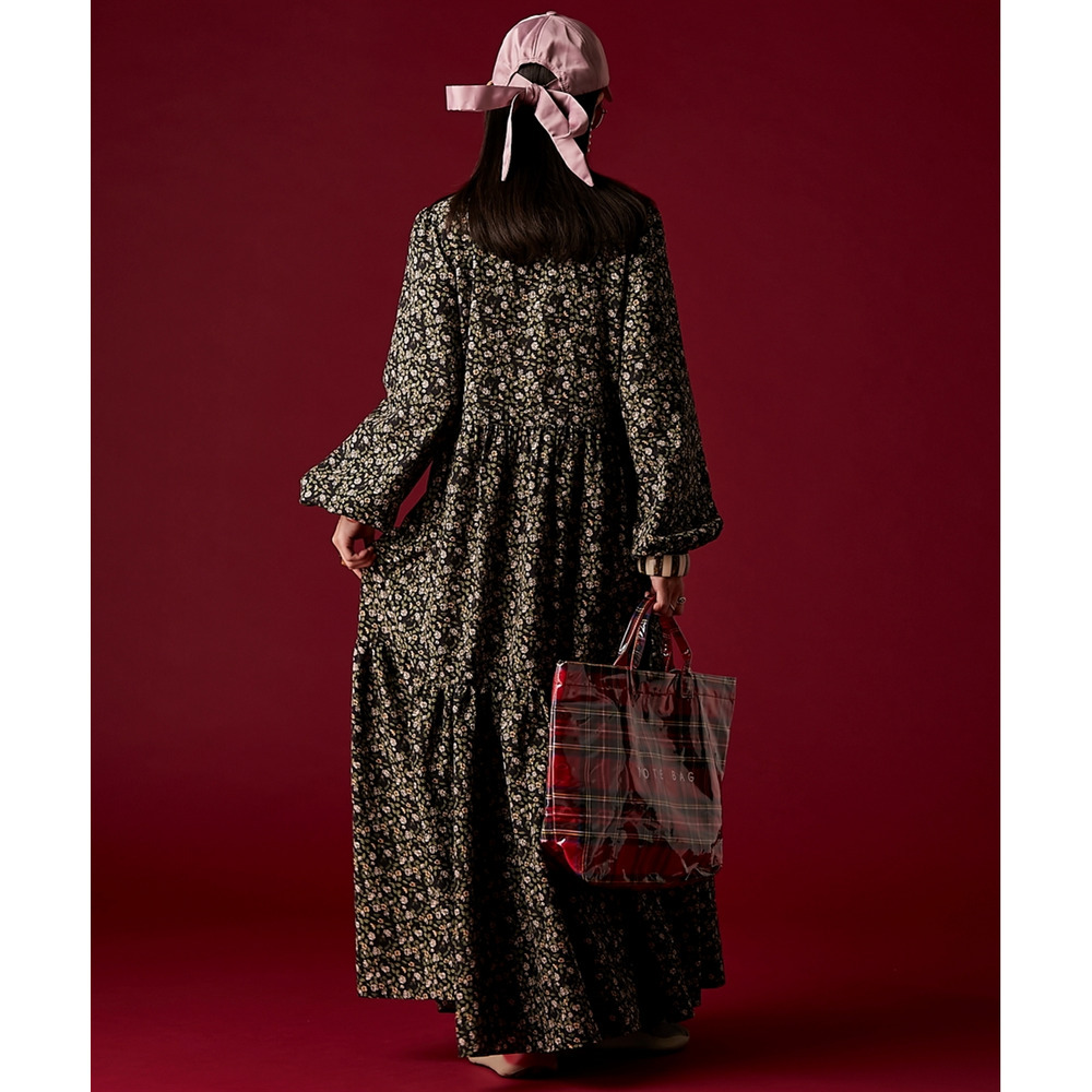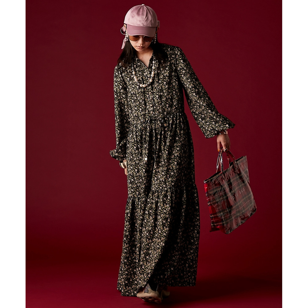 レトロな小花柄とボリュームのあるティアードシルエットが着るだけでドラマティックなスタイルを演出。