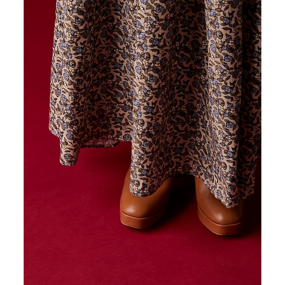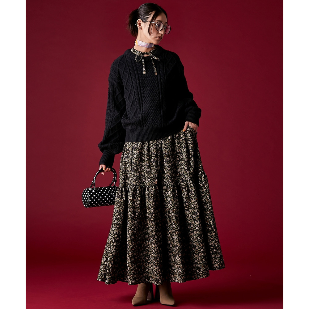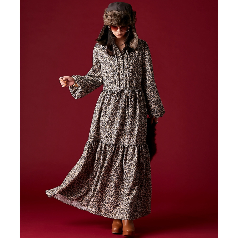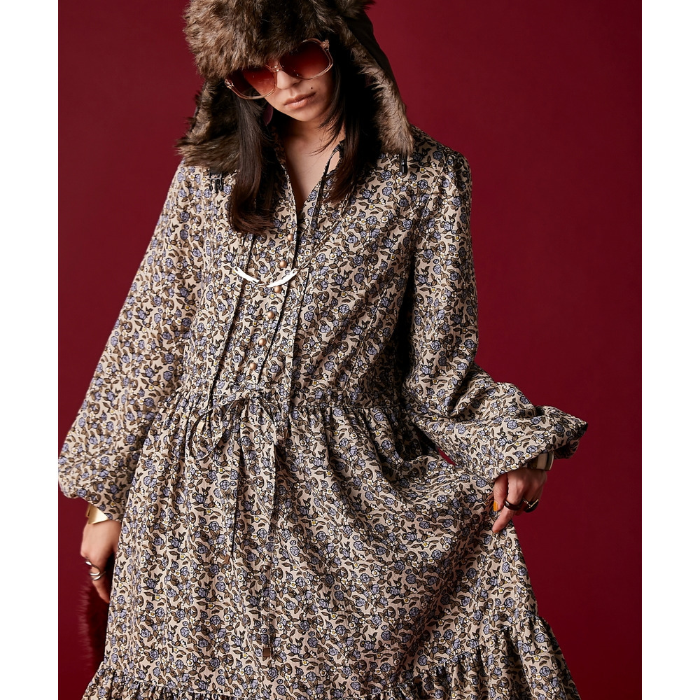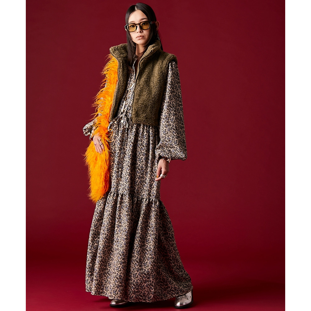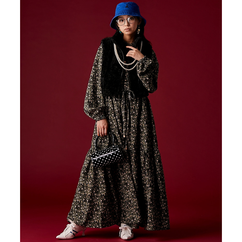 レトロな小花柄とボリュームのあるティアードシルエットが着るだけでドラマティックなスタイルを演出。