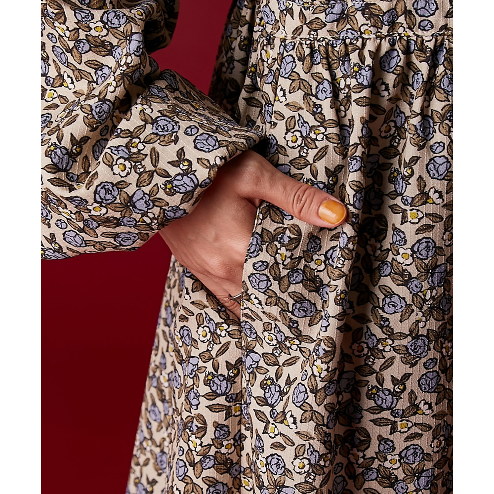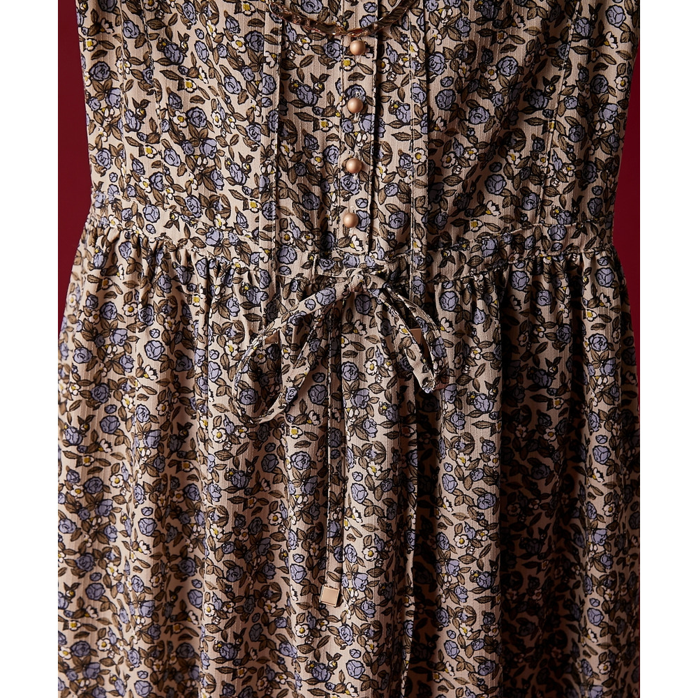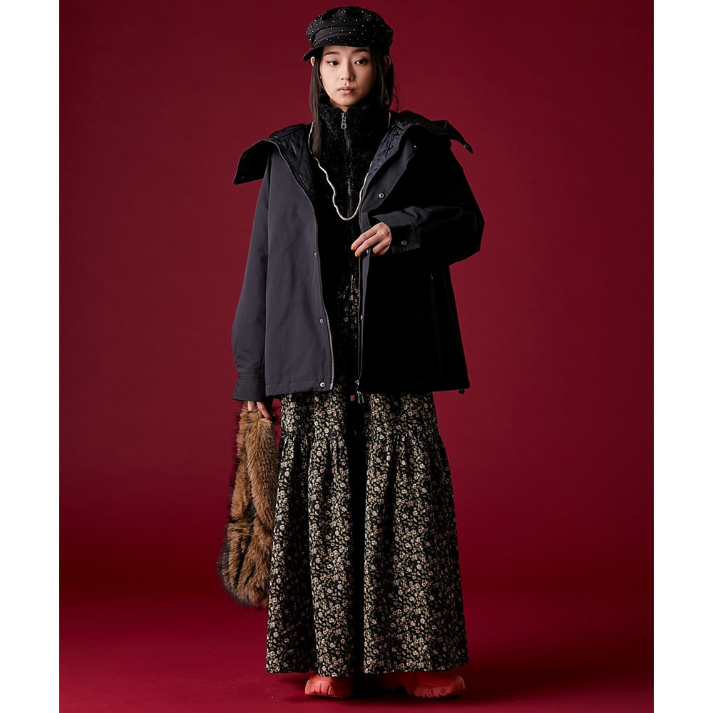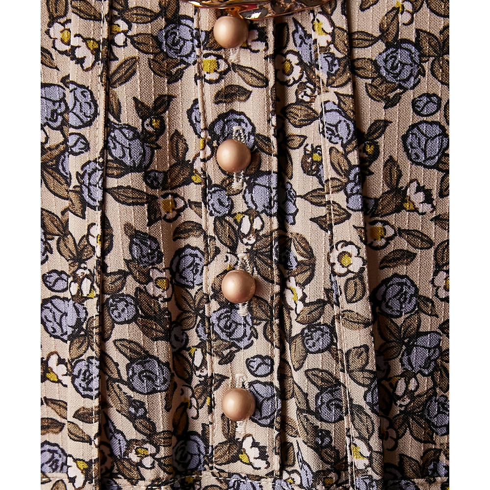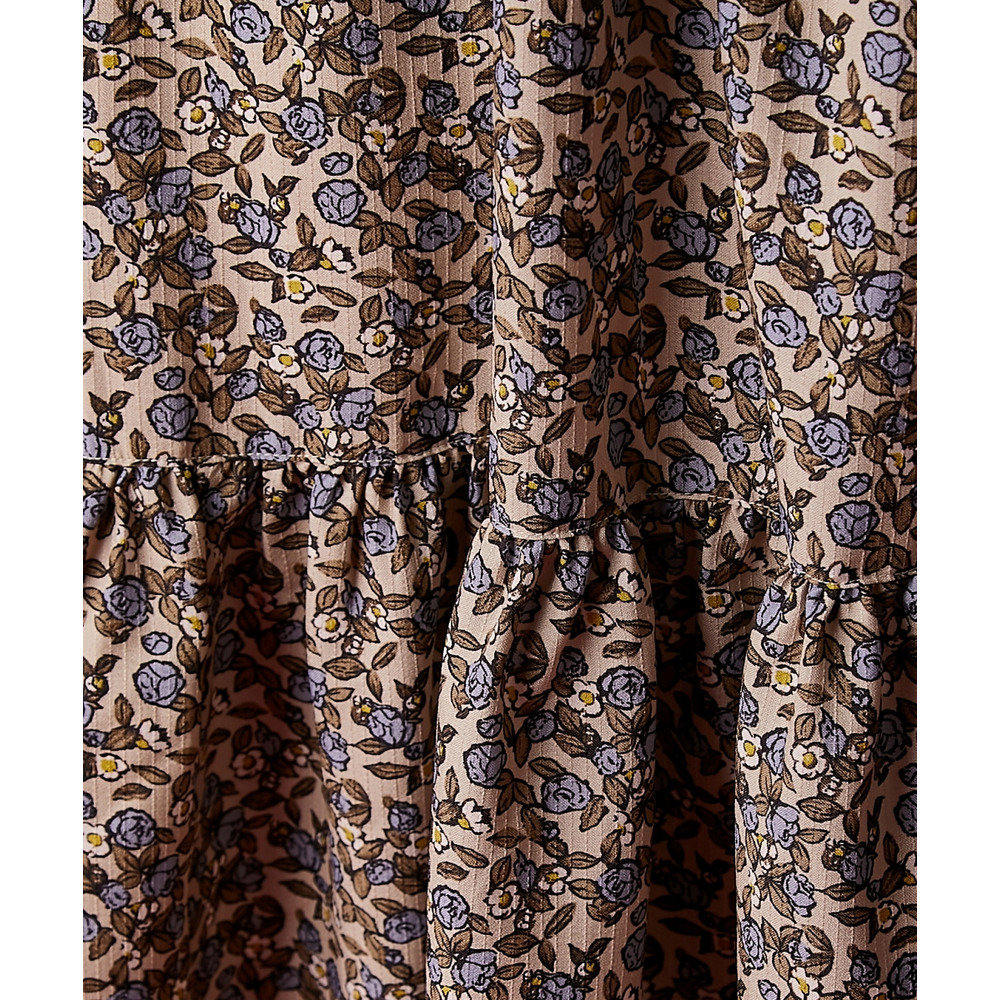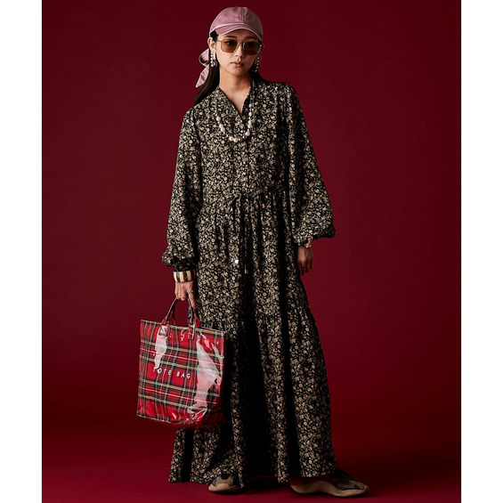 レトロな小花柄とボリュームのあるティアードシルエットが着るだけでドラマティックなスタイルを演出。