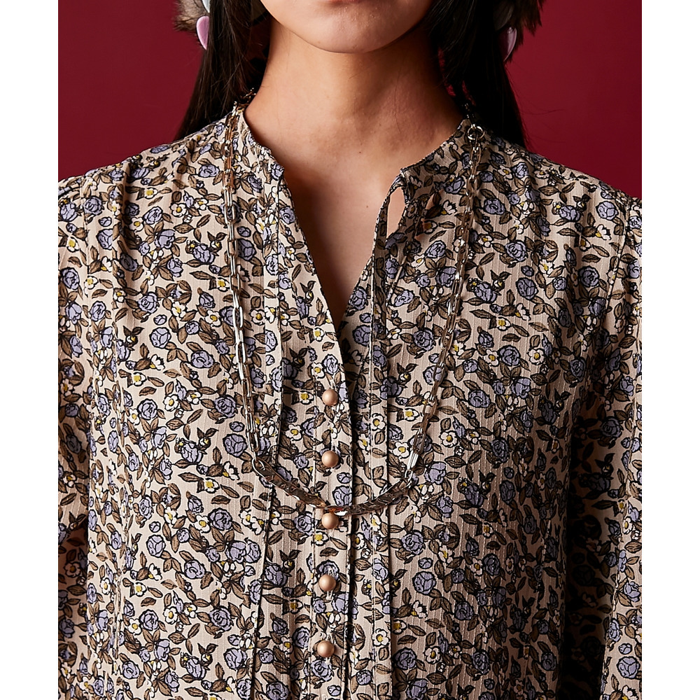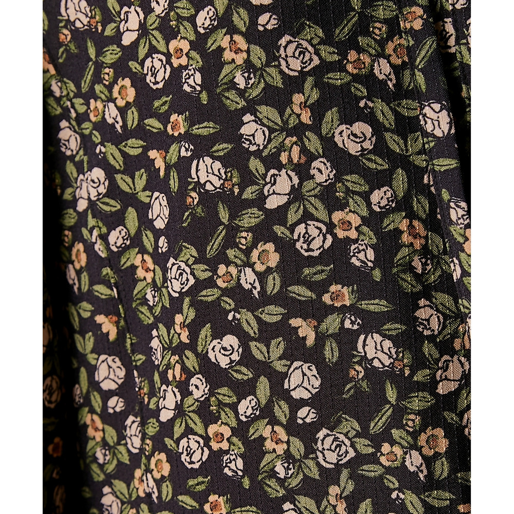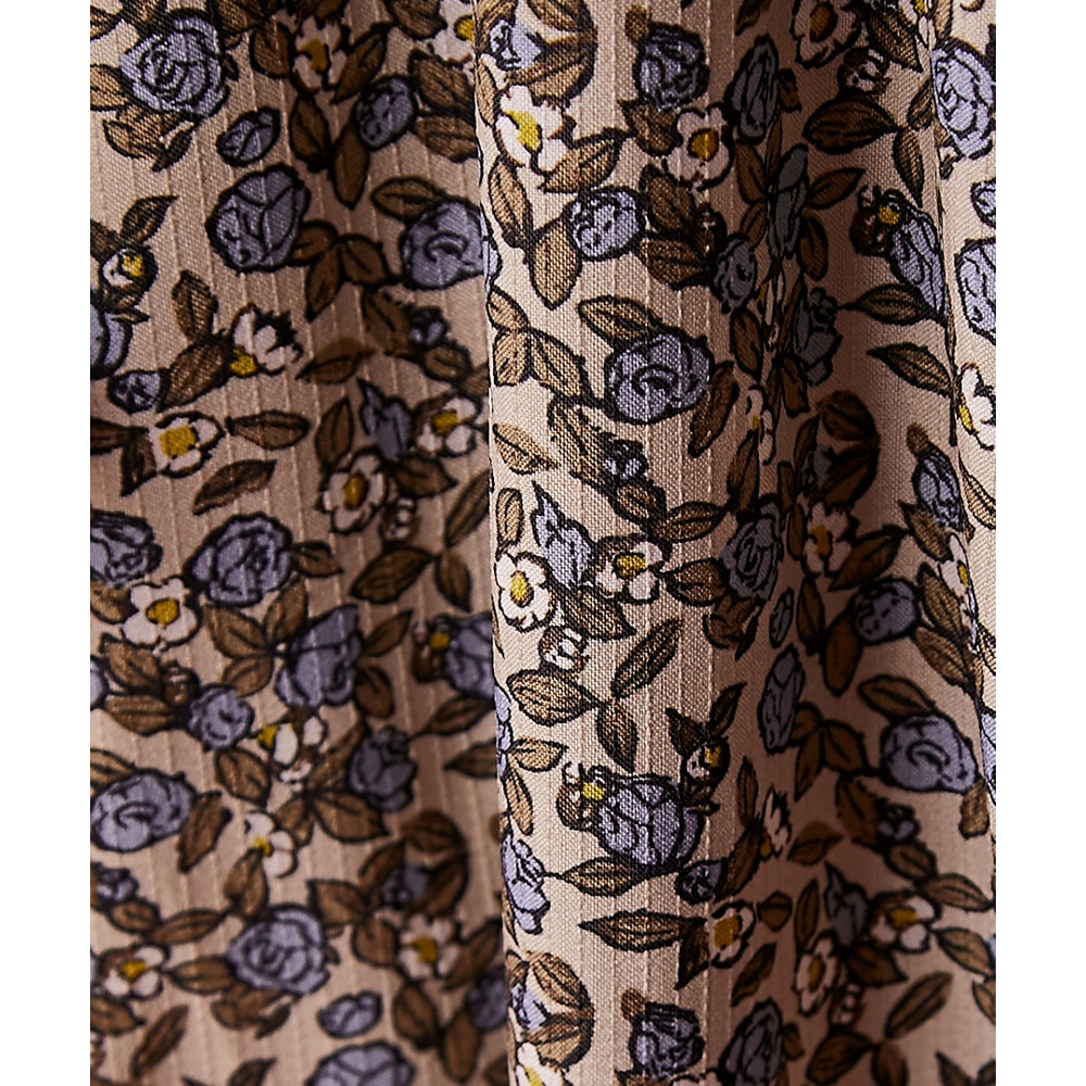 落ち感があり、縦の地柄が入った生地に小花プリントを施しています。