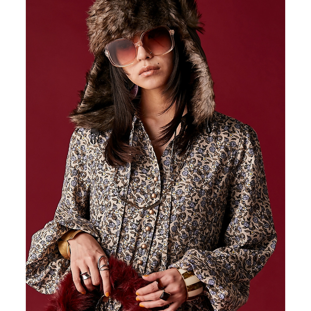 甘くなり過ぎない落ち着いたトーンのレトロ花柄がポイントです。