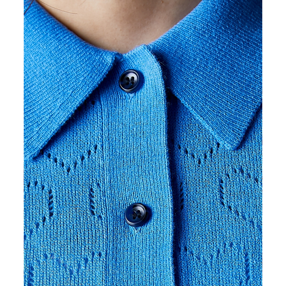 襟付きのデザインがきちんと感を演出し、カジュアルながらも洗練されたスタイルを叶えます。
