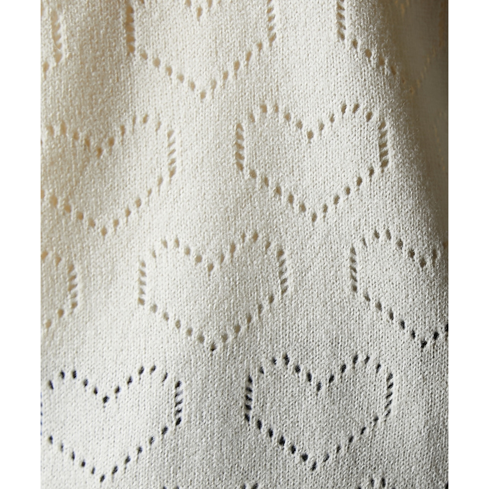 透かし編みで表現されたハート柄は、甘すぎず上品な印象を与えます。