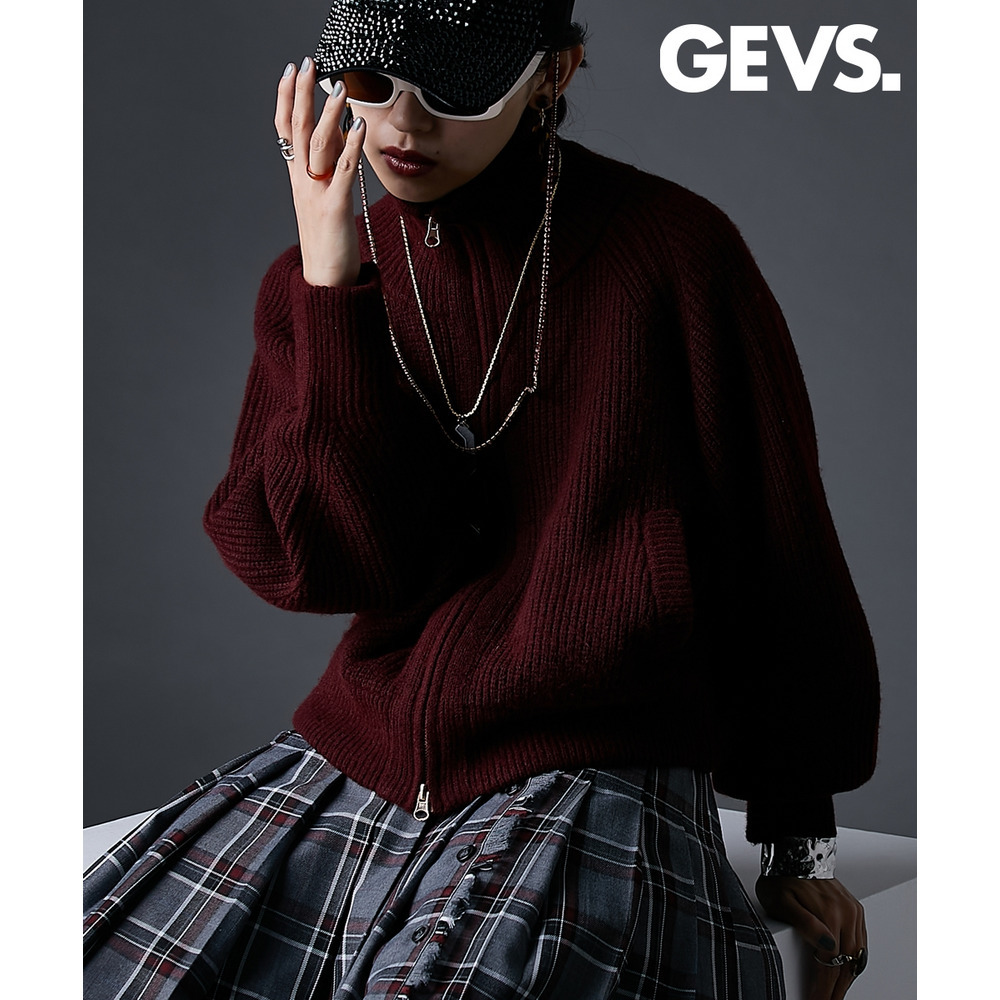 ハイネックジップアップニット 大きいサイズ GEVS.