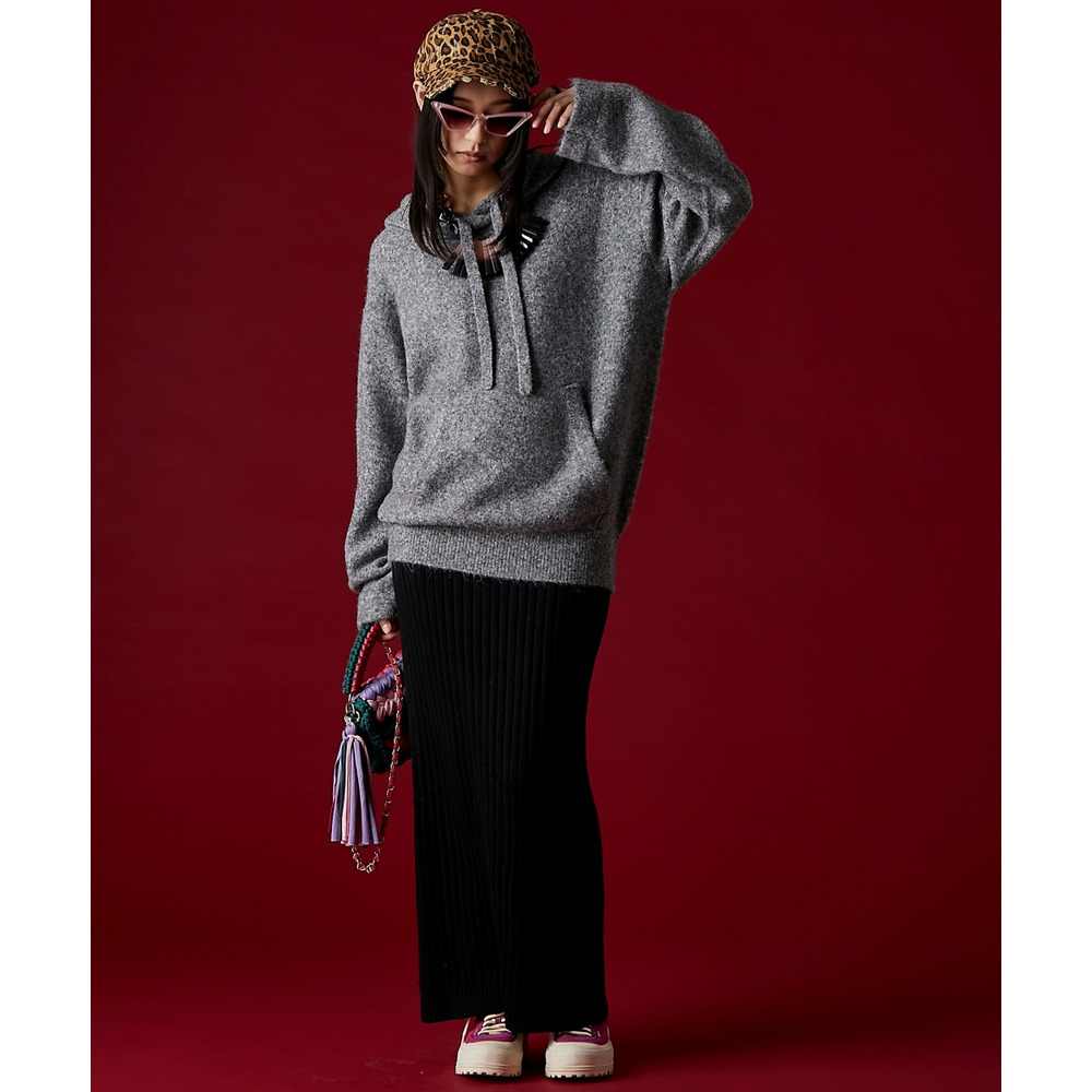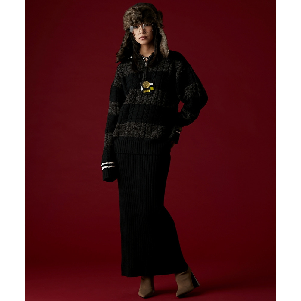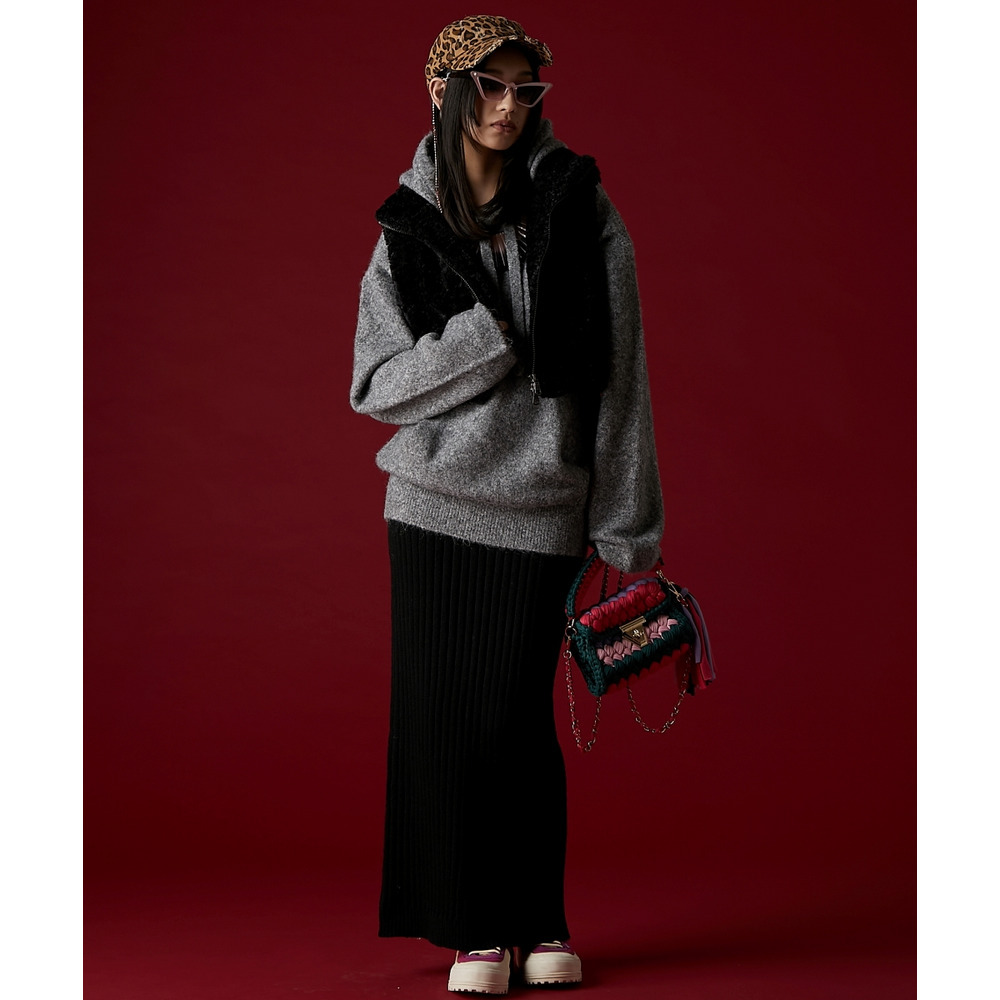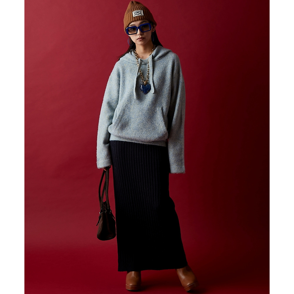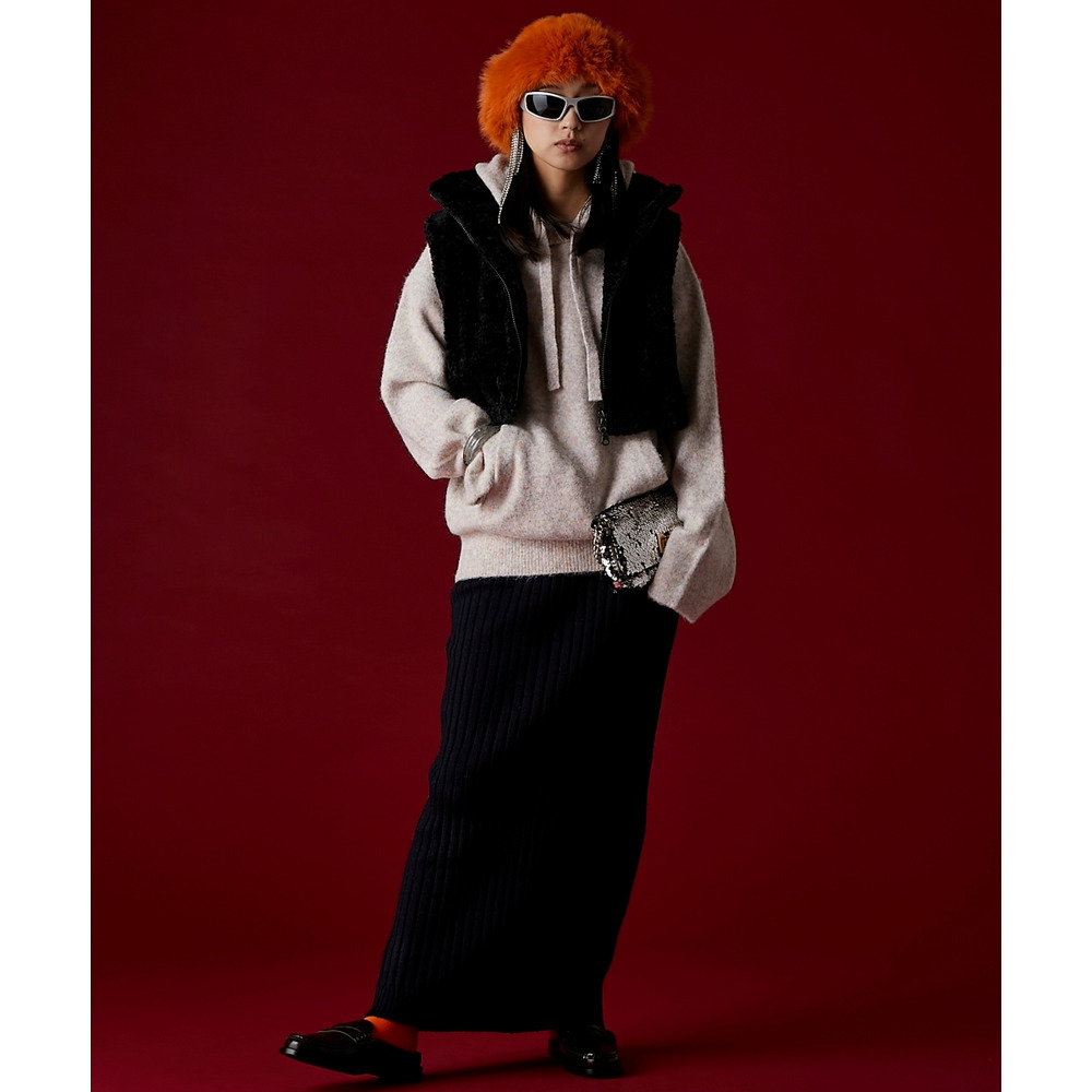 ニットならではの柔らかな素材感ながら太目のリブ編みがタテラインを強調し、足長効果+細見え効果でスタイルアップできるスカートです。
