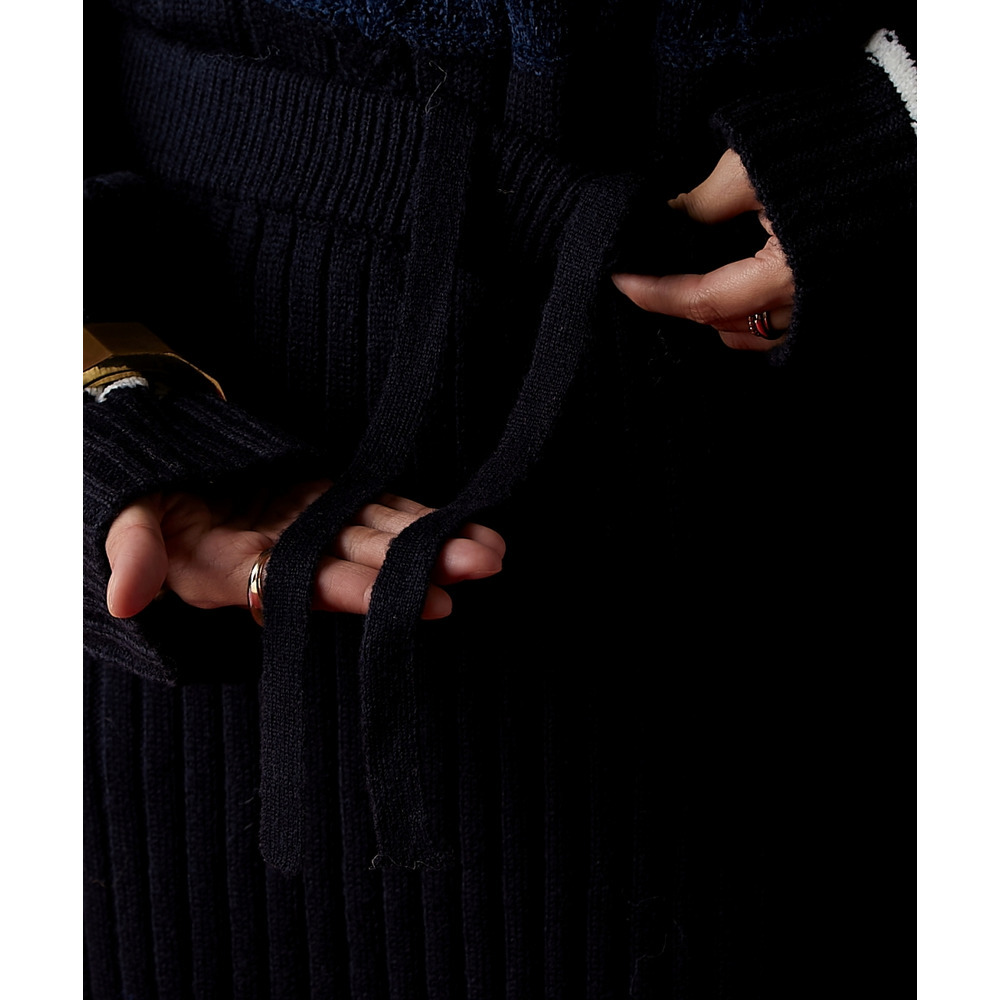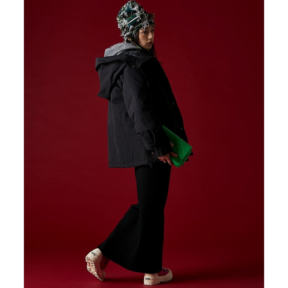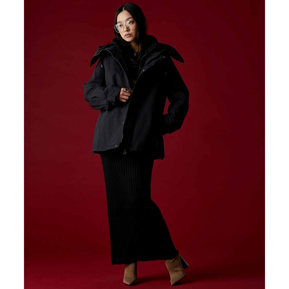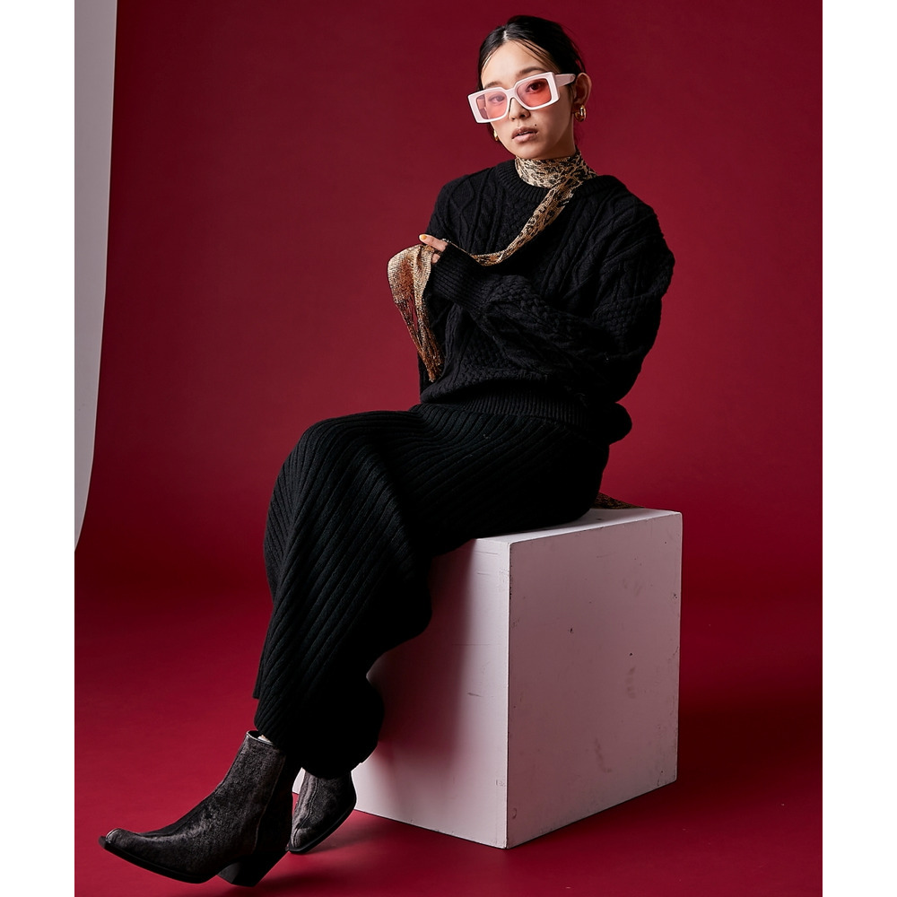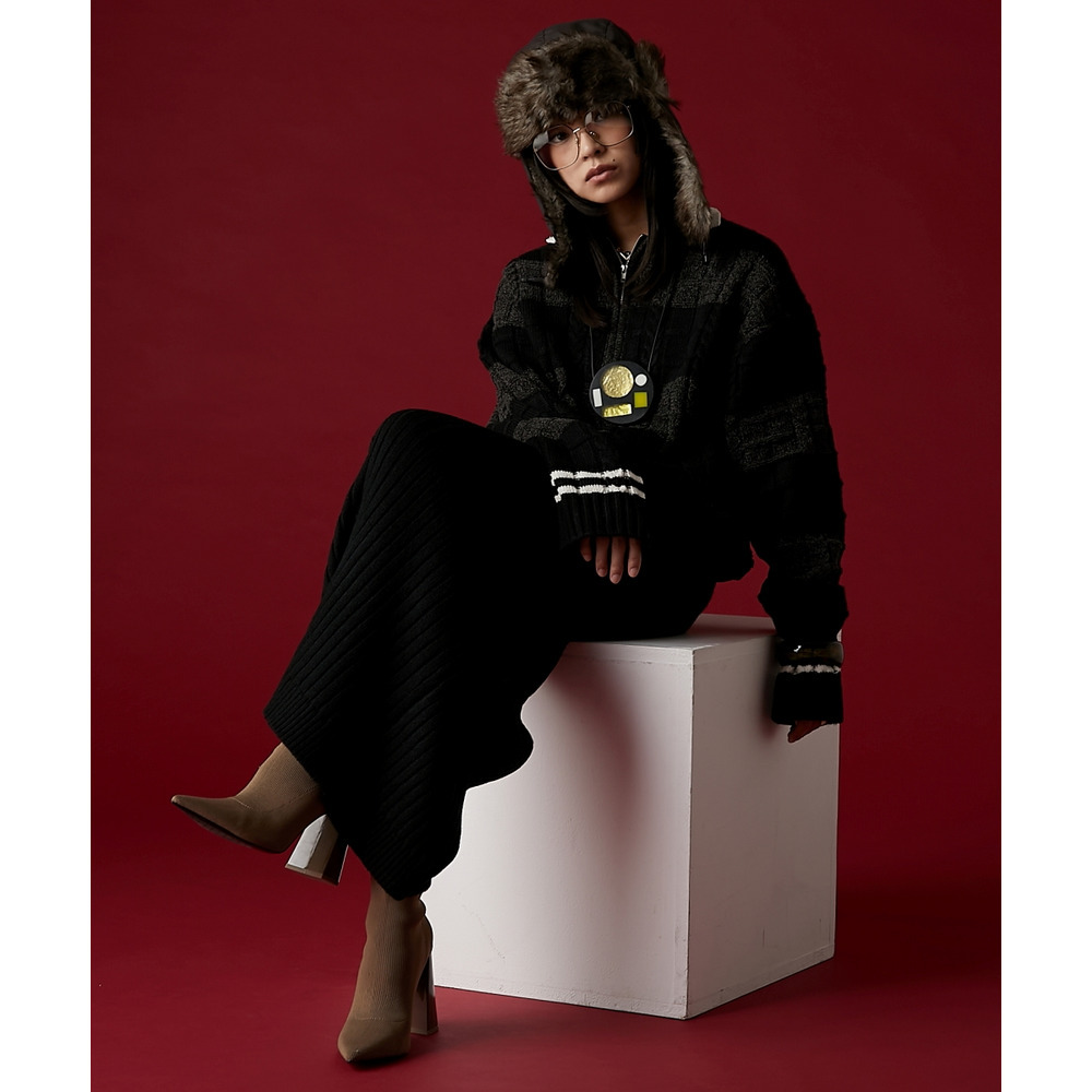ニットならではの柔らかな素材感ながら太目のリブ編みがタテラインを強調し、足長効果+細見え効果でスタイルアップできるスカートです。