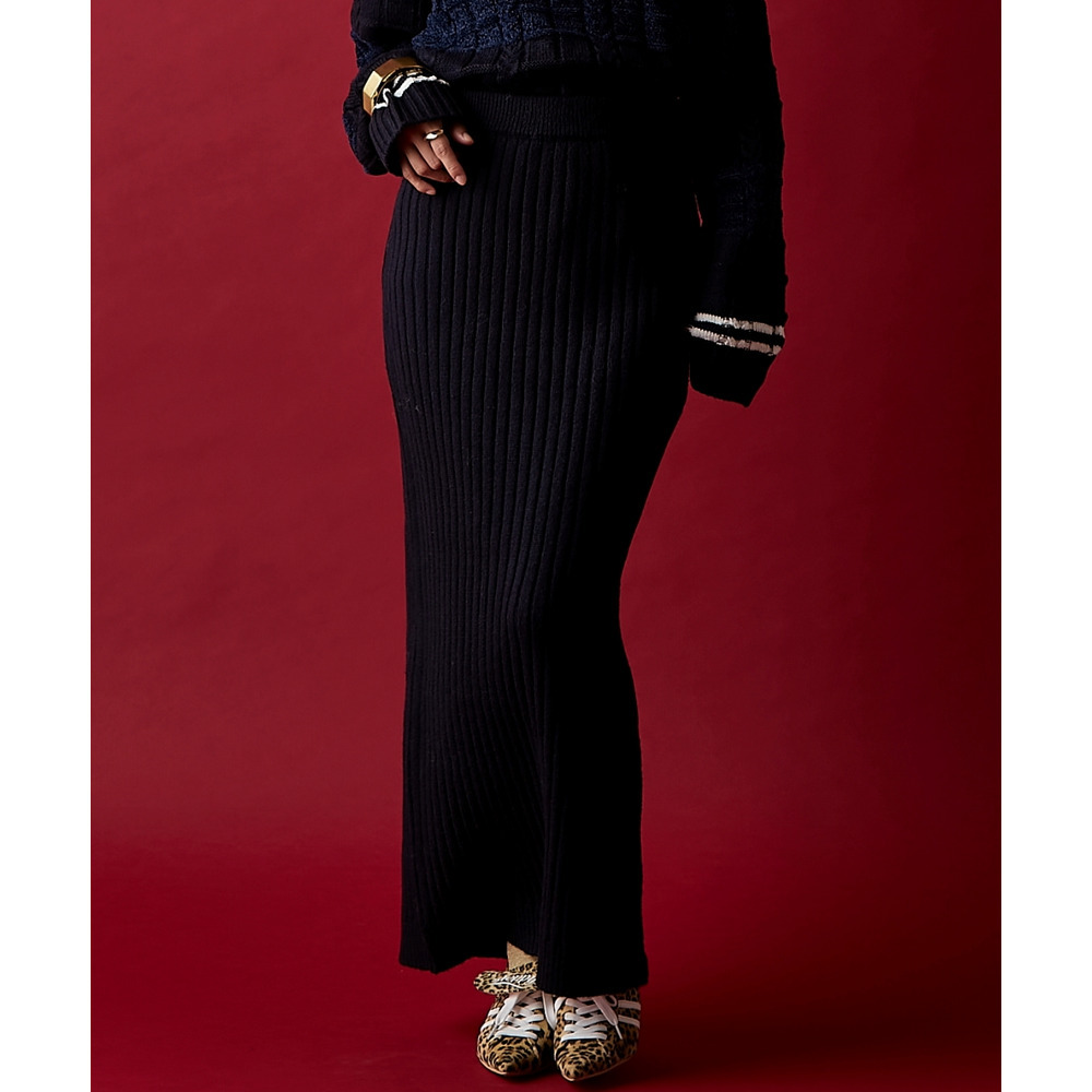 ワイドリブマキシニットスカート 大きいサイズ GEVS.