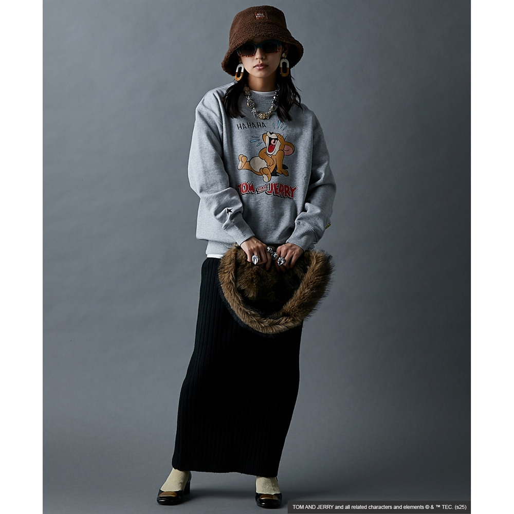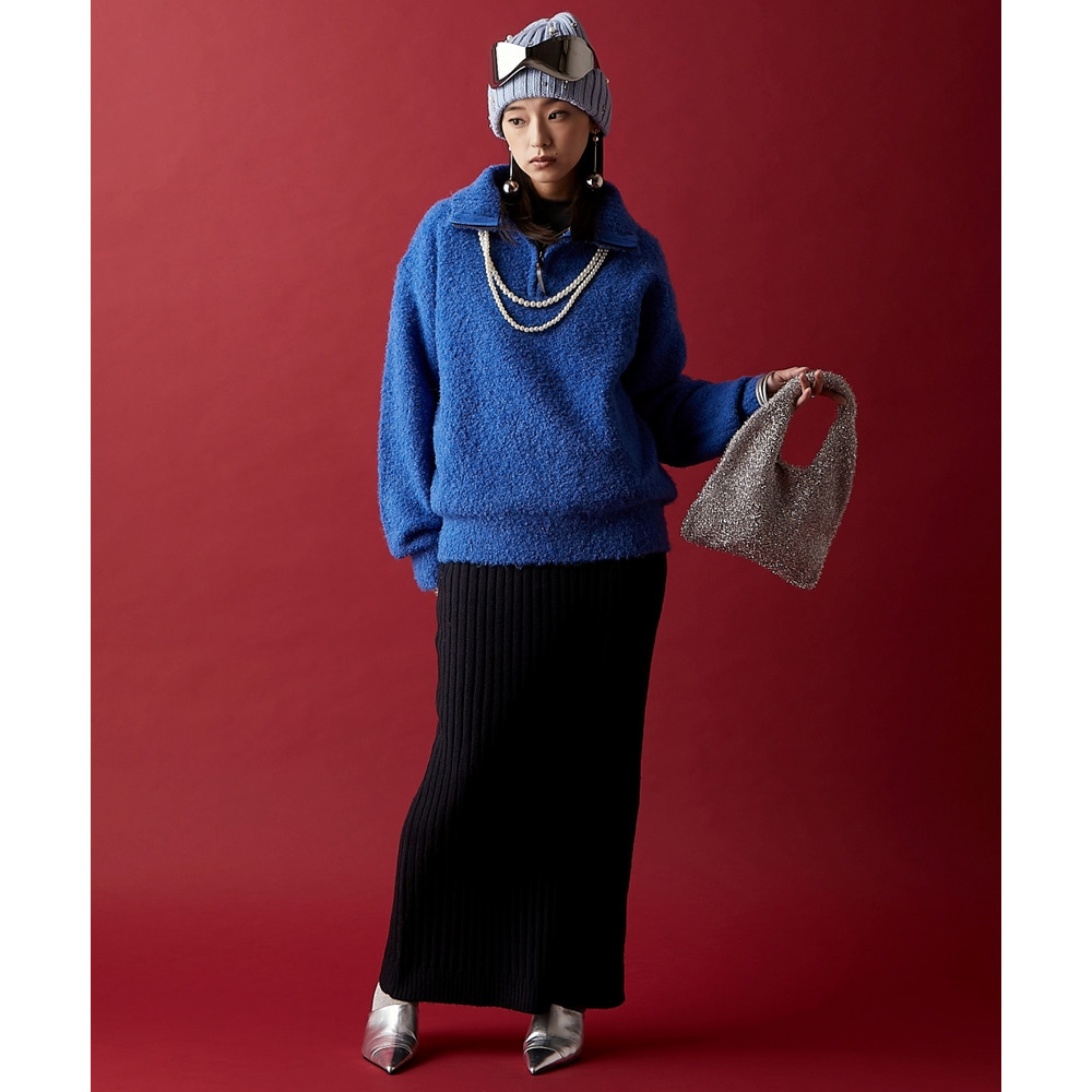 マキシのタイトスカートなのでボリュームのあるトップスとの相性が抜群です。