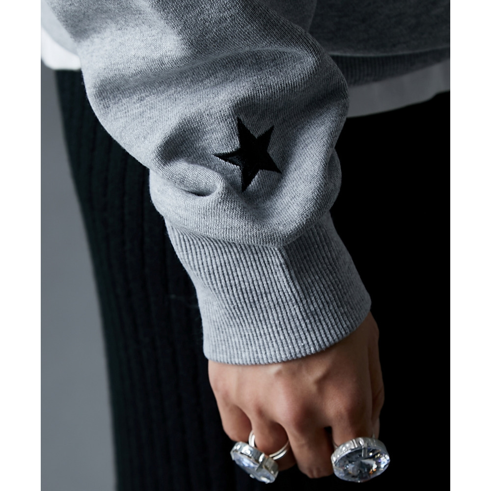 左袖には食いしん坊のタフィーがチーズをかぶったアート刺繍、右袖には★の刺繍を施しました。