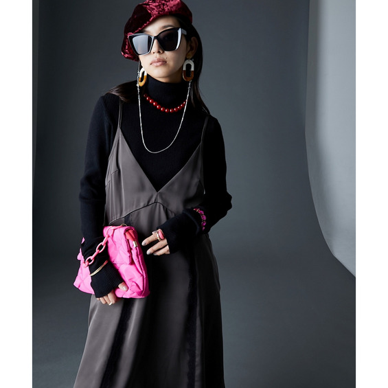 素材 | 品質:ポリエステル100% 肩ひもはアジャスターで長さが多少調節できます。 透け感:ややあり 伸縮性:なし 生地の厚み:薄い 光沢感:あり ポケット:あり(両脇) 季節:春・秋・冬向き シルエット:ゆったり |