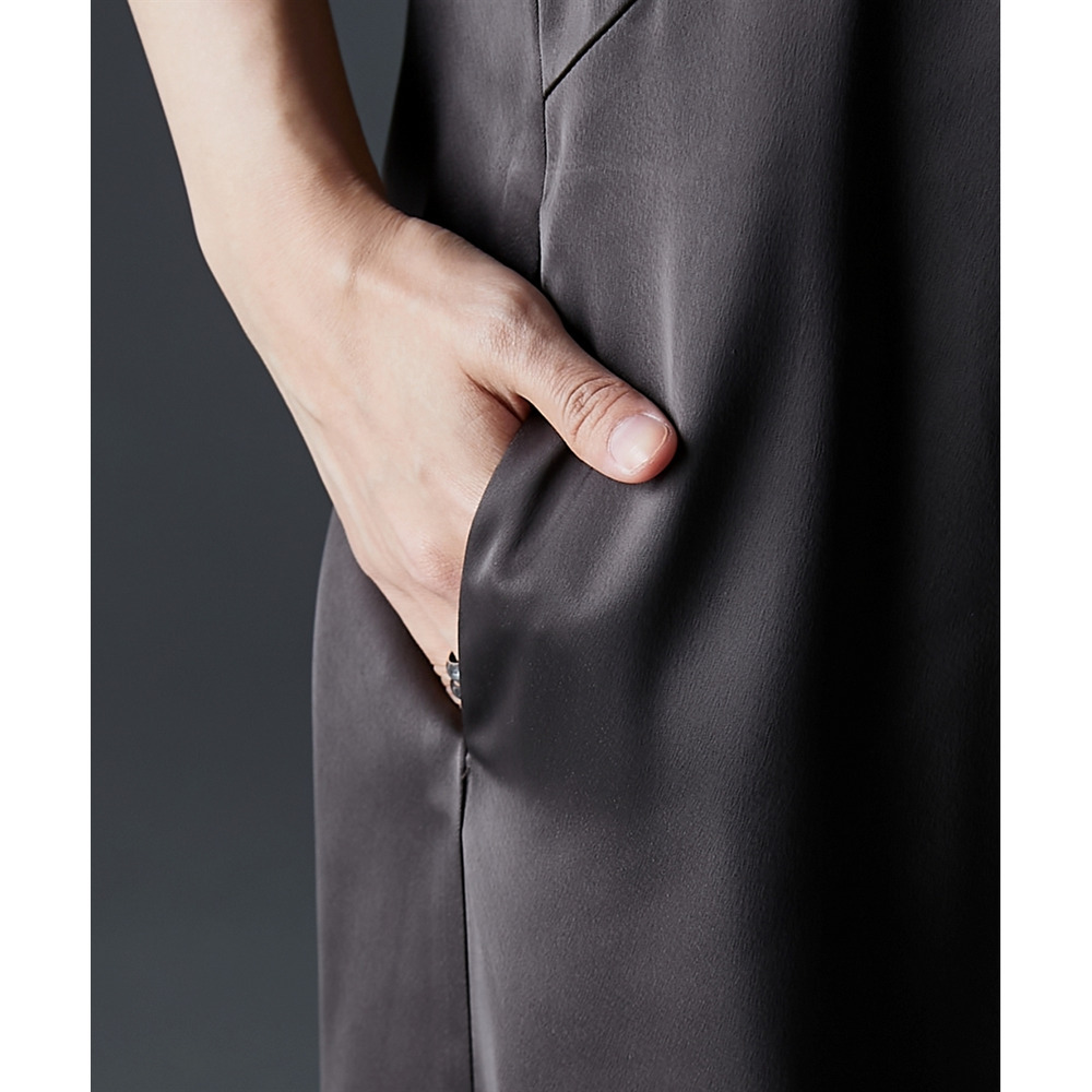 抑えた光沢感と落ち感のあるポリエステルサテン素材を使用。