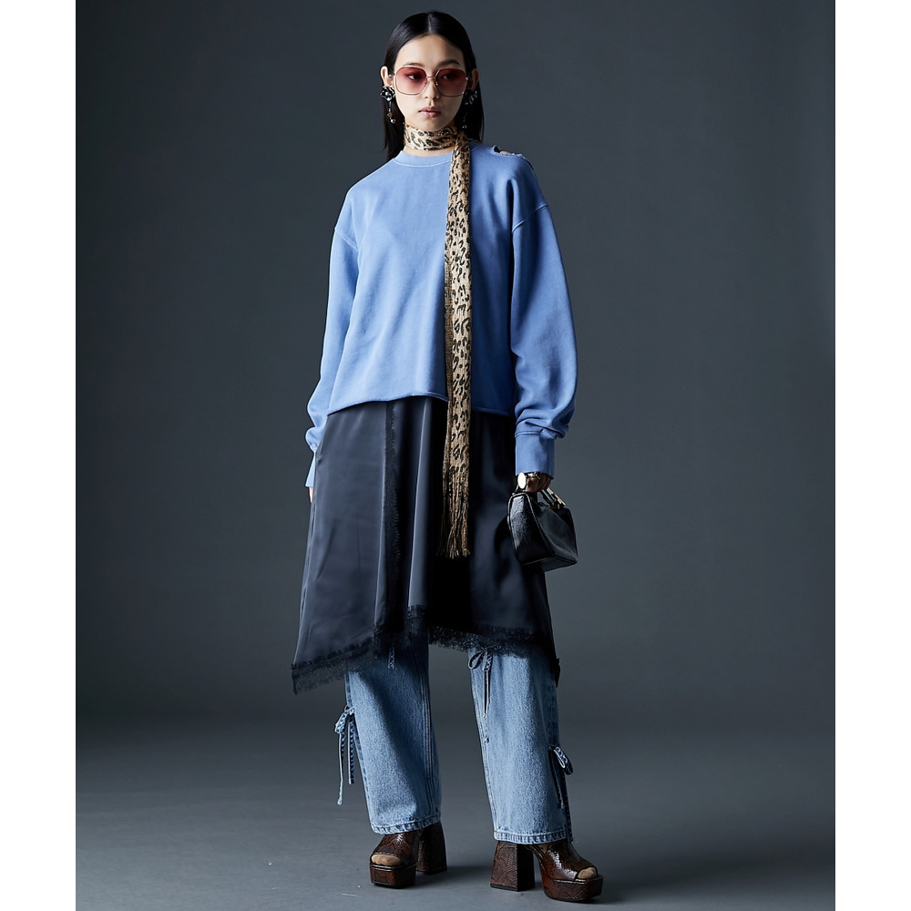 ミニワンピースとして着ていただけますが、デニム等のパンツを合わせていただいたレイヤードスタイルがオススメです。
