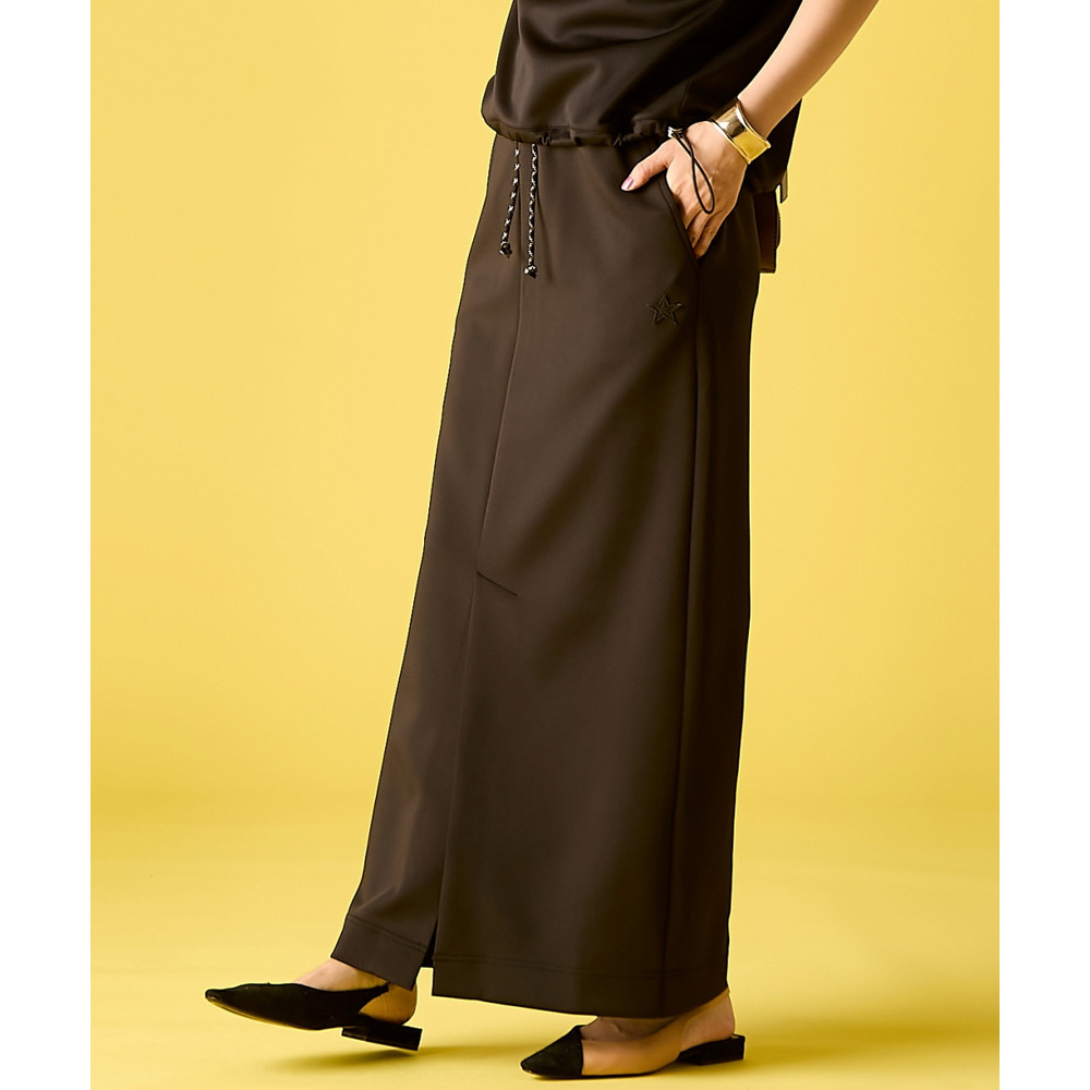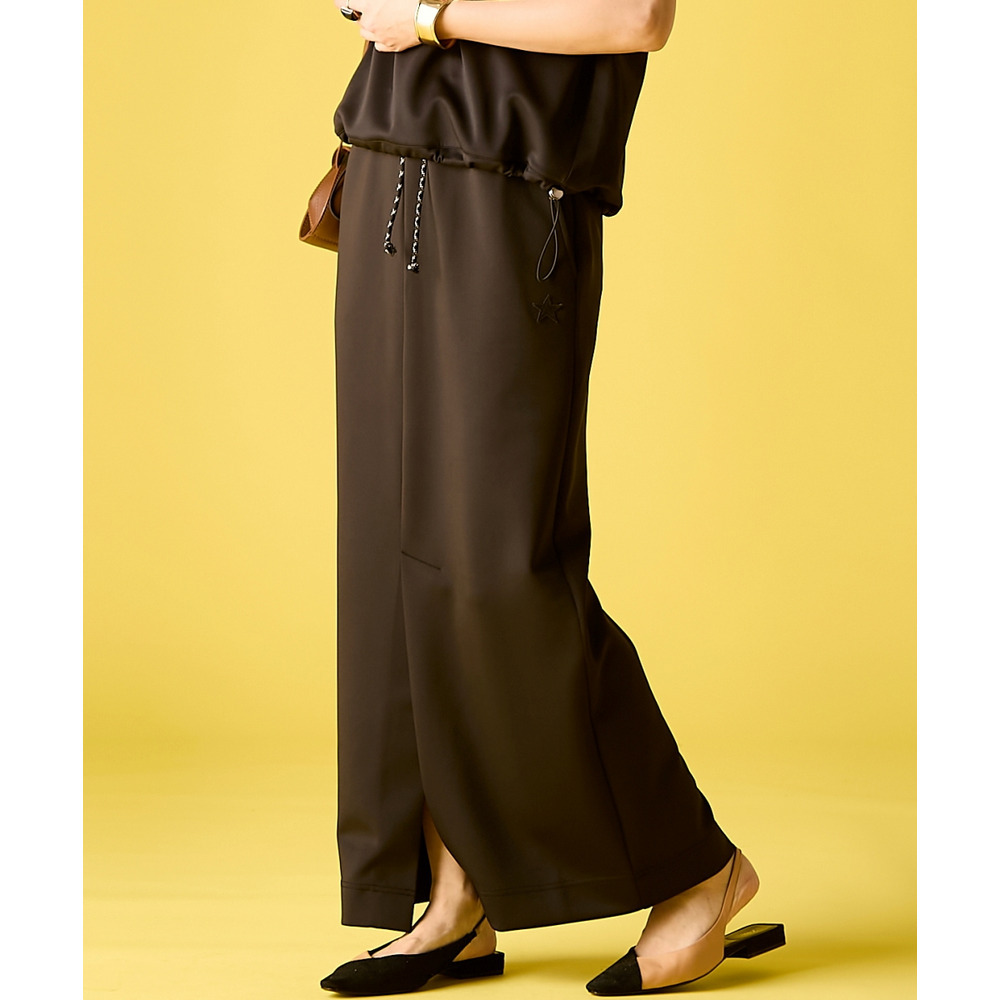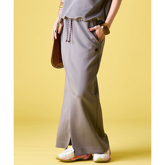 腰周りはすっきりと、裾に向かってストンと落ちるストレートシルエット。